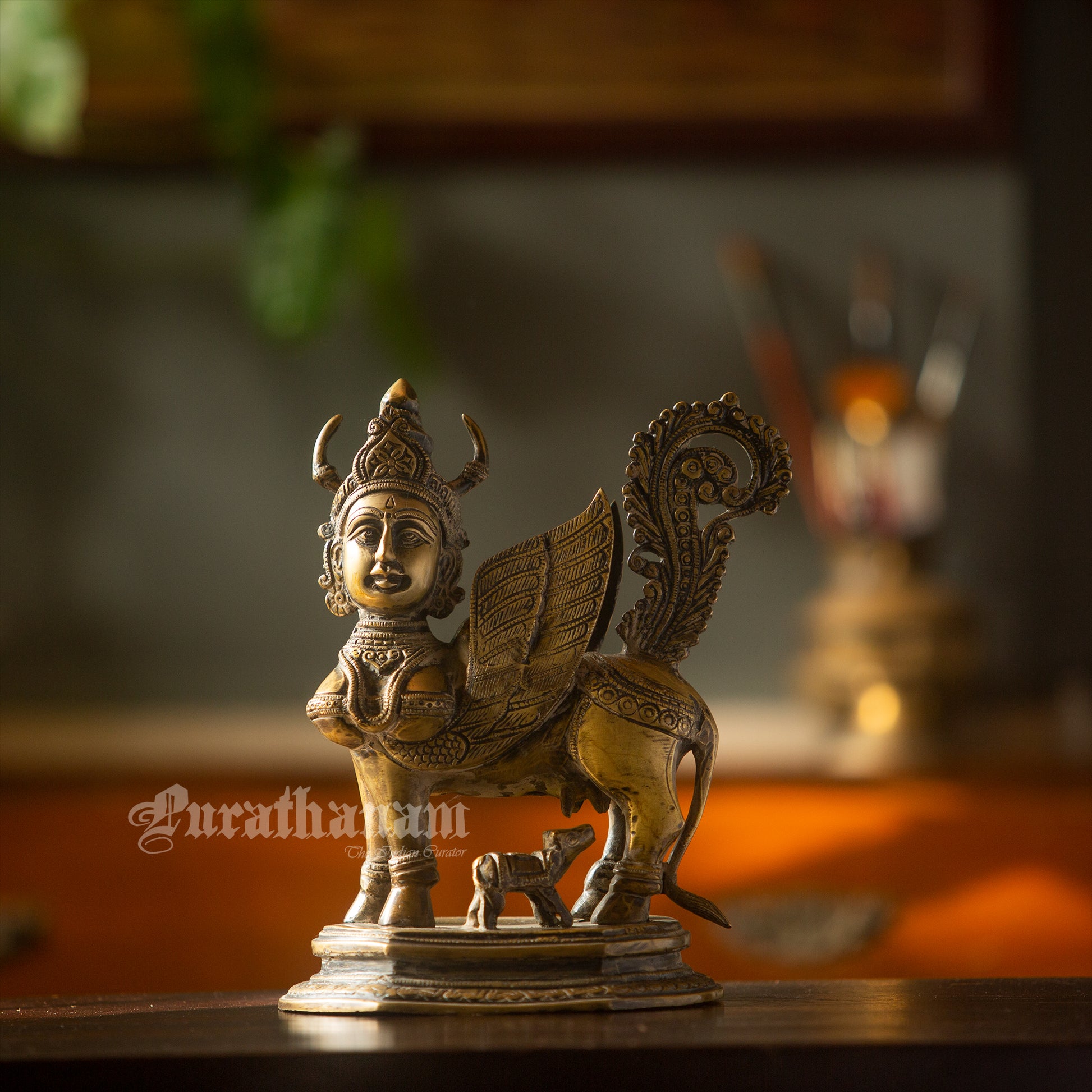 Presenting this beautiful Kamadenu sculpture made of brass, all the way from Tamizh Nadu, south of India.