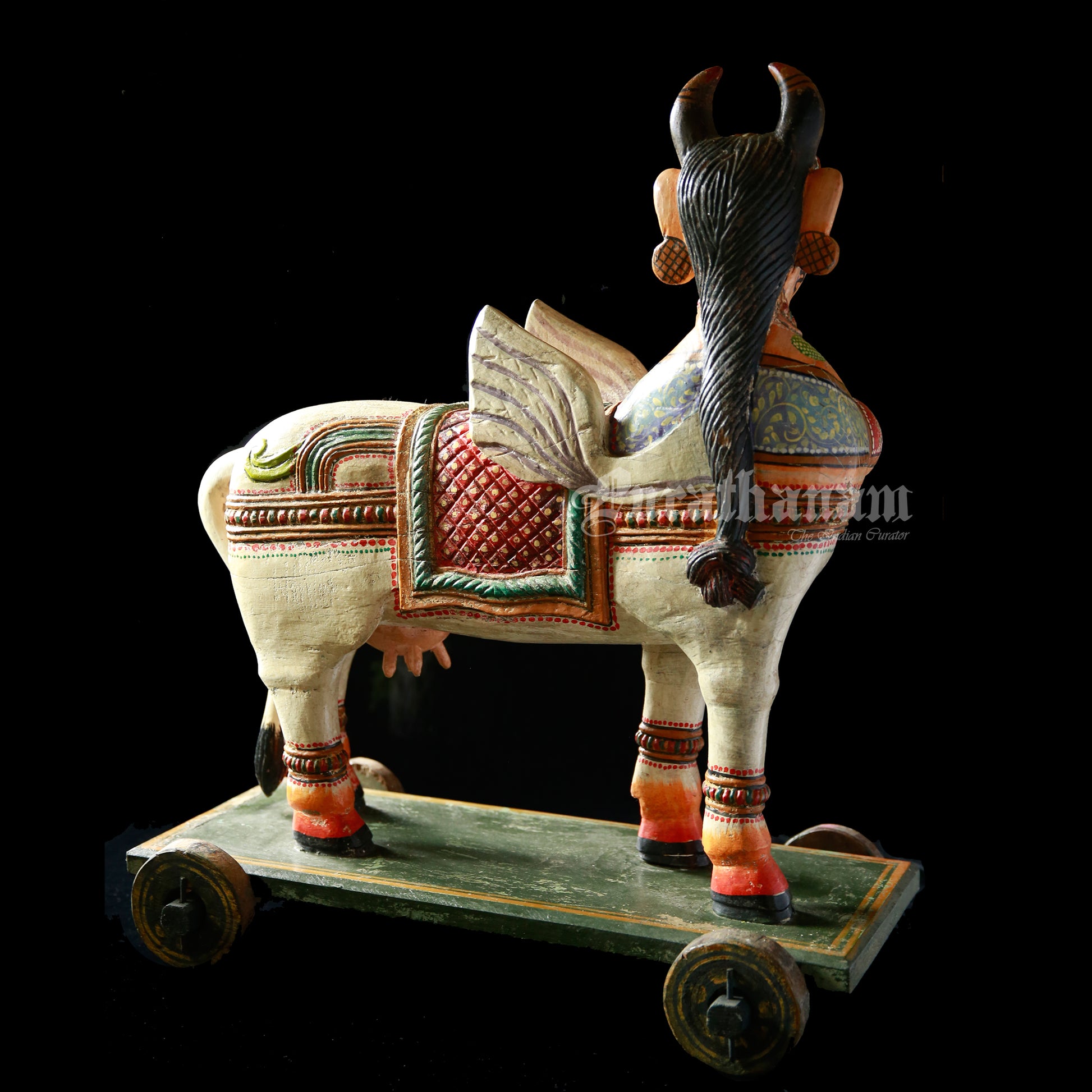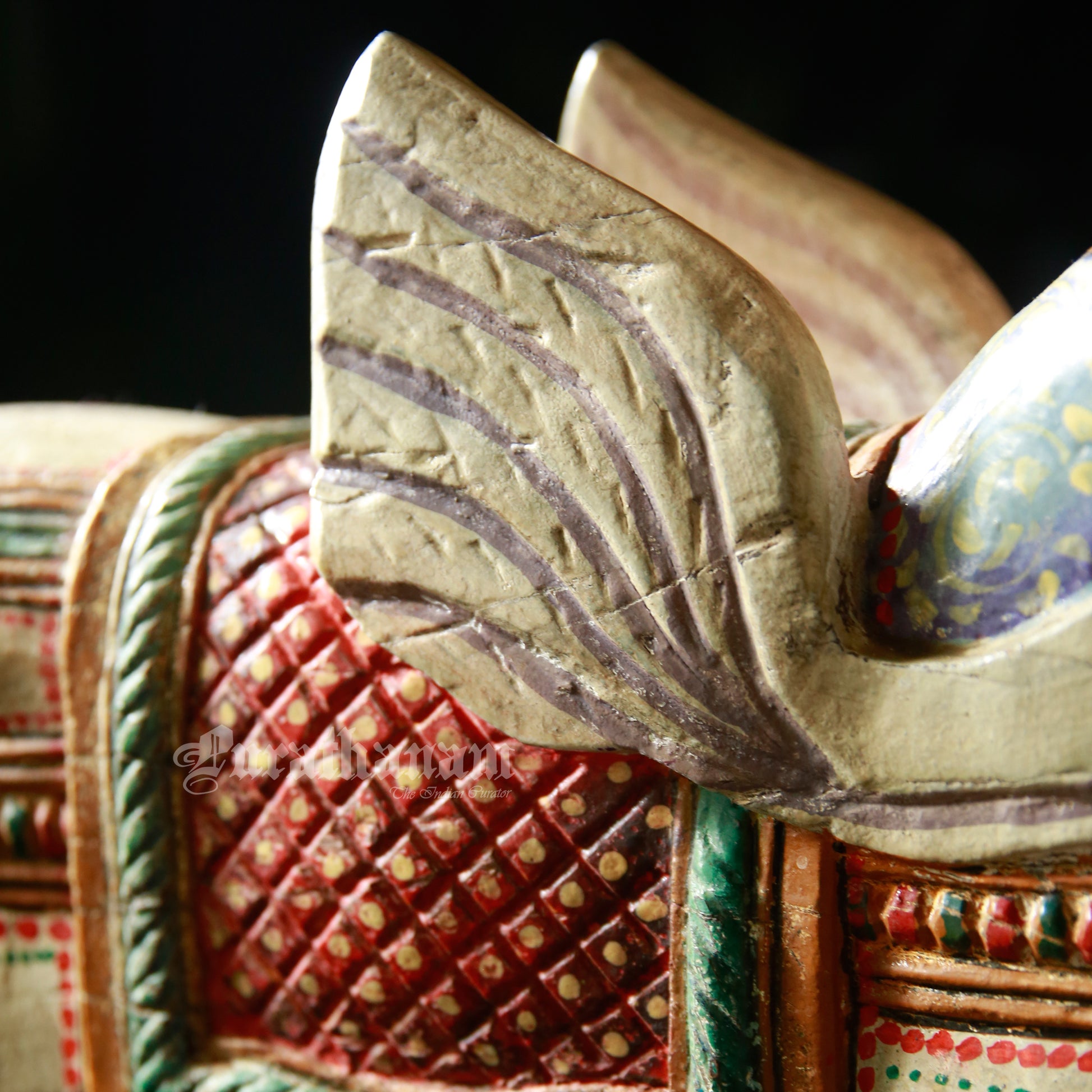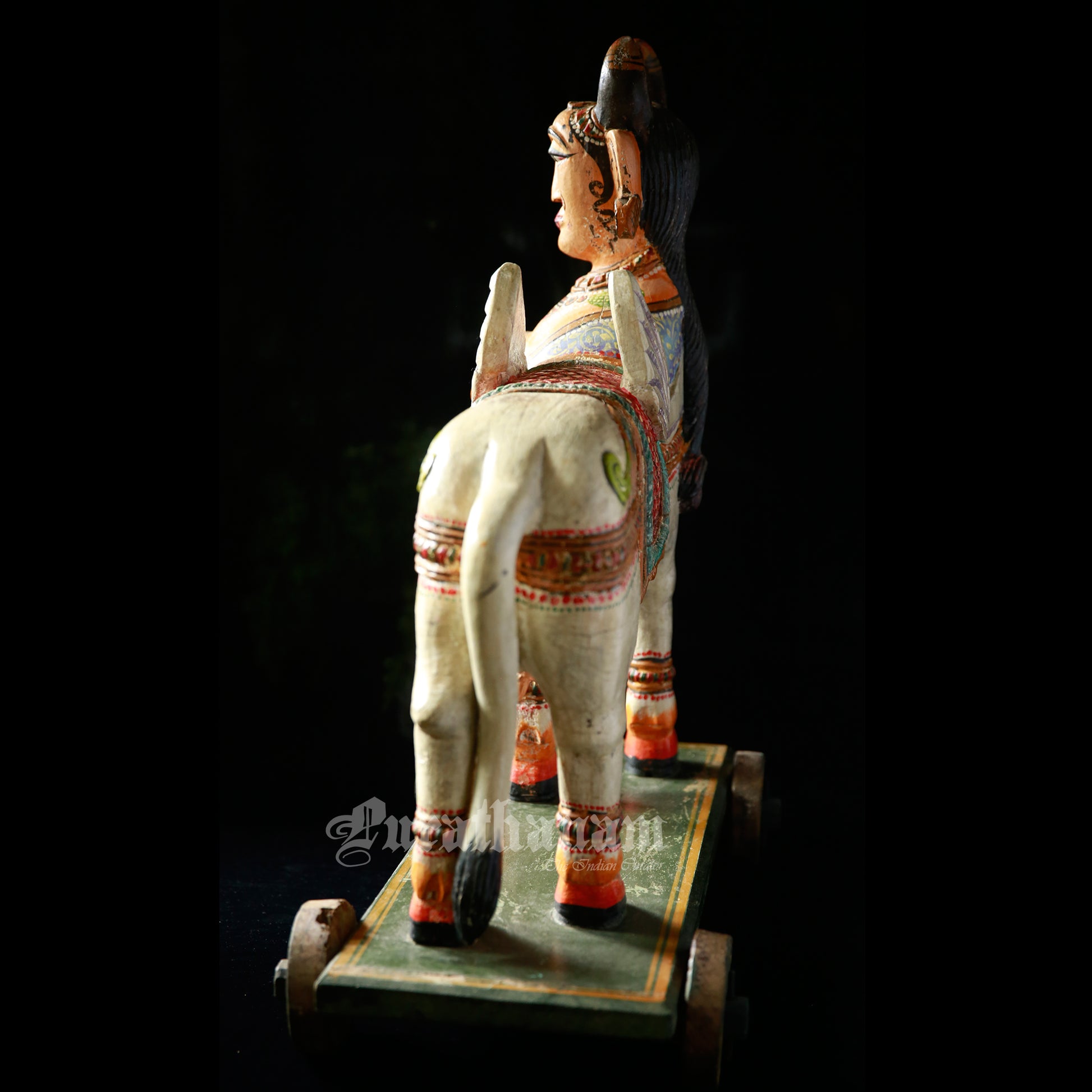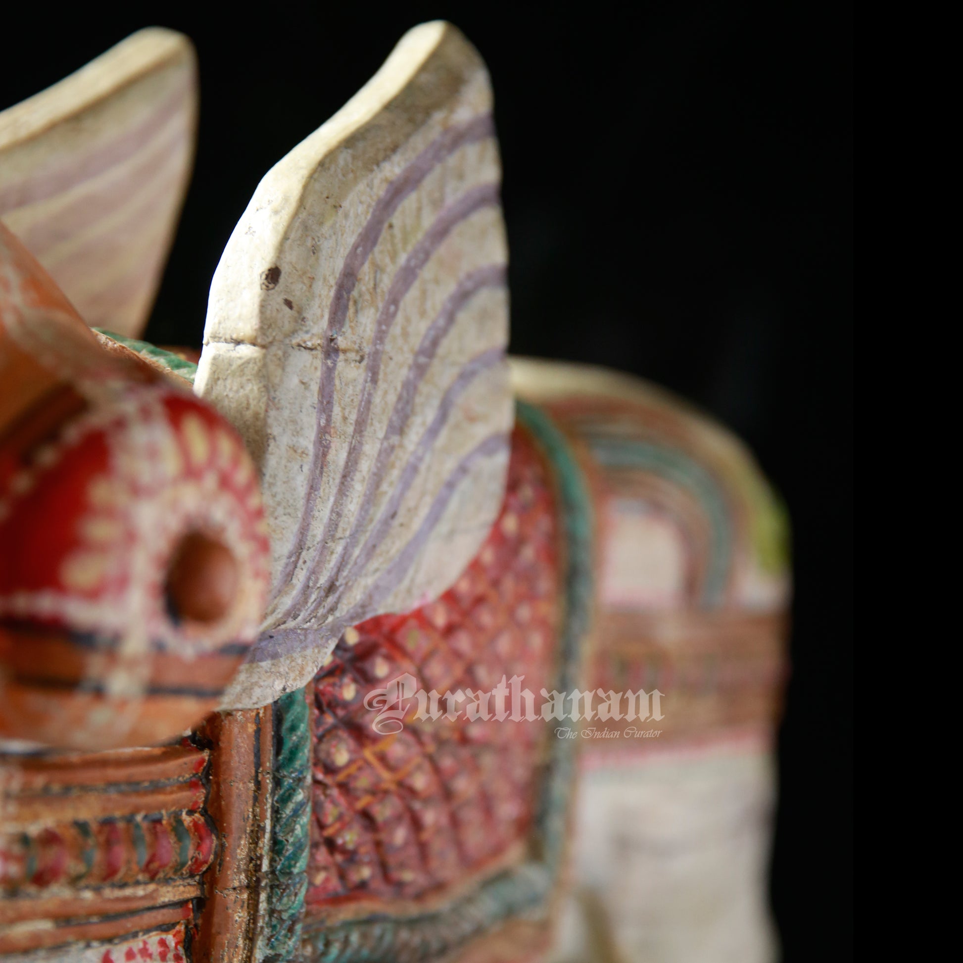 Vintage Wood Polychrome Kamadenu from Tamil Nadu!! The Indian symbol of prosperity is not just a positive charm but also a symbol of the traditional wood polychrome temple art of South. This bold piece can bring the attention to itself and mesmerise you for minutes together. This vintage pice of tradition is a popular choice among collectors. Fall in love with art and tradition everyday.