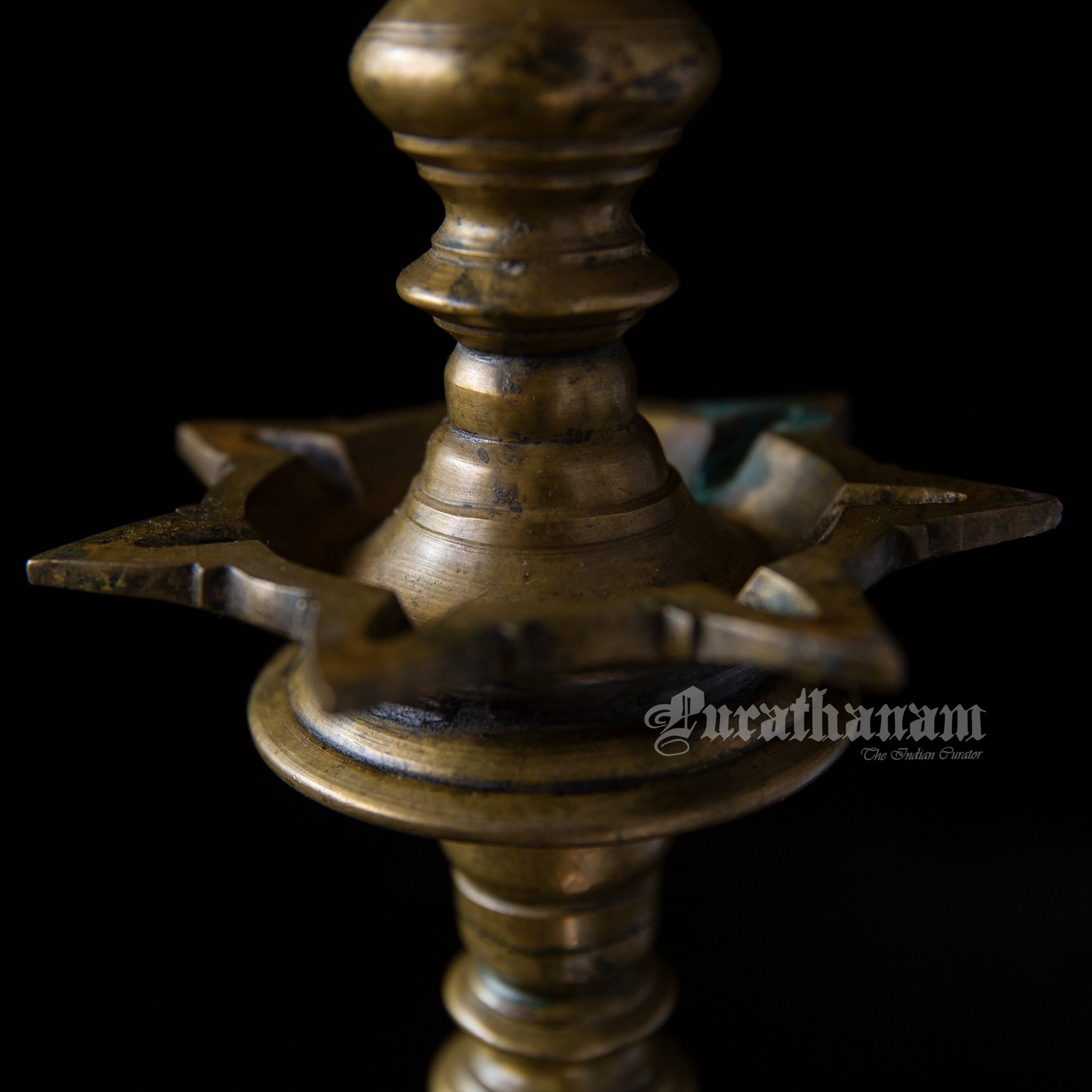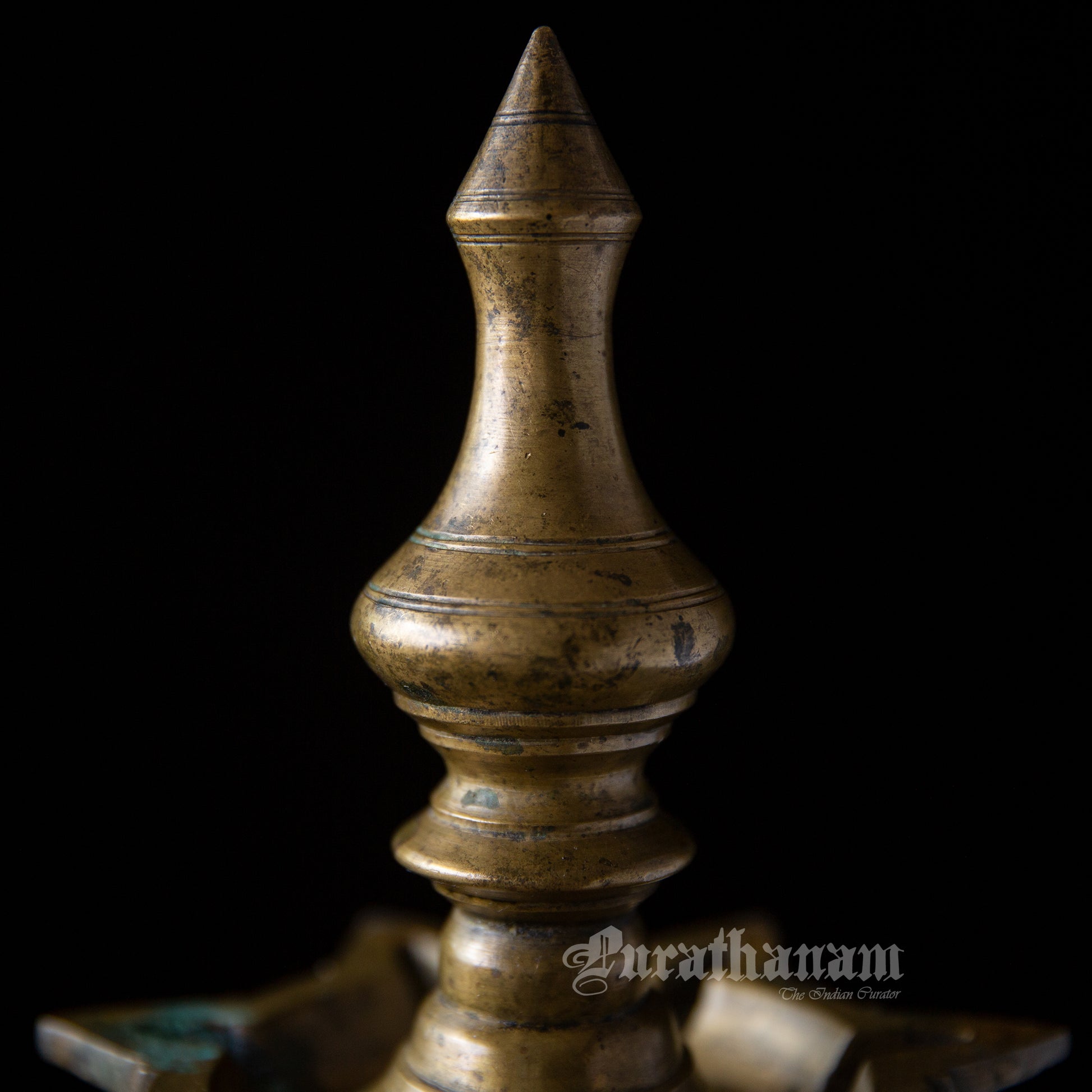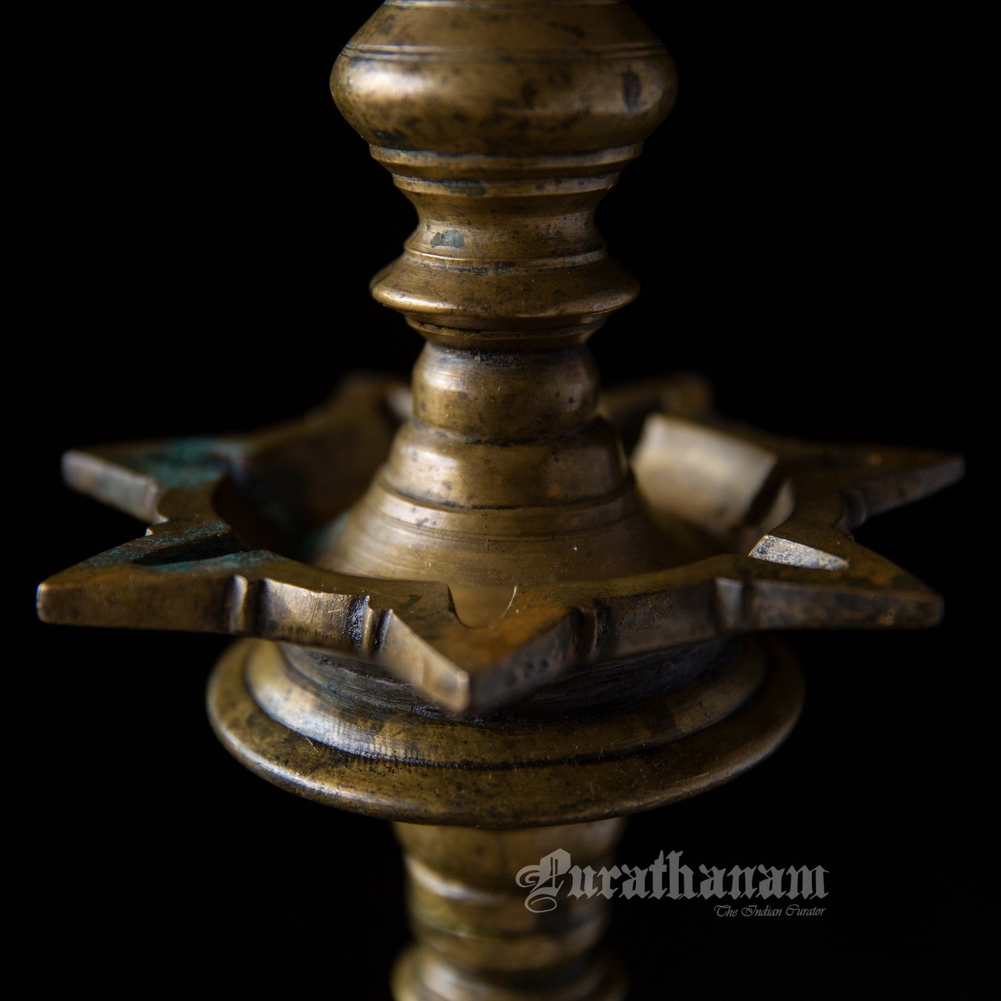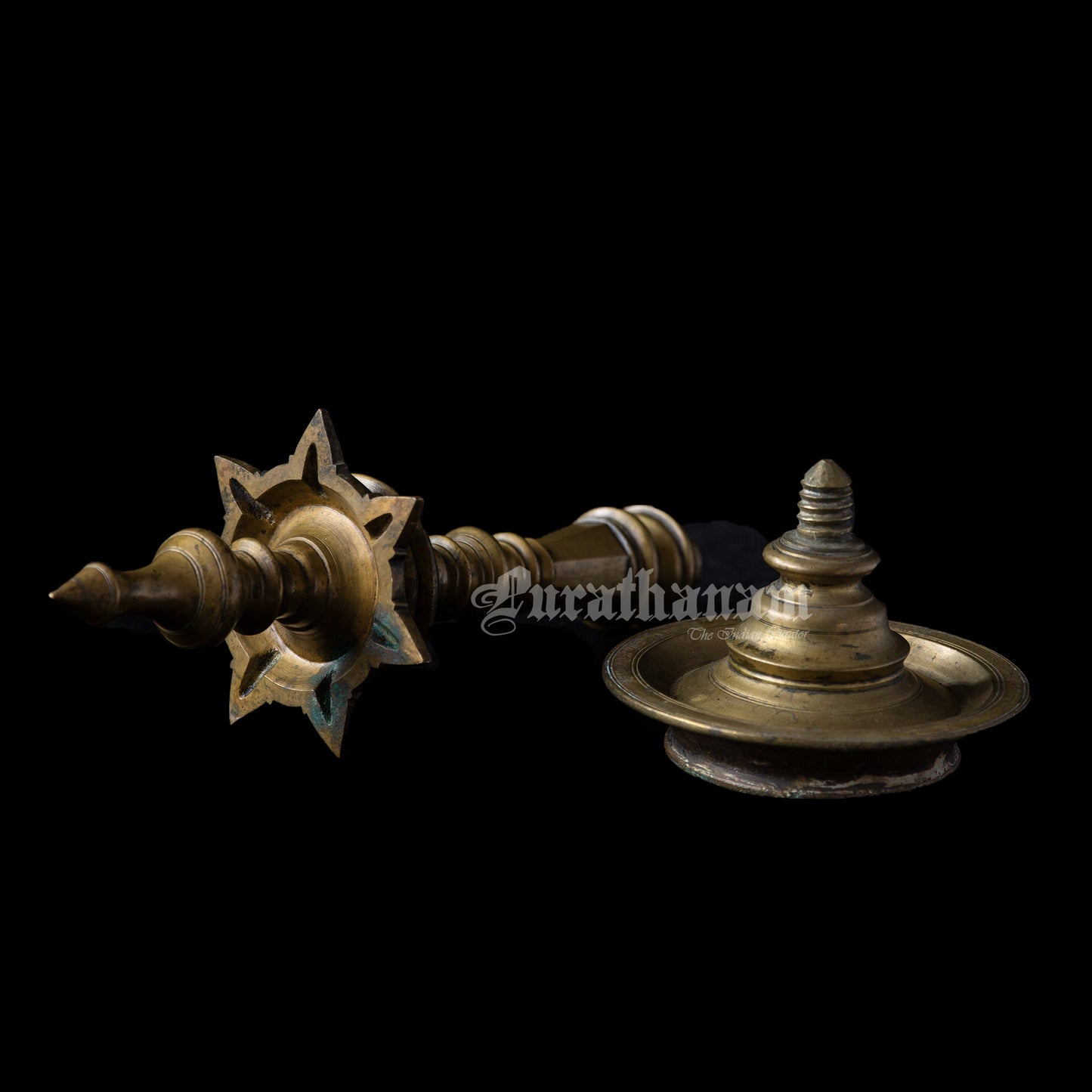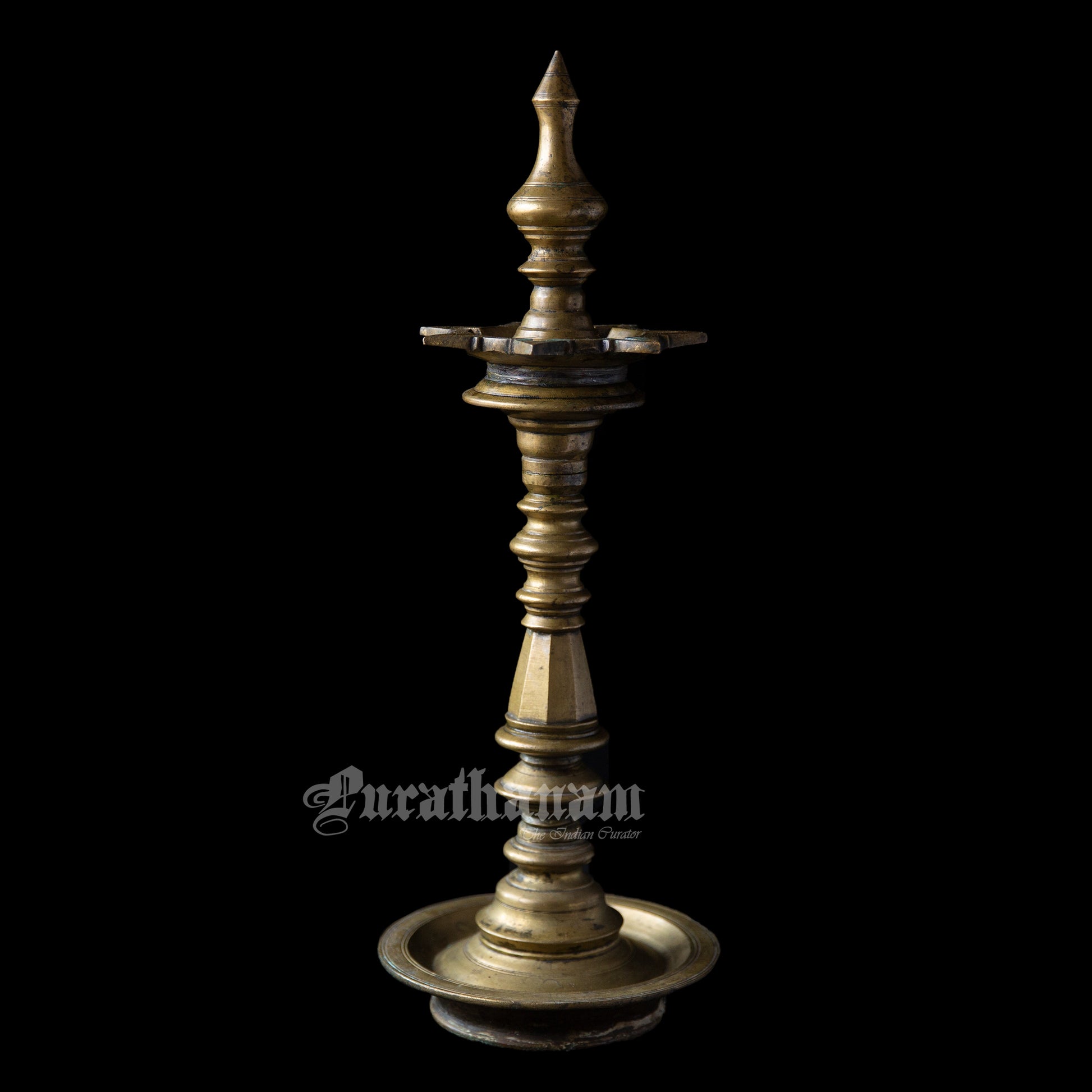 Sengkuthu (செங்குத்து) in Tamil meaning anything standing straight vertical, so Kuthu (Tamil: குத்து) means standing erect and vilakku (விளக்கு) means lamp. So that’s why this lamp is called a kuthuvilakku (Tamil: குத்து விளக்கு). Kuthu vilakku has been in use from the days of the Cholas which is 10th Century CE.