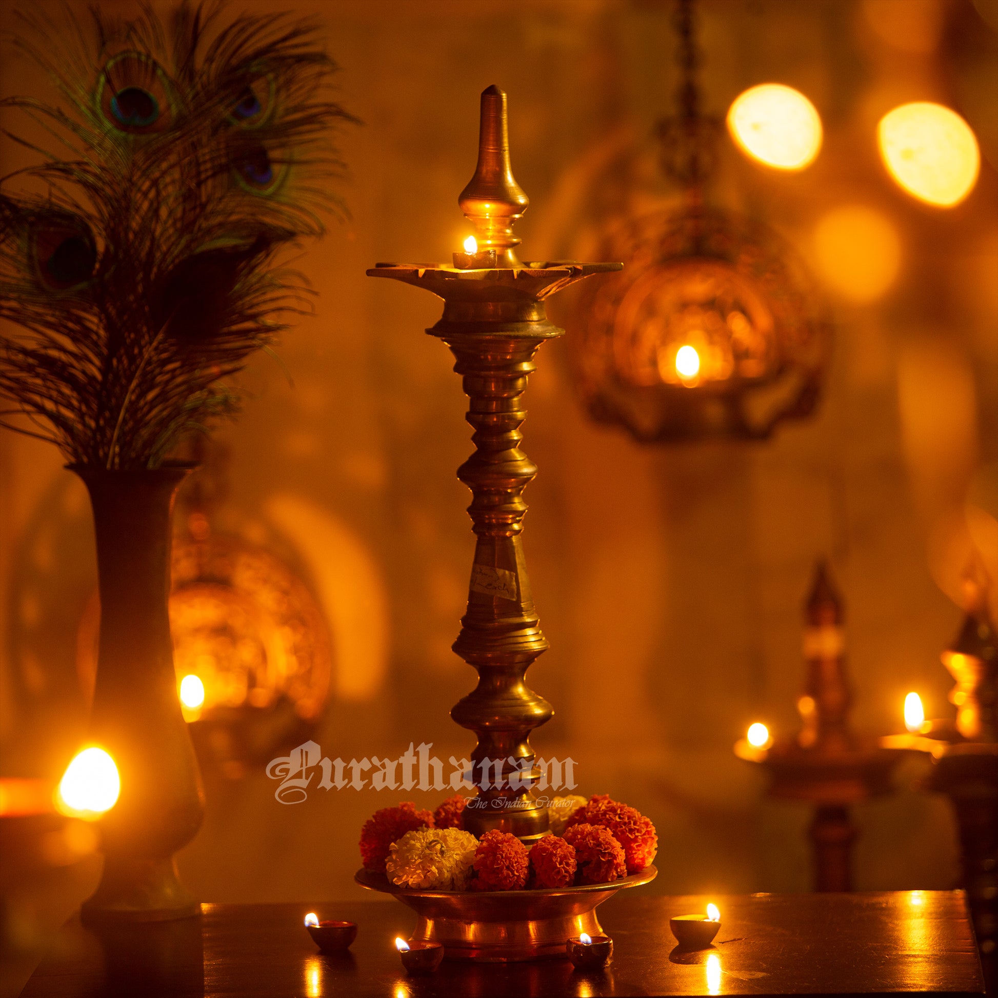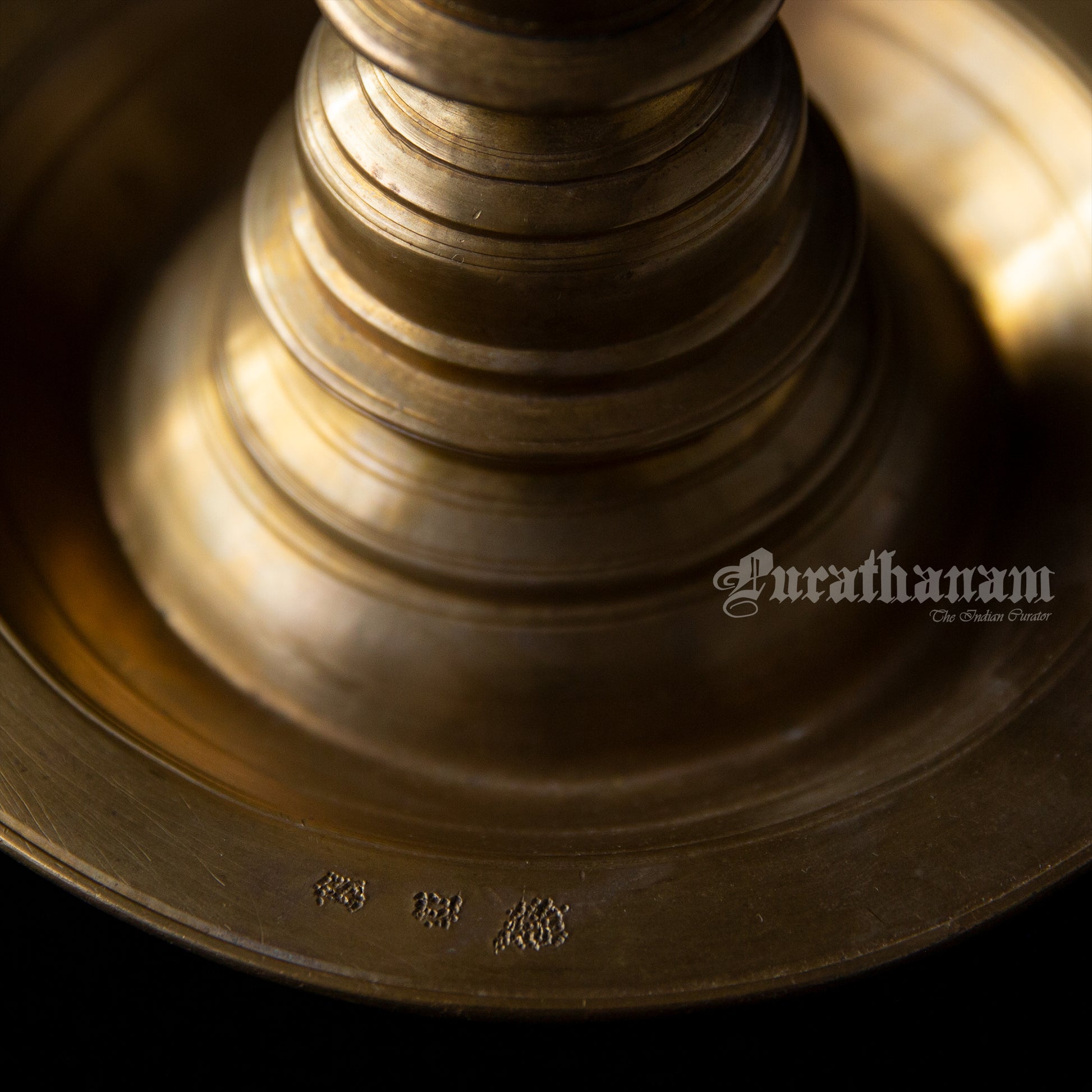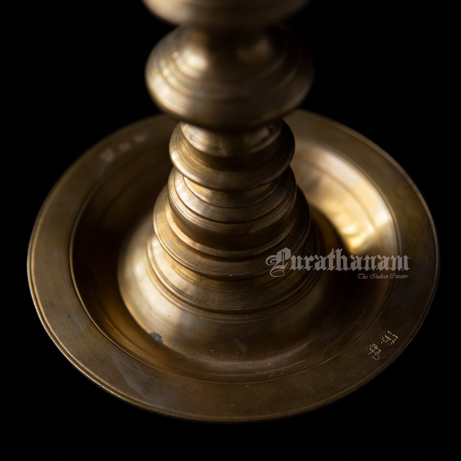 Sengkuthu (செங்குத்து) in Tamil meaning anything standing straight vertical, so Kuthu (Tamil: குத்து) means standing erect and vilakku (விளக்கு) means lamp. So that’s why this lamp is called a kuthuvilakku (Tamil: குத்து விளக்கு). Kuthu vilakku has been in use from the days of the Cholas which is 10th Century CE.