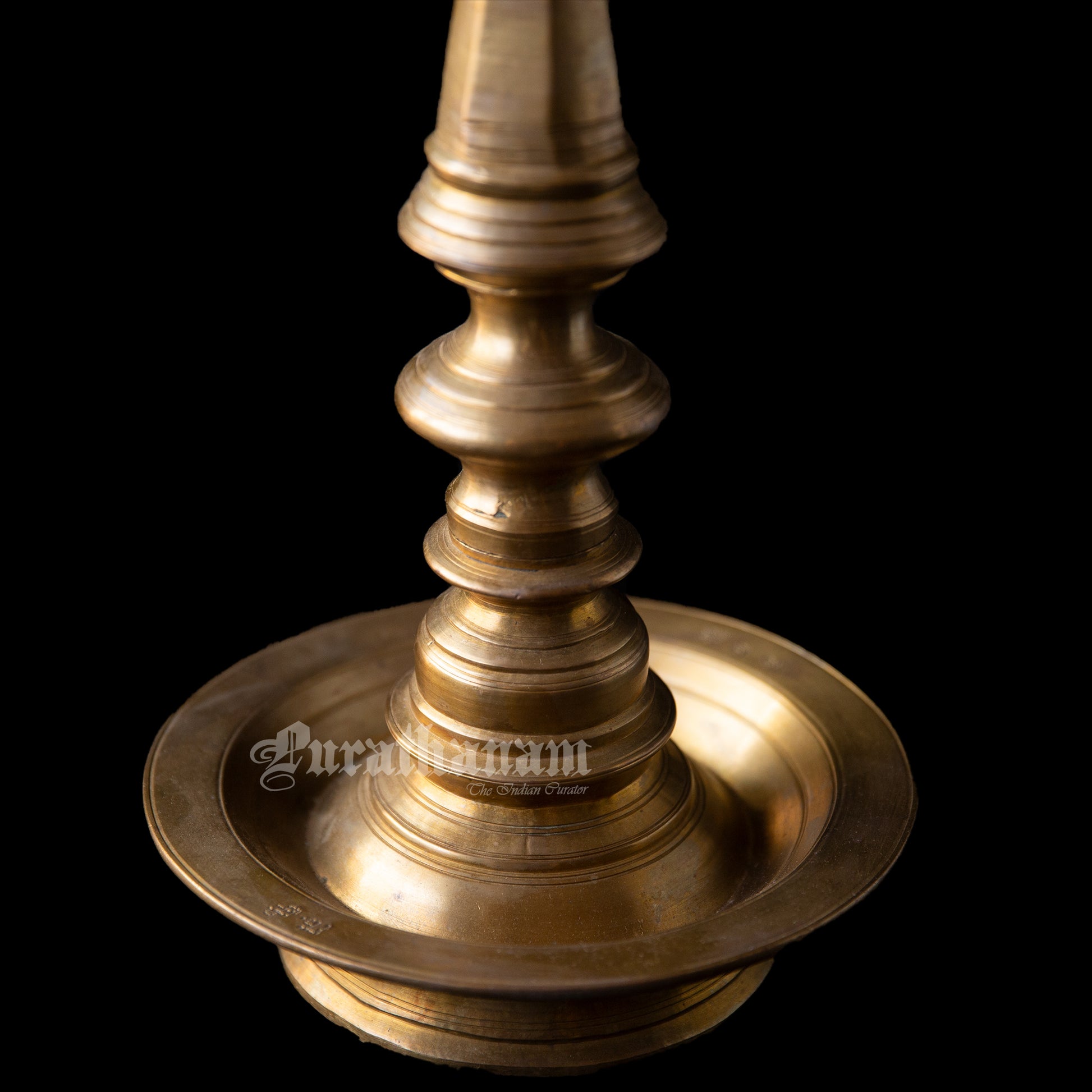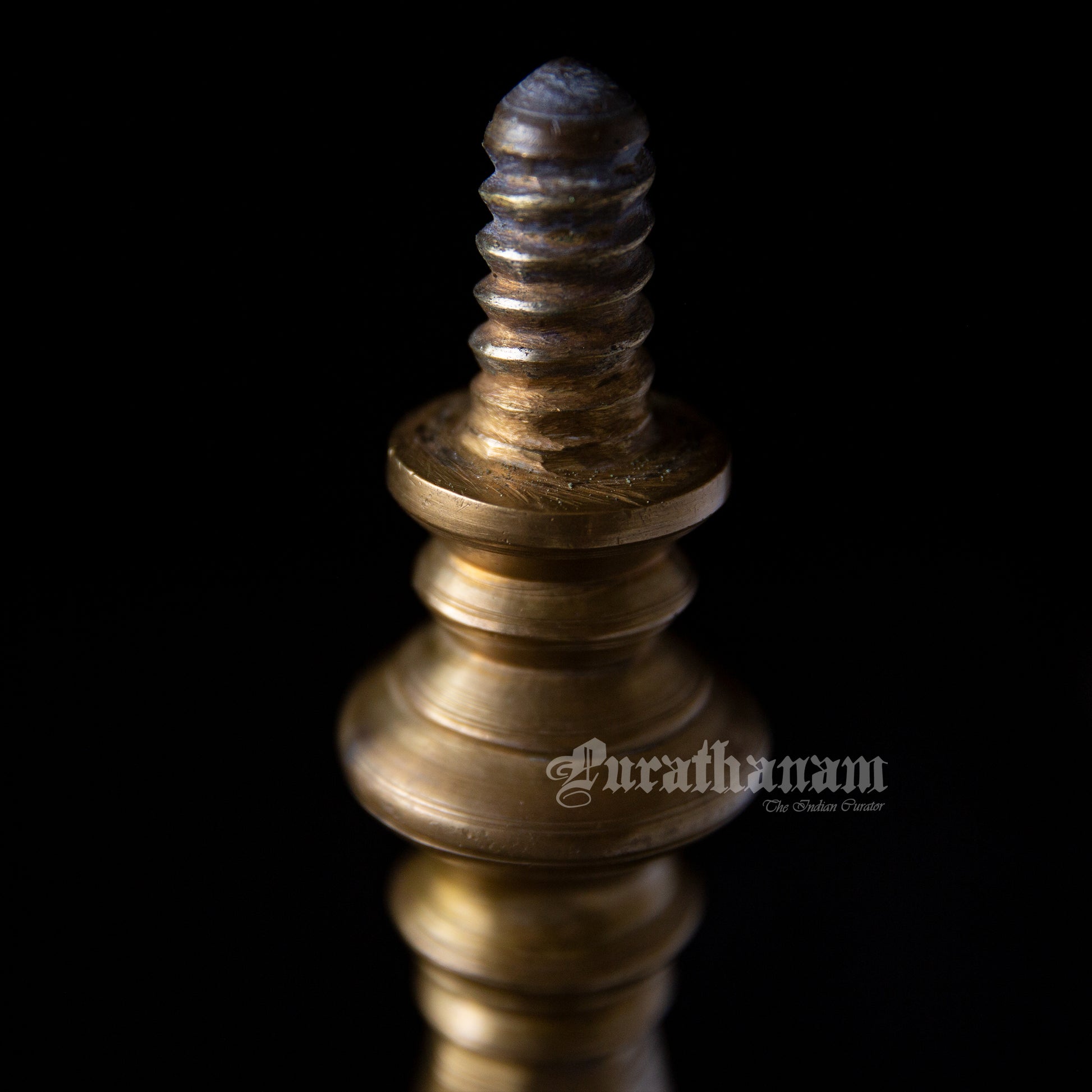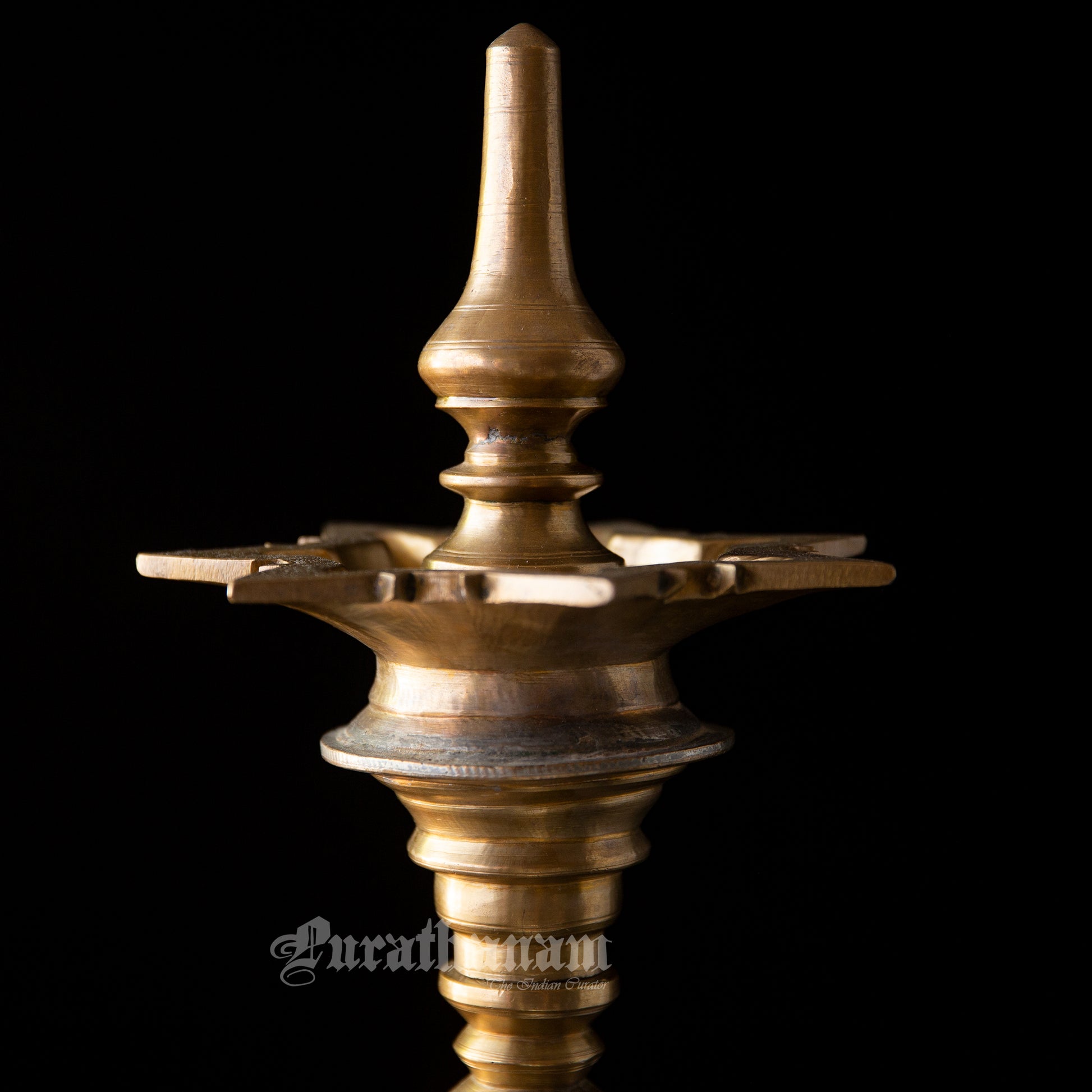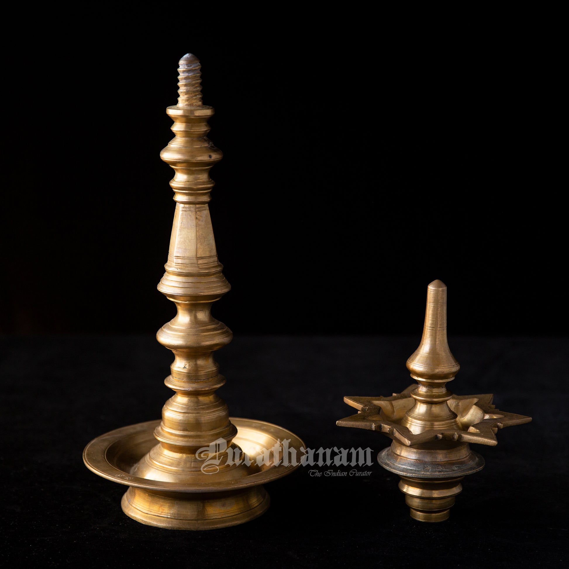 Sengkuthu (செங்குத்து) in Tamil meaning anything standing straight vertical, so Kuthu (Tamil: குத்து) means standing erect and vilakku (விளக்கு) means lamp. So that’s why this lamp is called a kuthuvilakku (Tamil: குத்து விளக்கு). Kuthu vilakku has been in use from the days of the Cholas which is 10th Century CE.