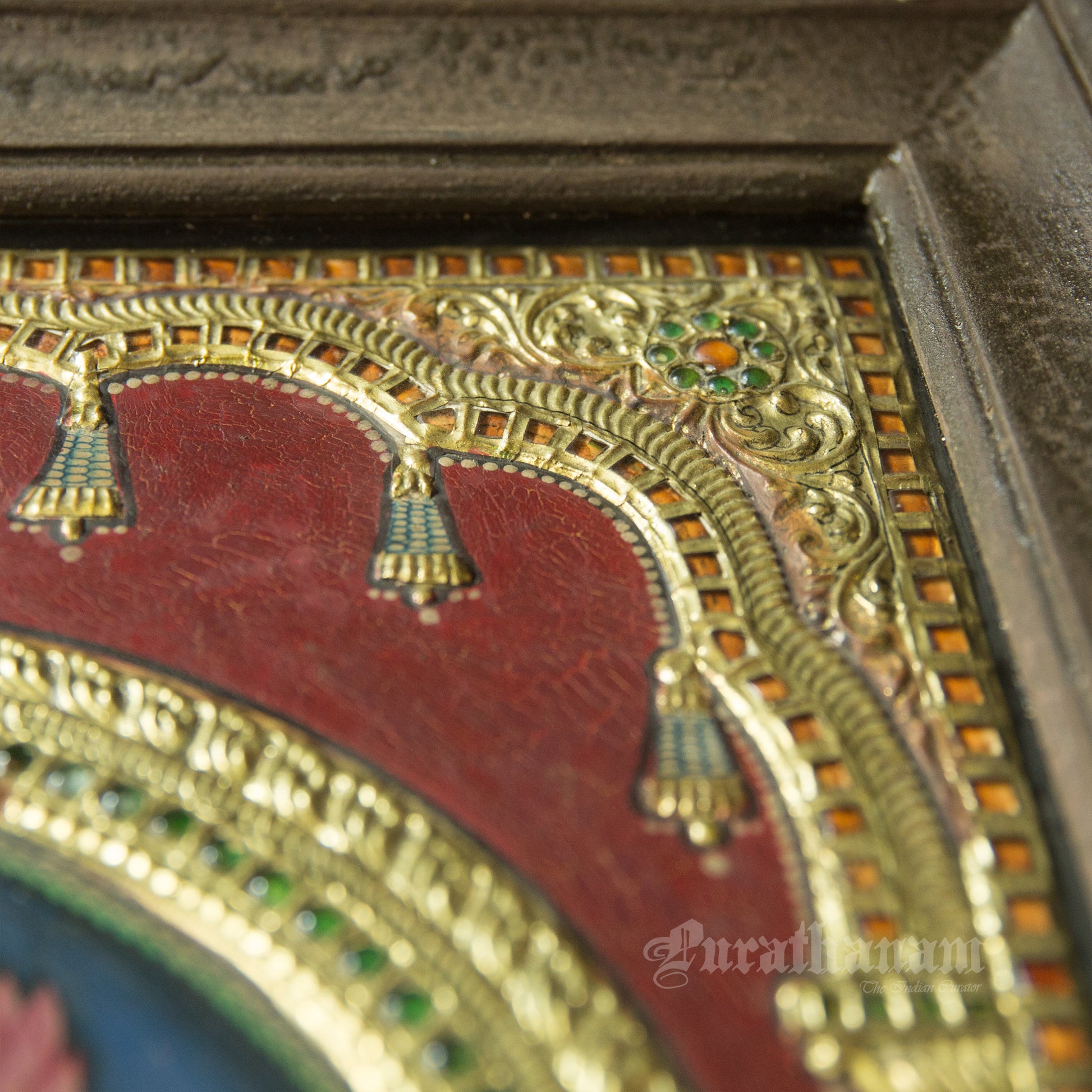 - No Glass Protection: Back in the day, Tanjore paintings were framed using teak wood and did not have protective glass covers, they were displayed openly. Due to less pollution they were safe even without a glass cover.