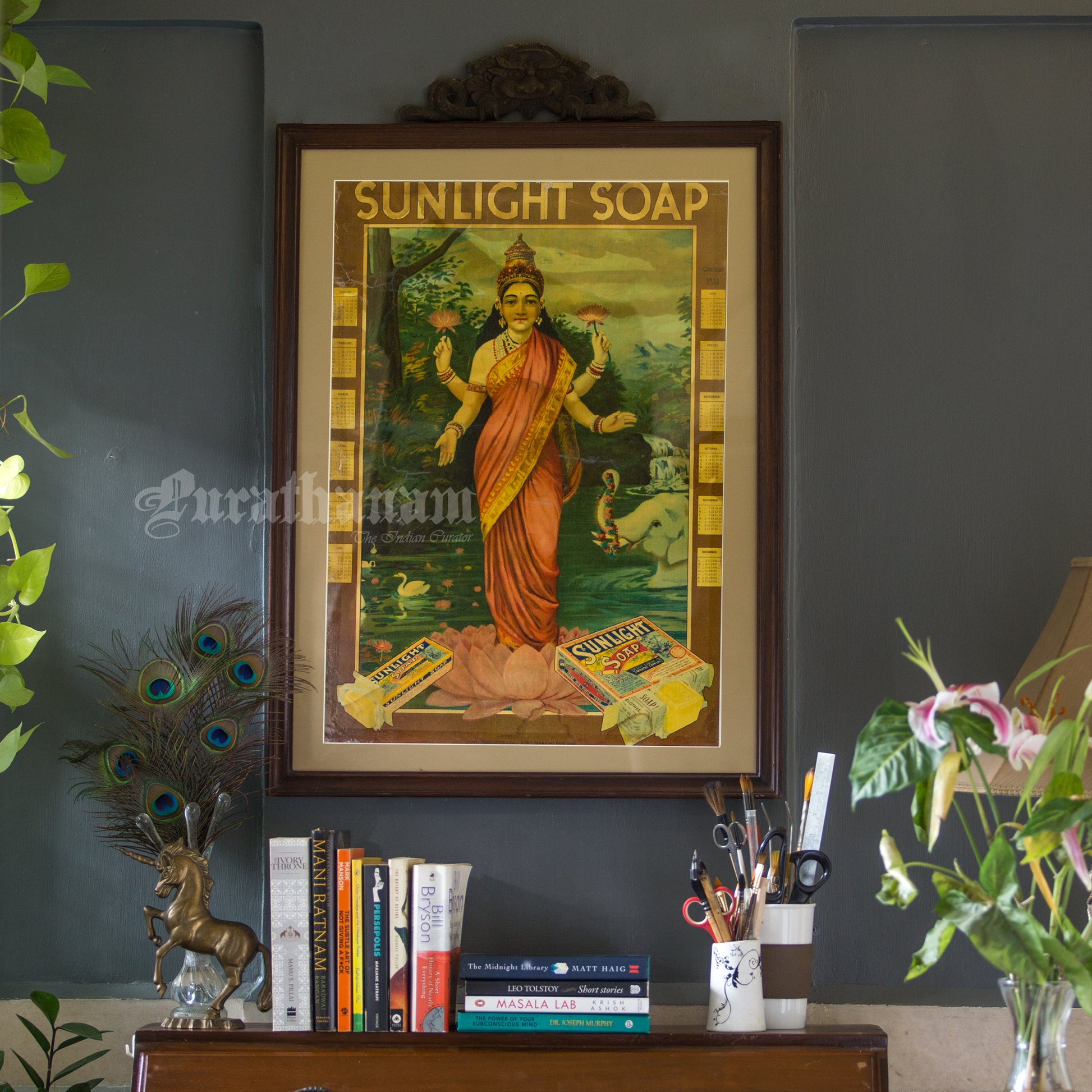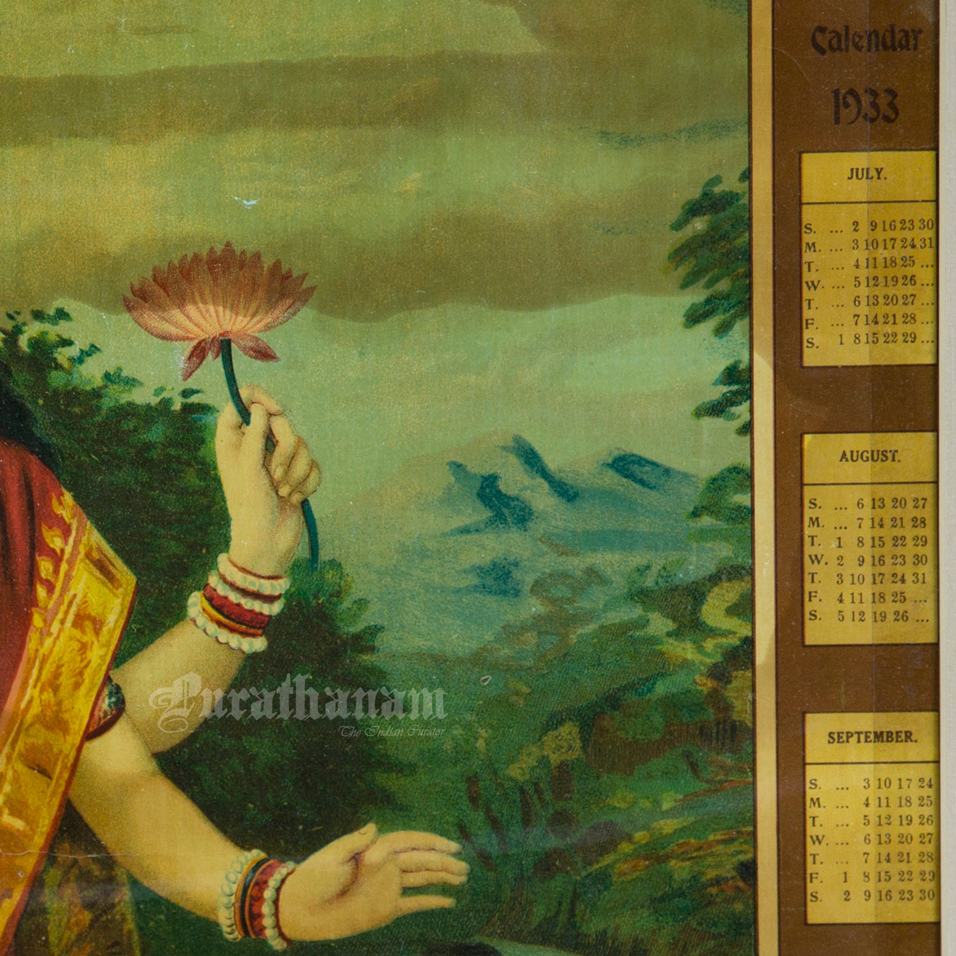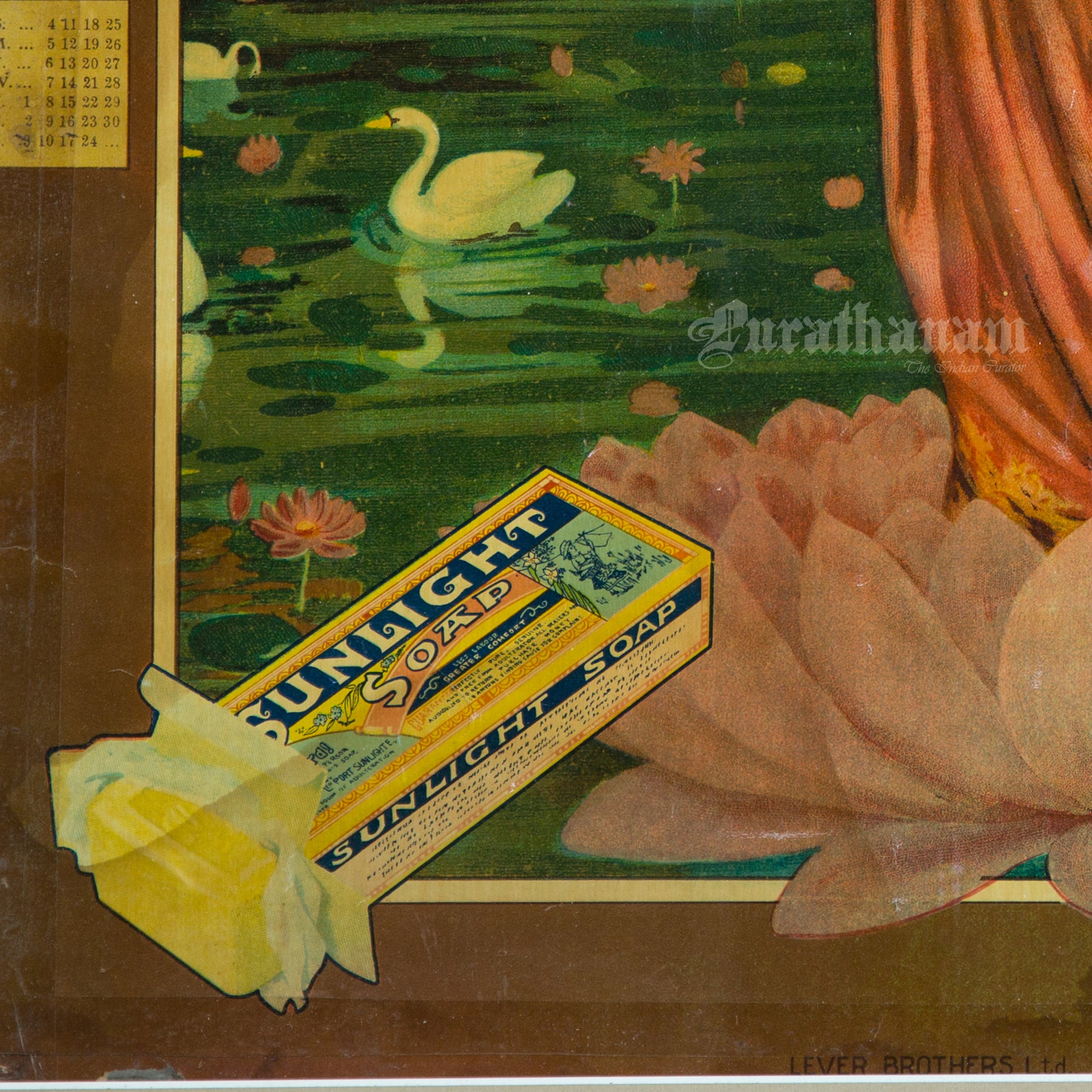 Here is one beautiful poster of Ravi Varma’s Lakshmi for Sunlight Soap company with calendar from the year 1933. A real piece of history!
