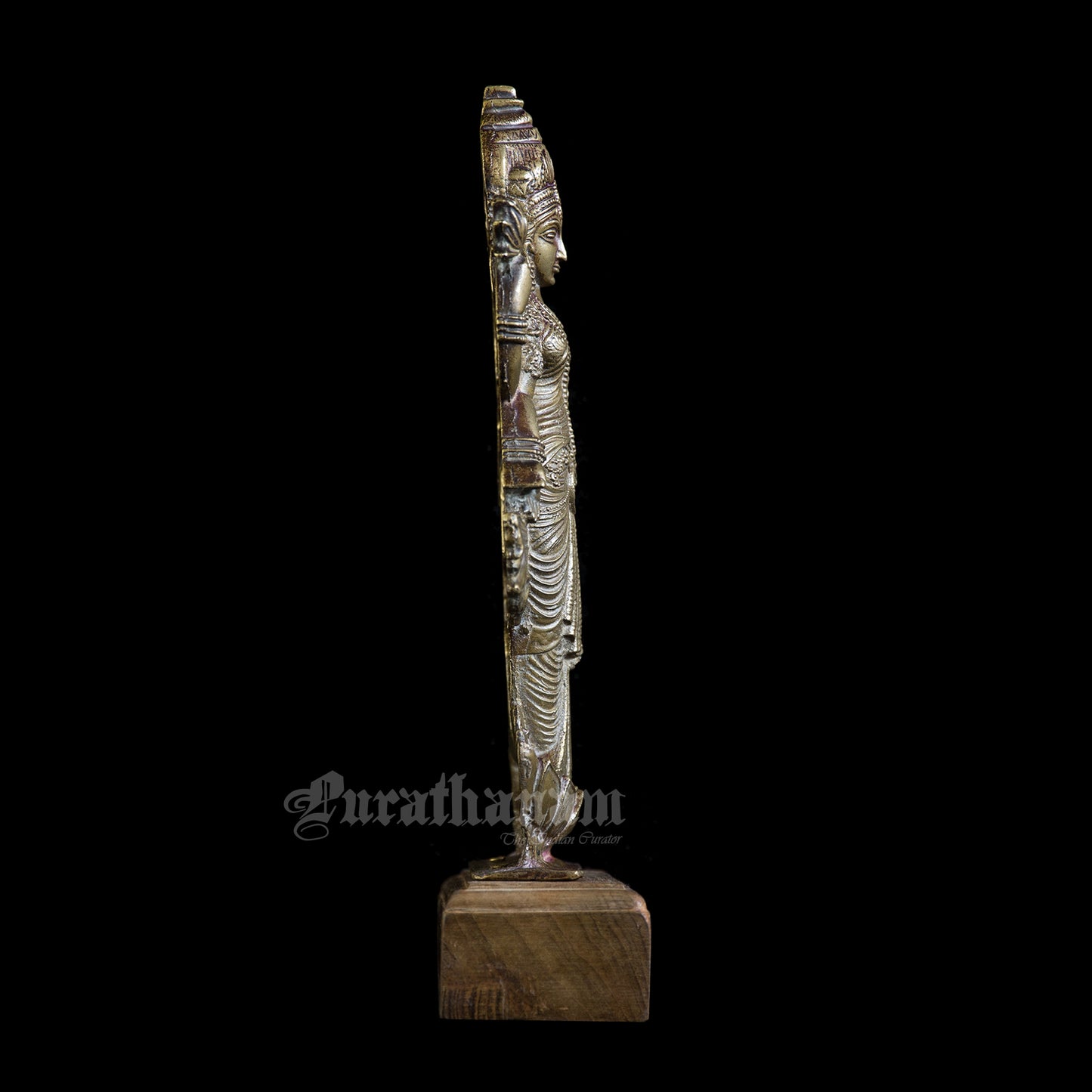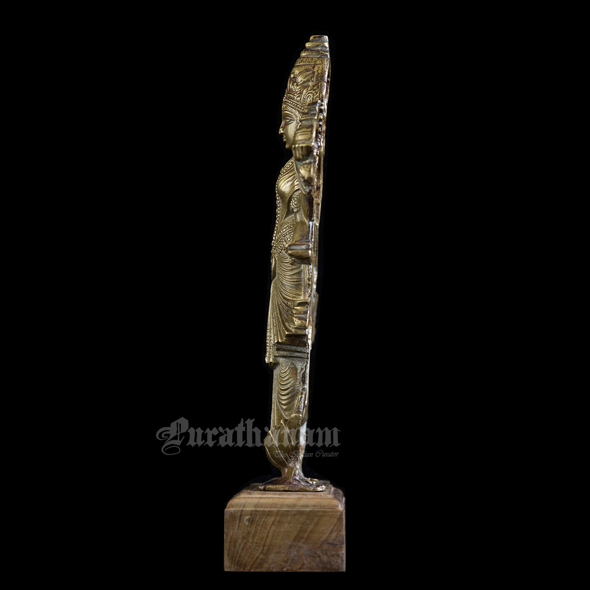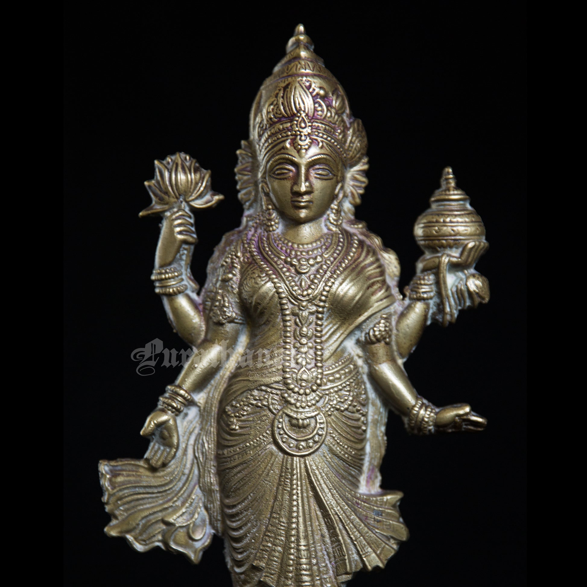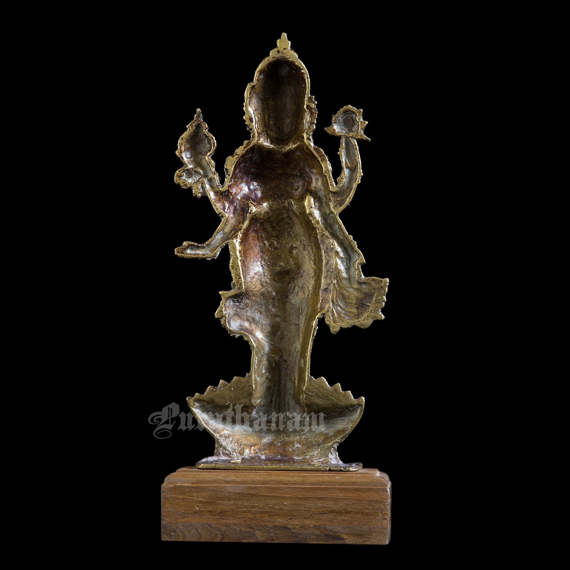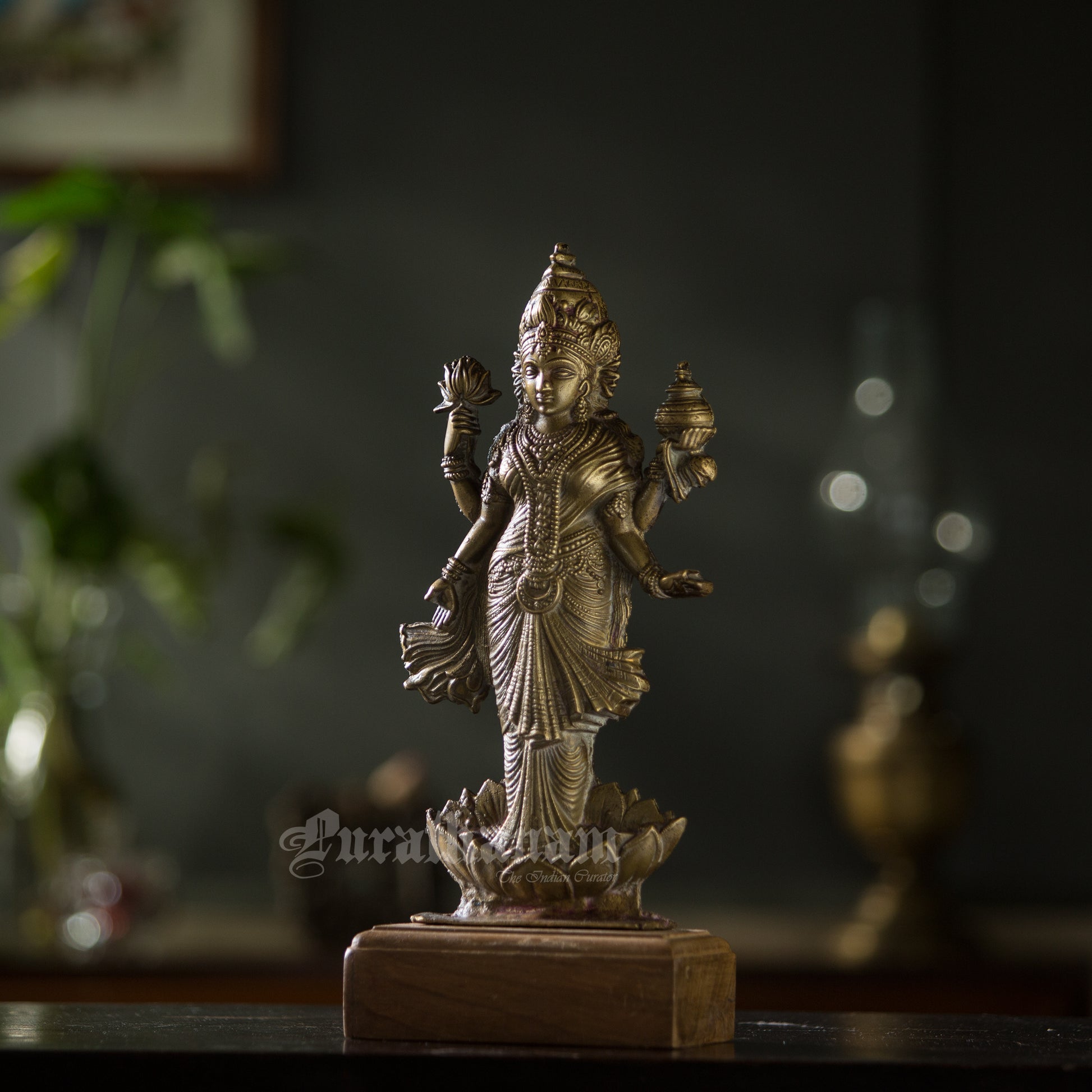 Here is a beautiful 50 year old Lakshmi made of Brass with intricate artwork and a wood pedestal.