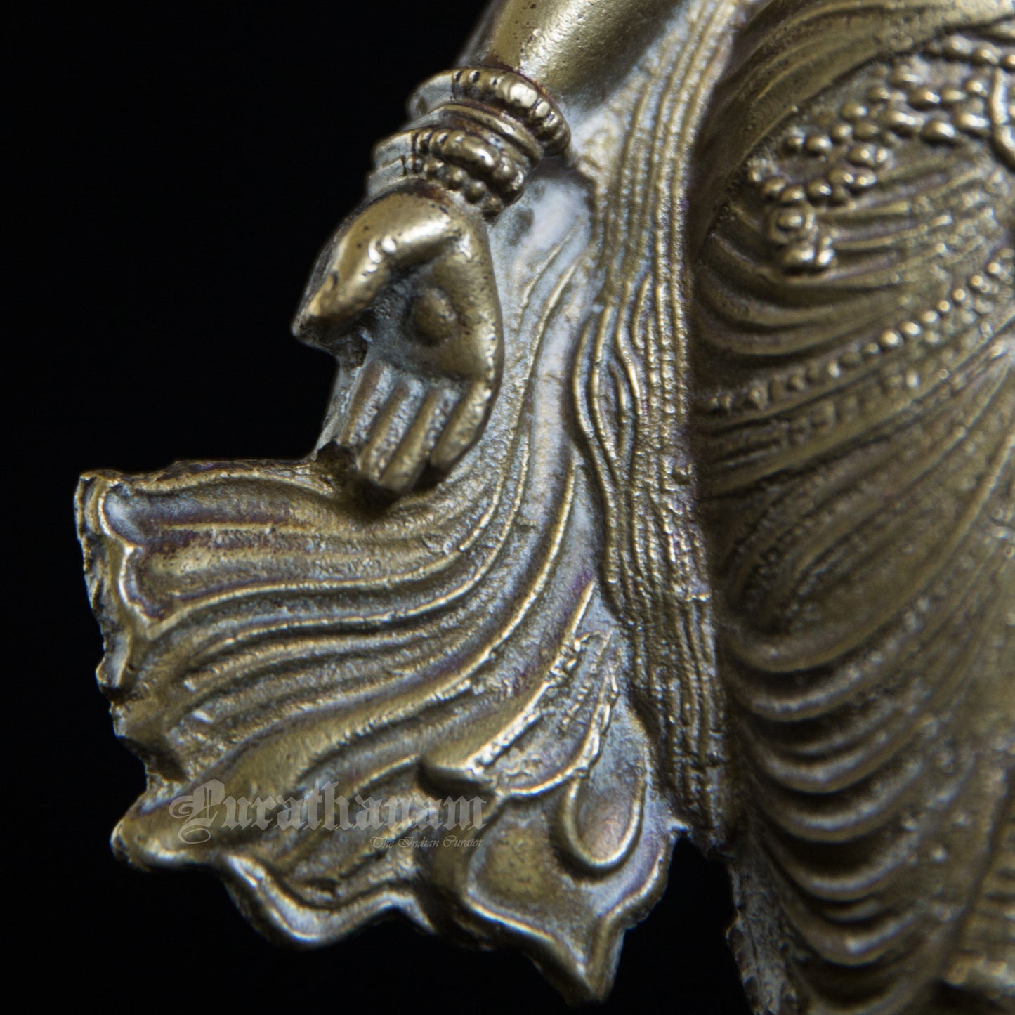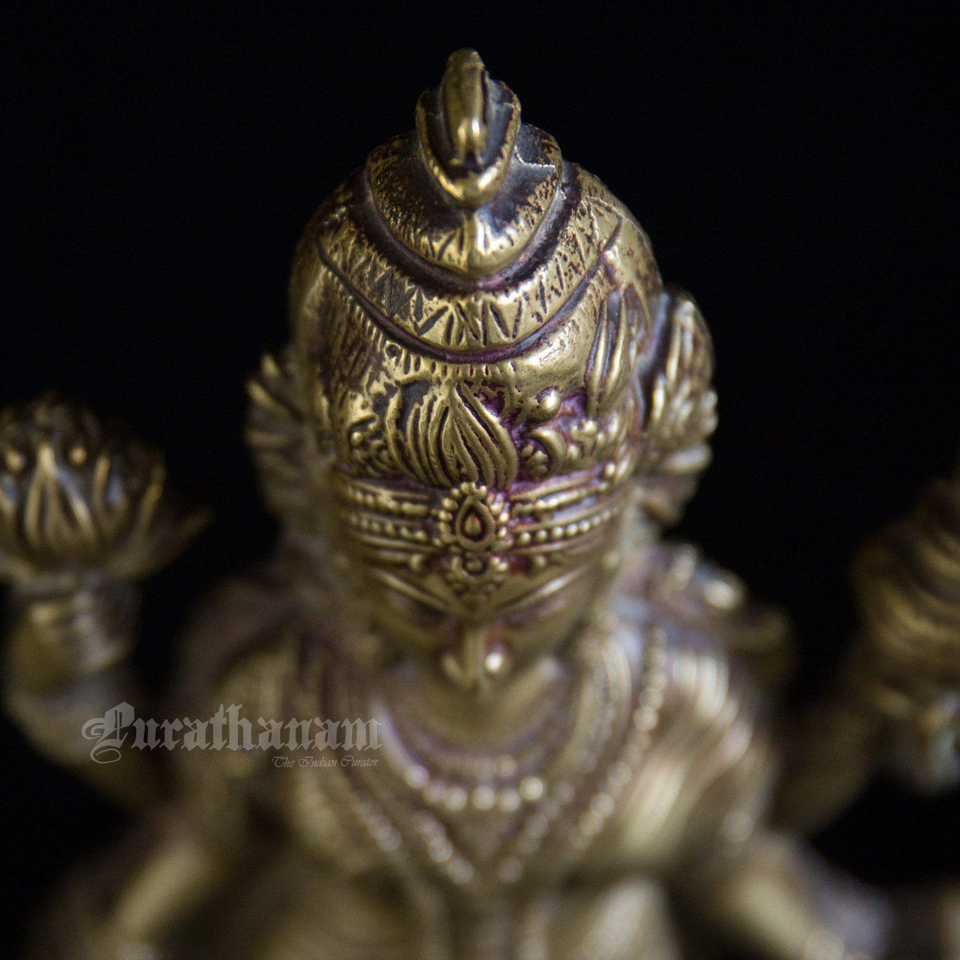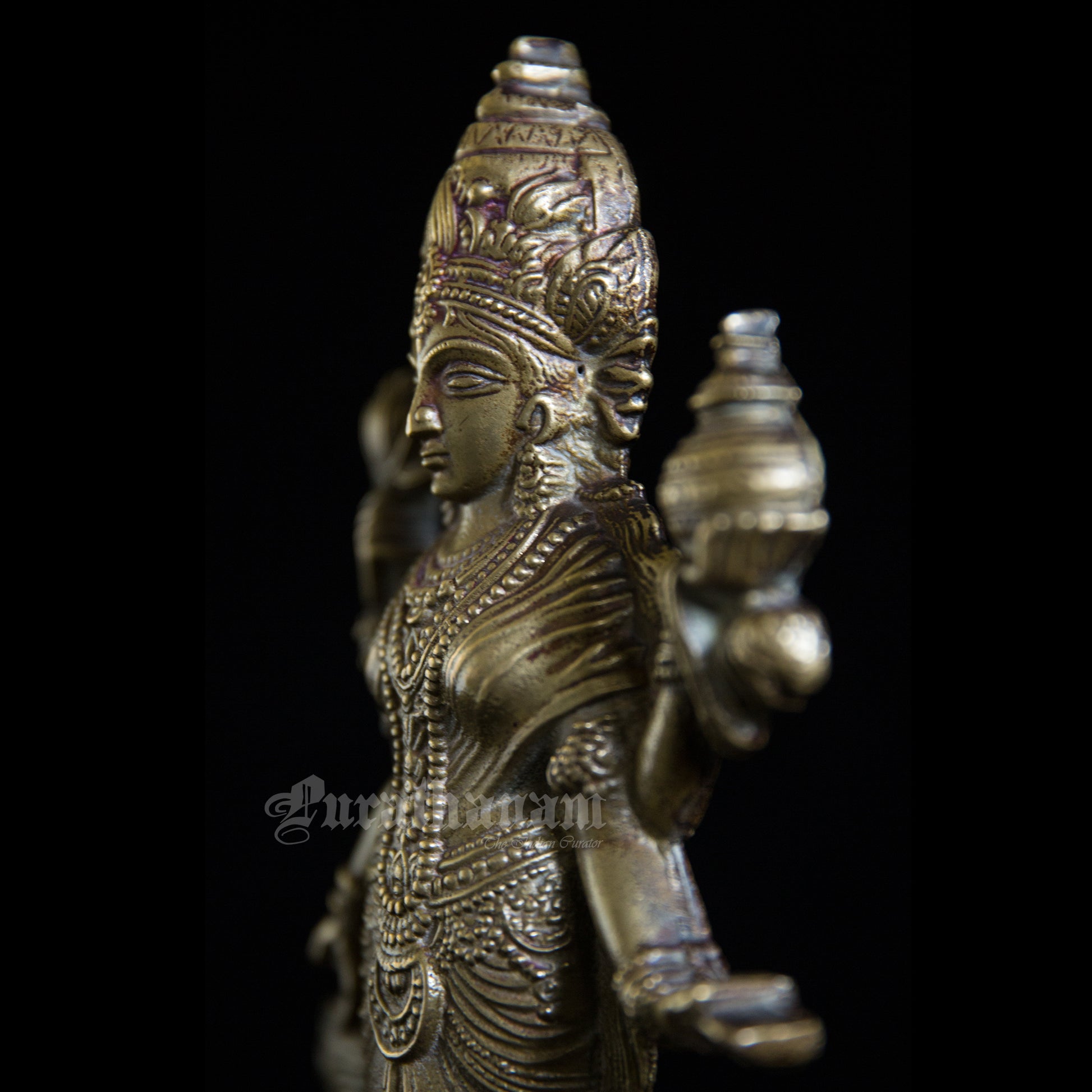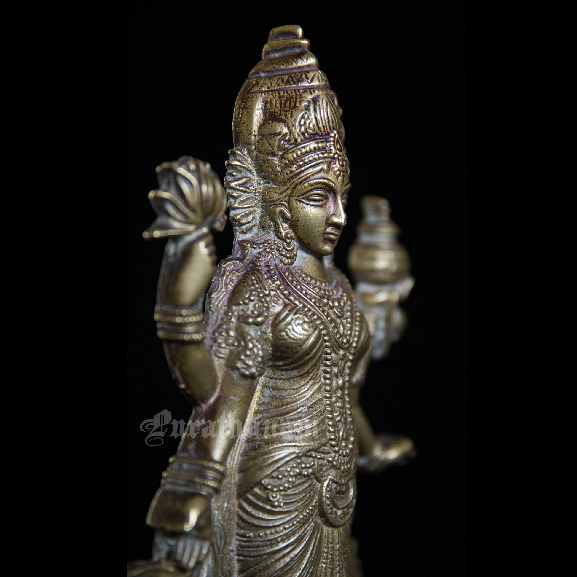 Here is a beautiful 50 year old Lakshmi made of Brass with intricate artwork and a wood pedestal.