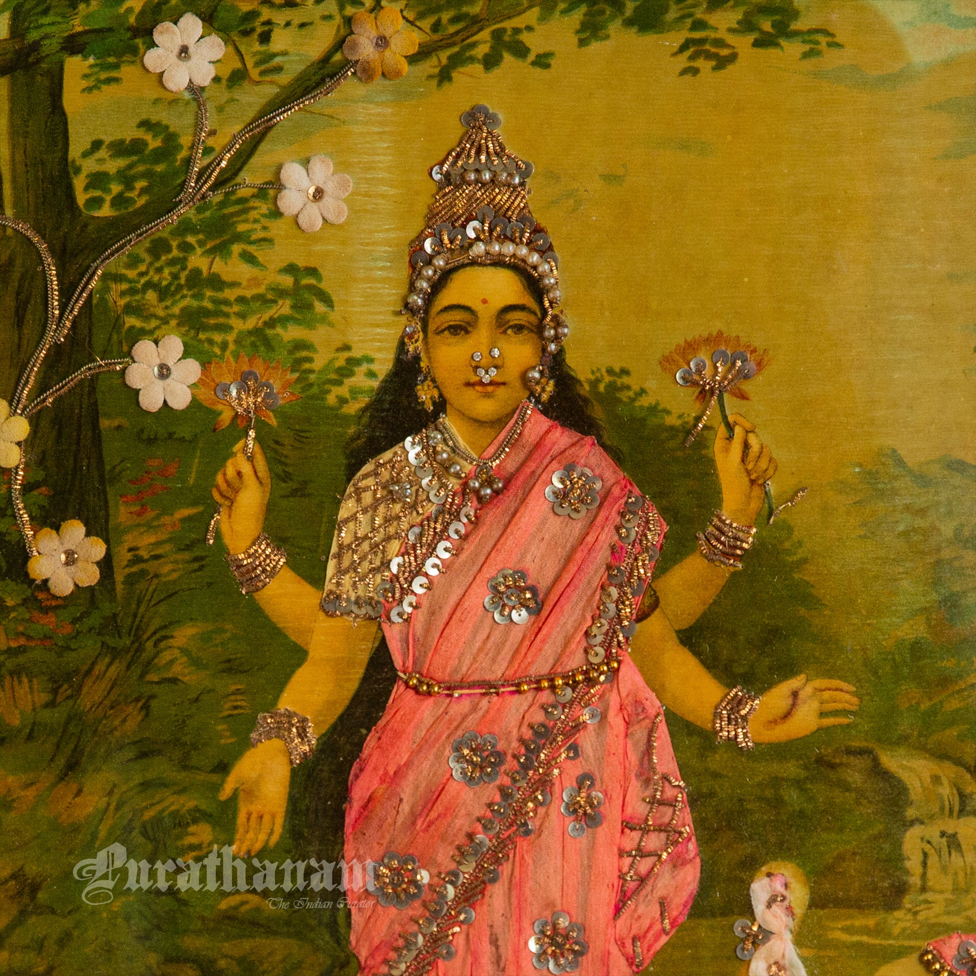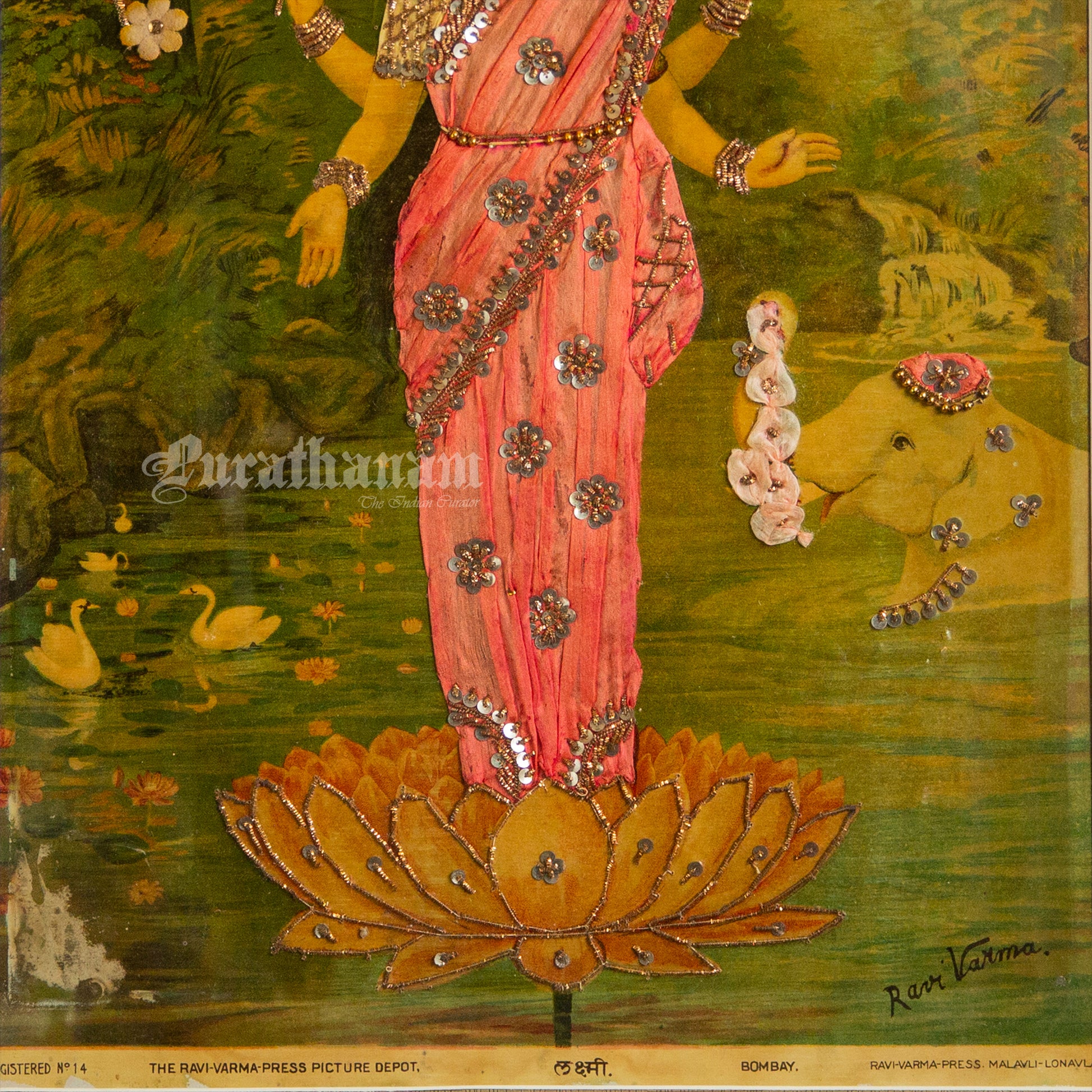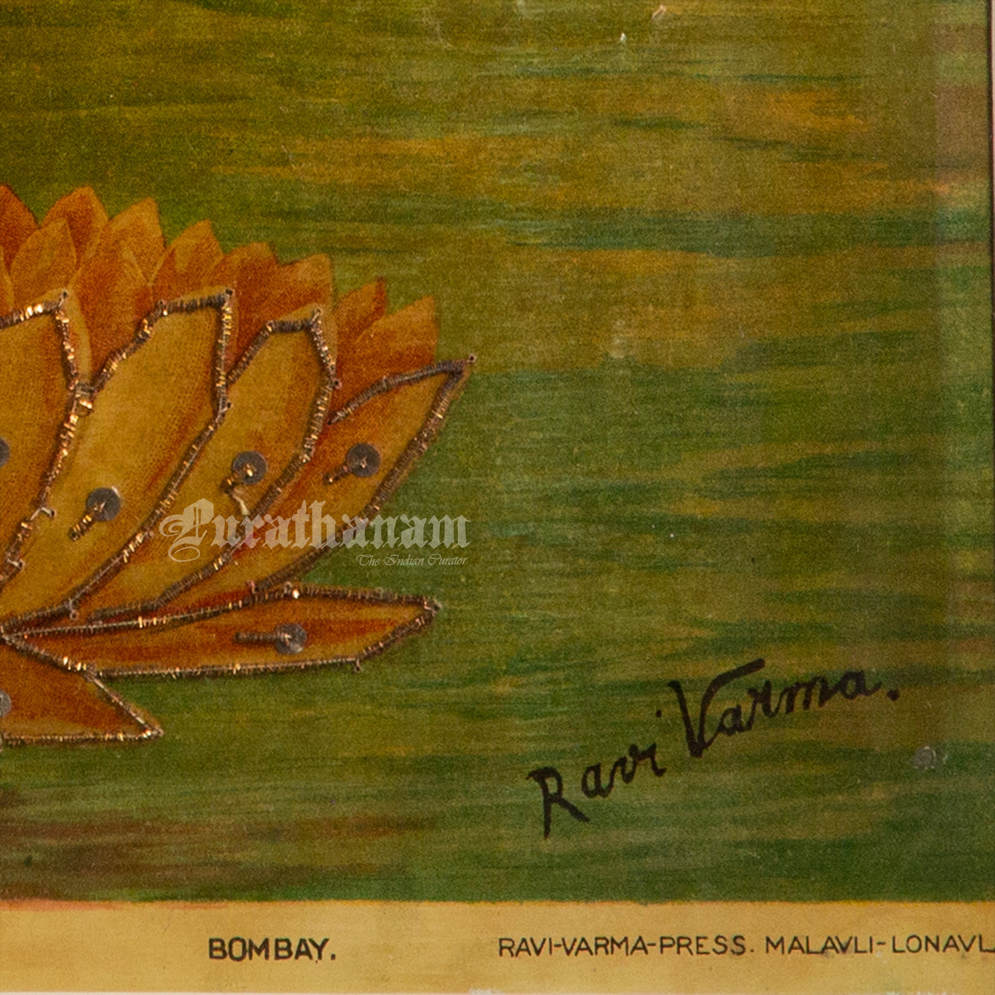 Lakshmi by Ravi Varma - Oleograph Print (Embellished)