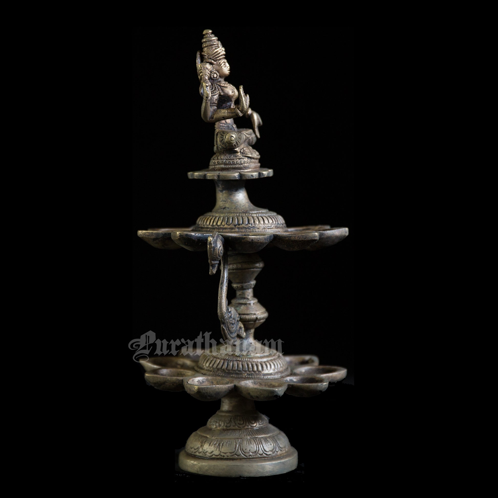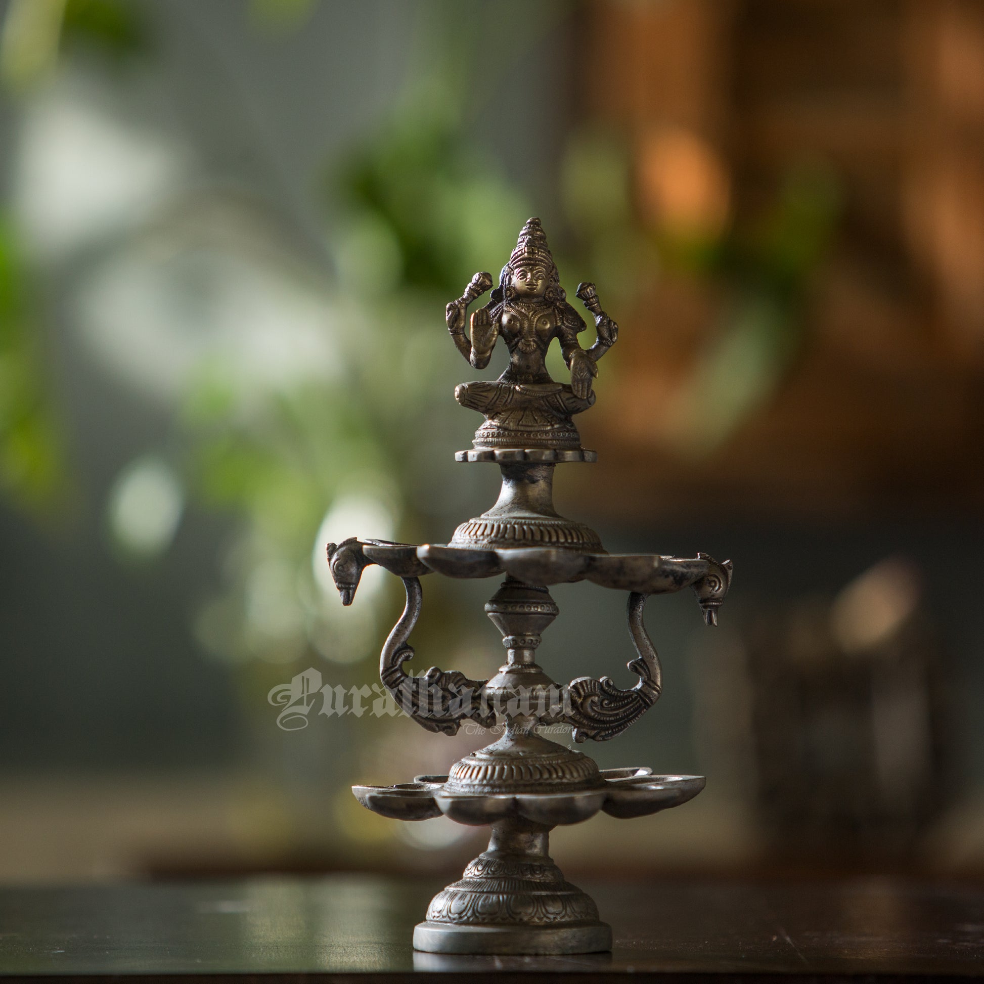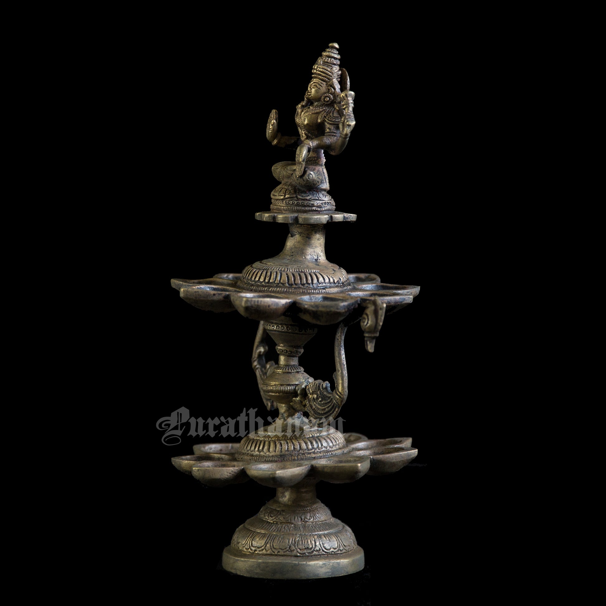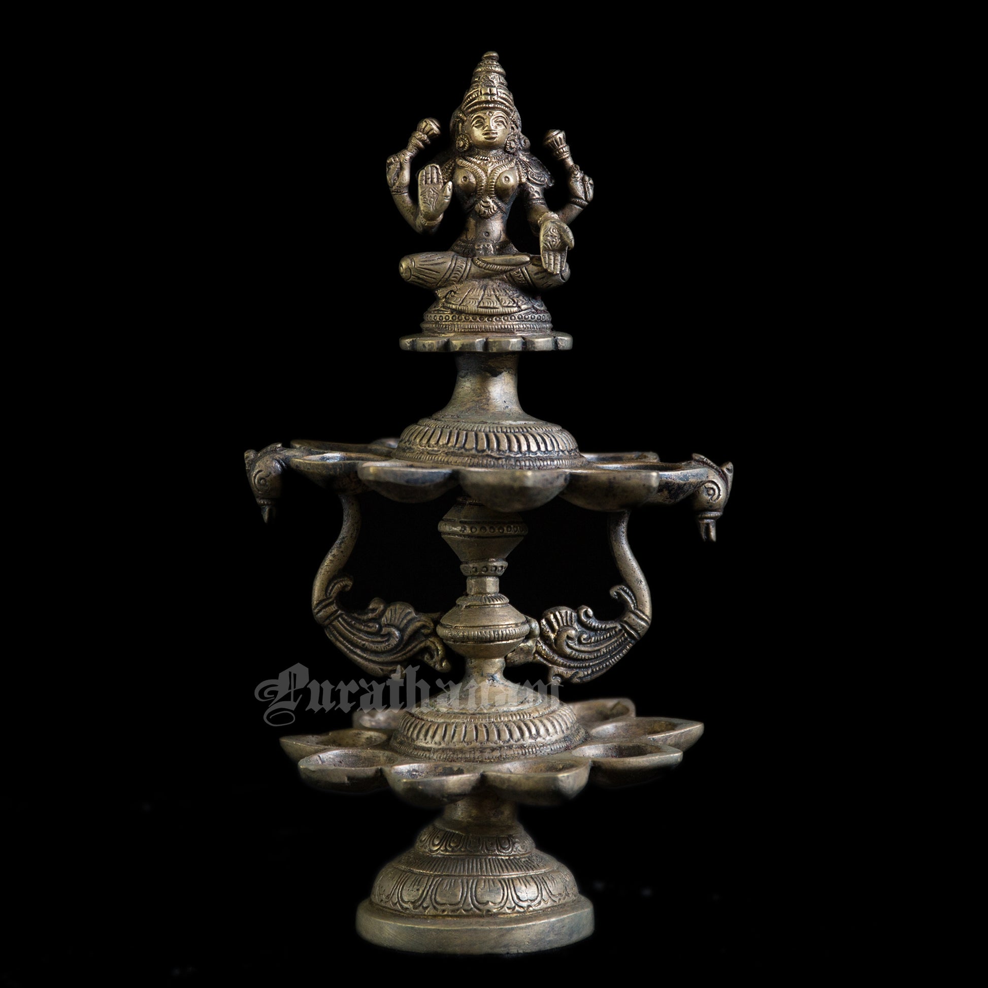 Here is a beautiful two layered Lakshmi deepam made of Brass all the way from South of India.