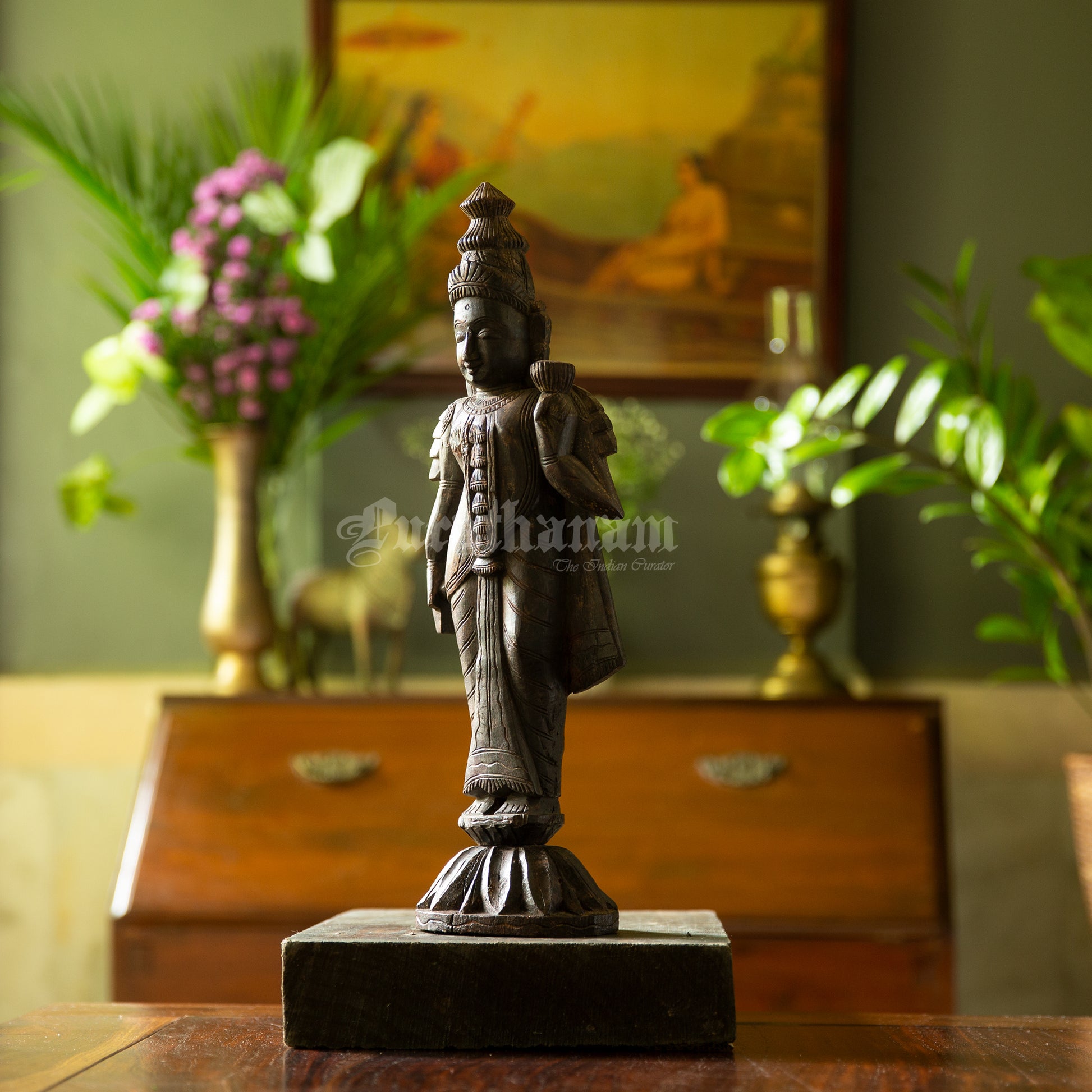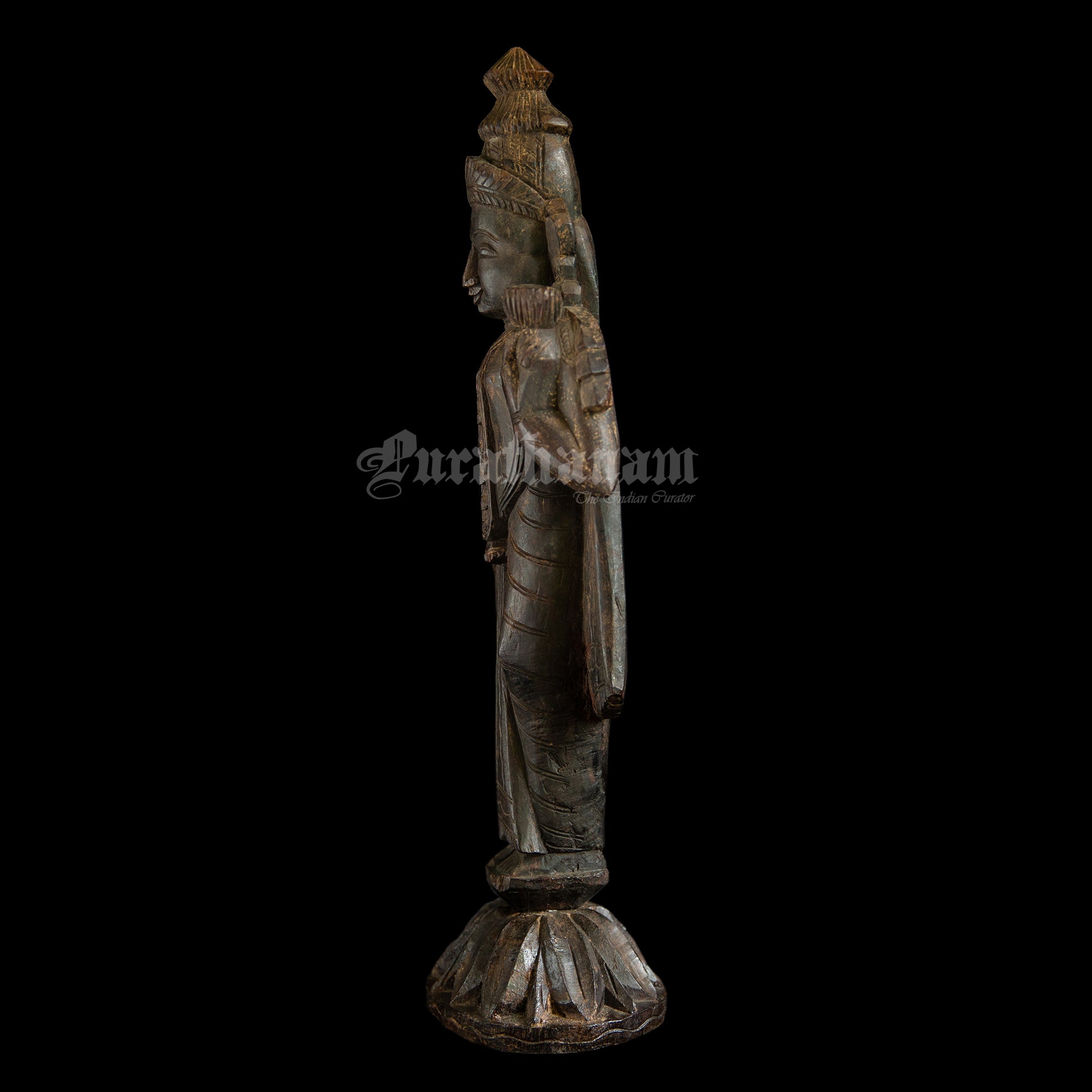 Here is a beautiful wooden sculpture of Lakshmi, hand carved in red sanders wood..