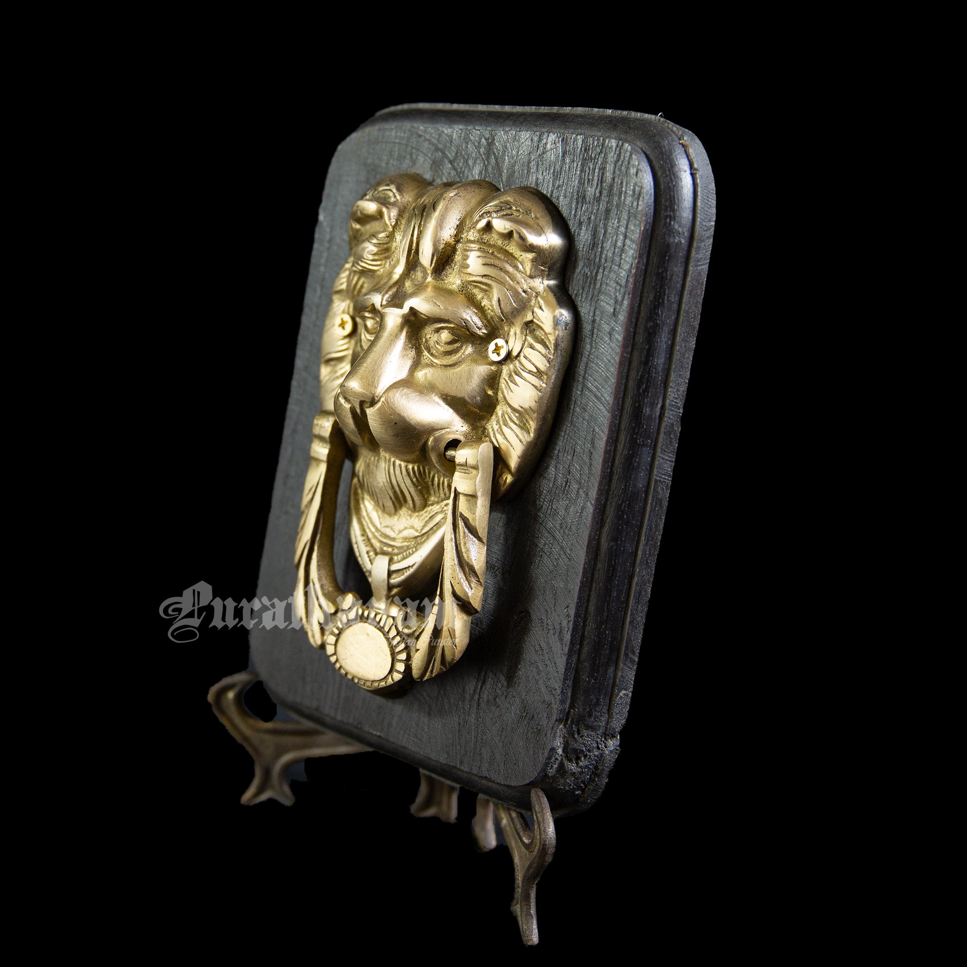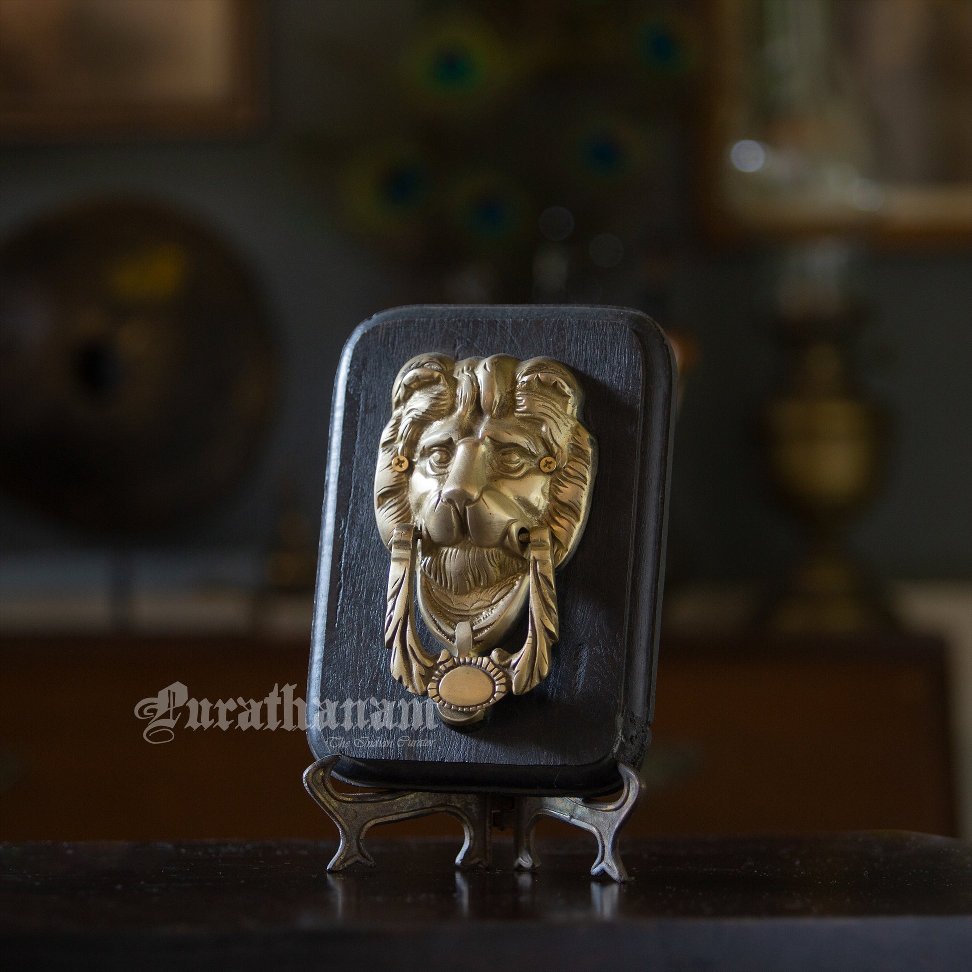 Here is a Lion Door Knocker plaque. The Lion is made of solid brass using a cast. This method was first used in the 70's but very prevalent in the 80's.