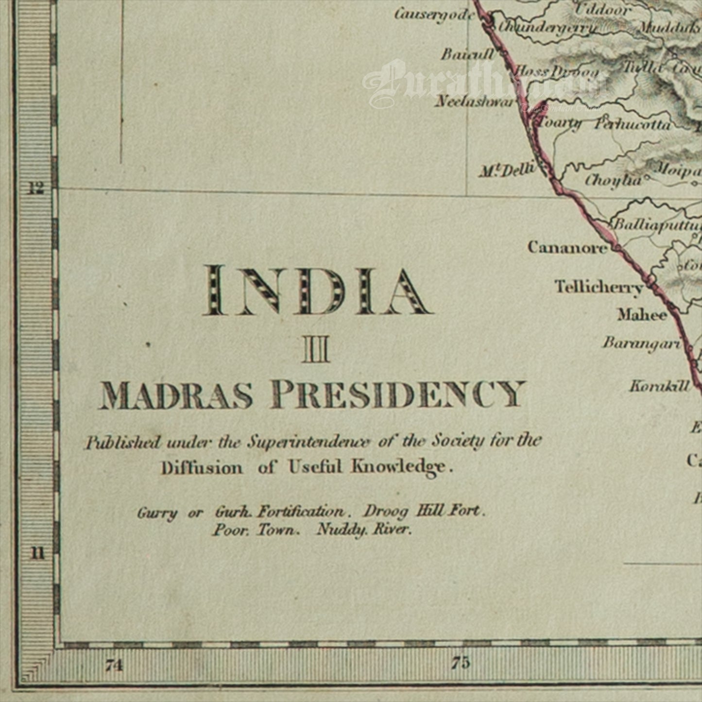Here is a black and white steel engraving of Madras presidency from 1830s.