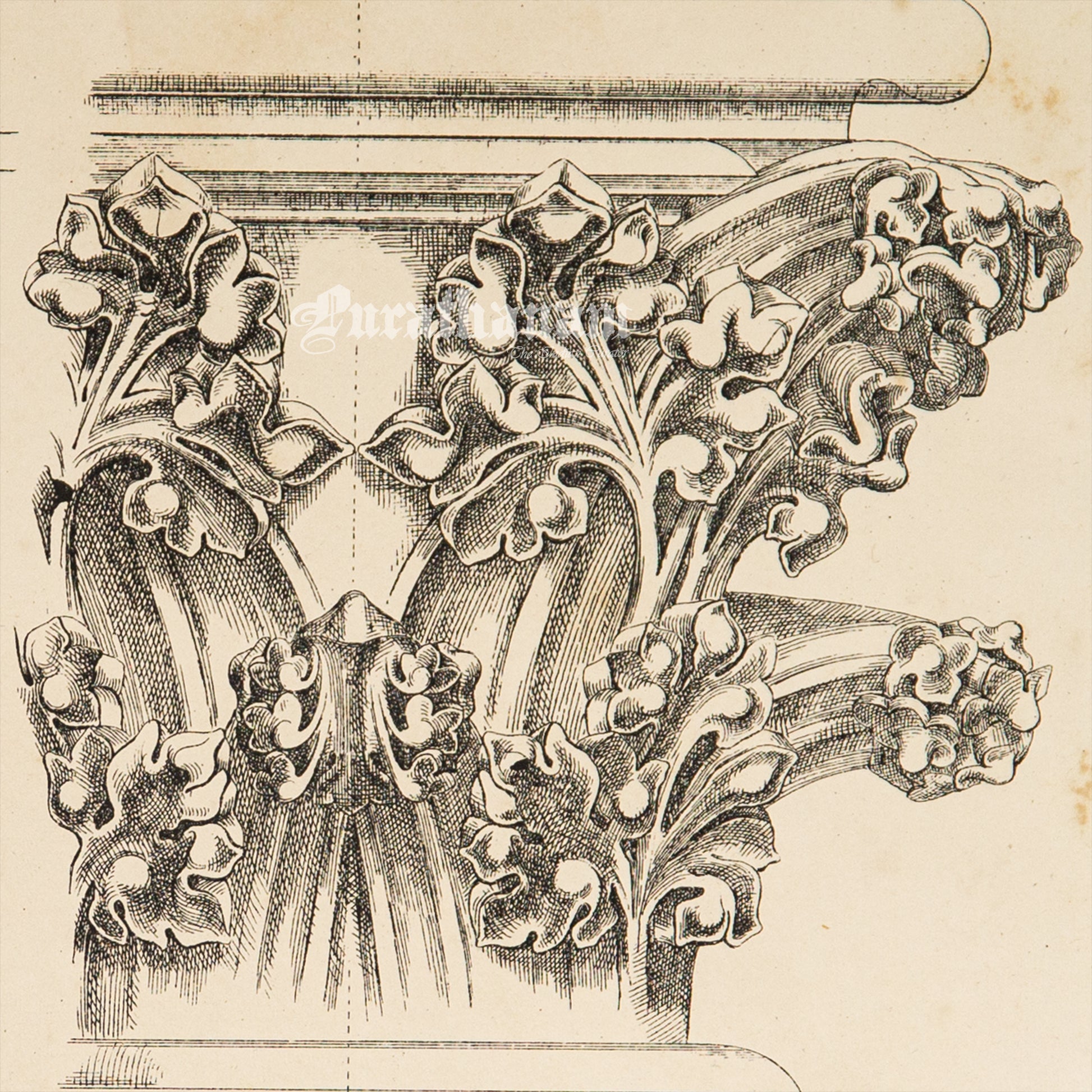 Medieval Architecture & Art-Auxerre - Plate 13 (Capitals of arcading Lady Chapel and Choir Aisle) -Steel Engraving