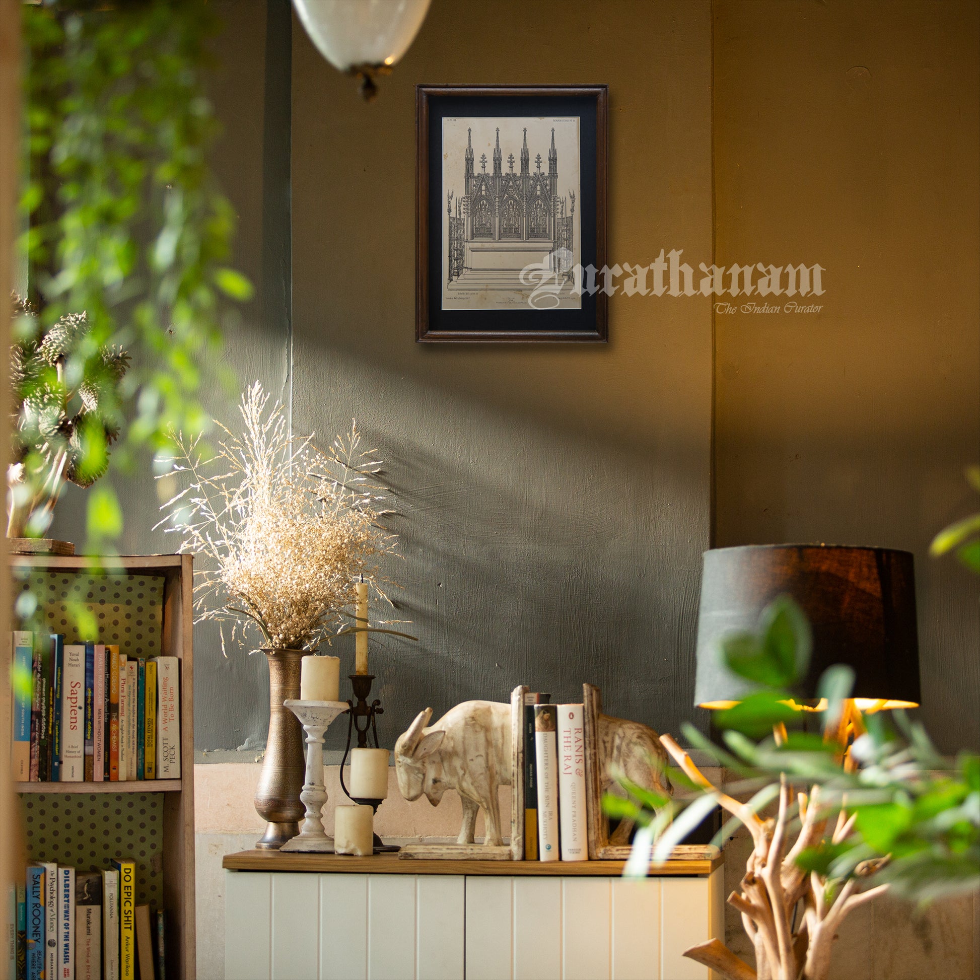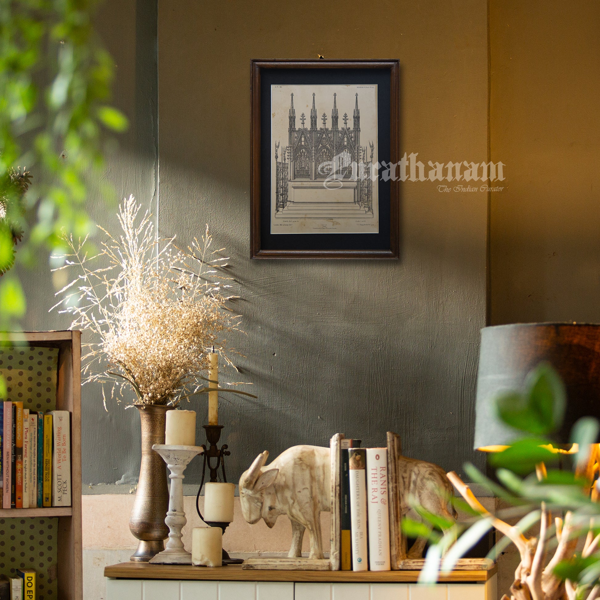 Frame: Frame may differ. Black matted and made of Teakwood. And it has an acrylic protection in place of glass.Dimensions: