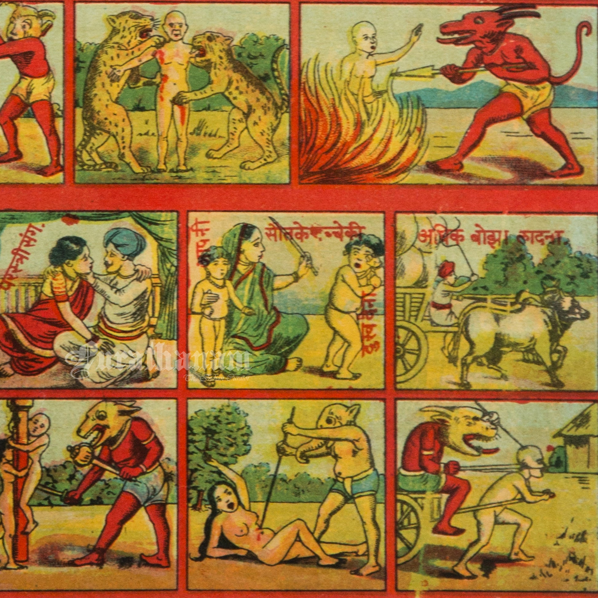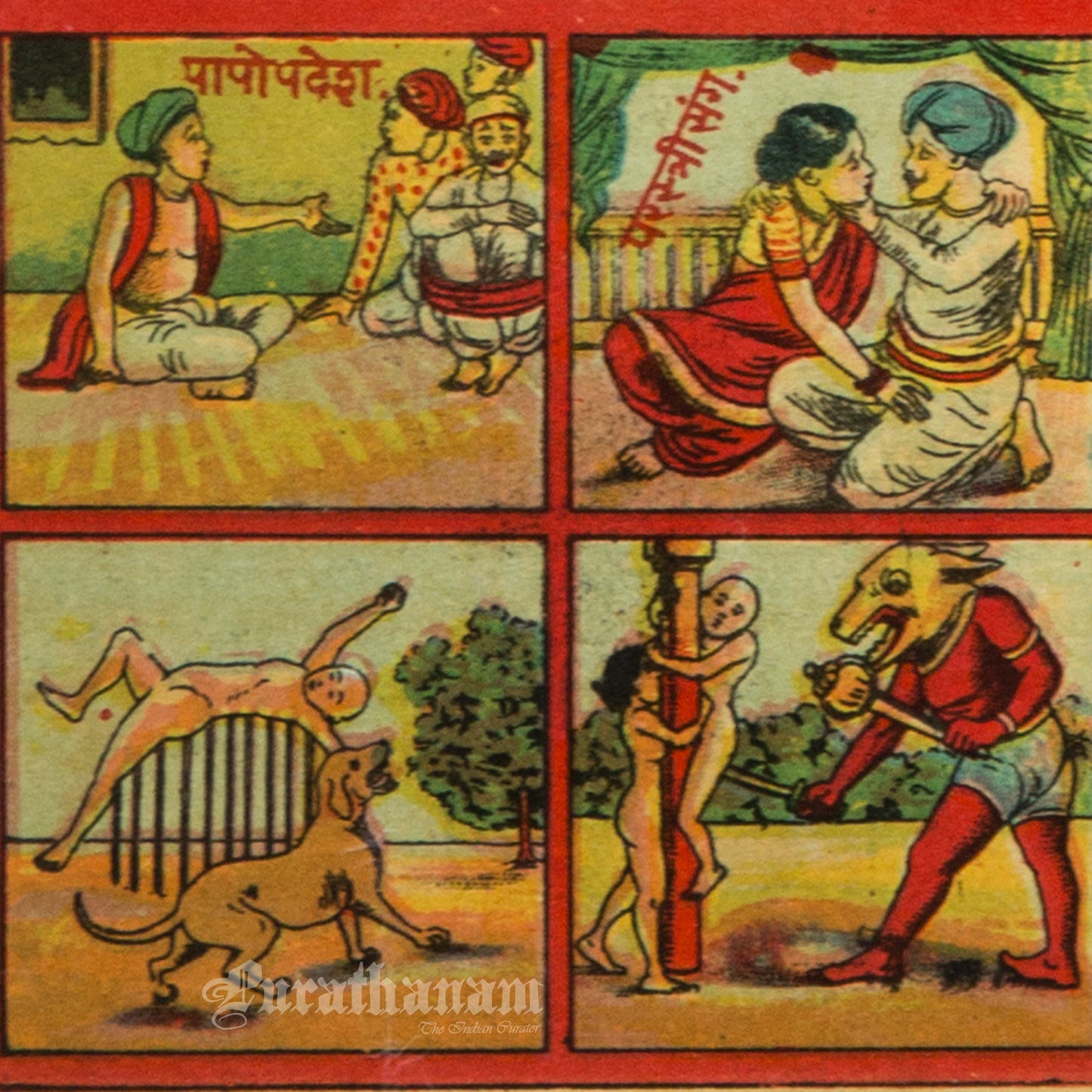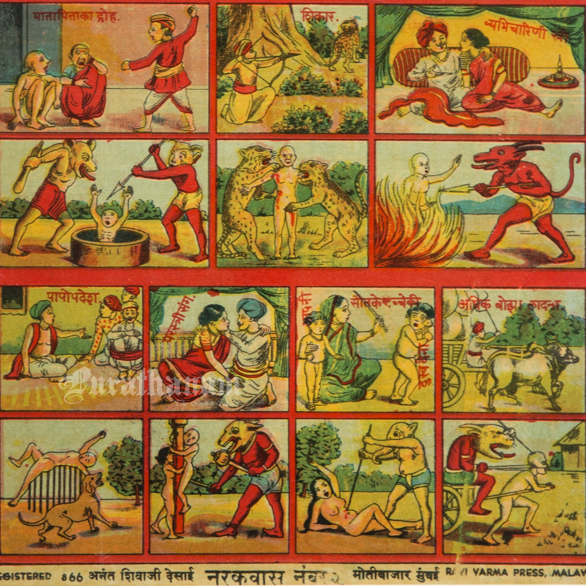 Introducing mini lithograph prints of size 10”x7” from 1920s - 1930s of Narakvas by Ravi Varma an Indian who achieved recognition for his depiction of scenes from the epics of the Mahabharata and Ramayana.