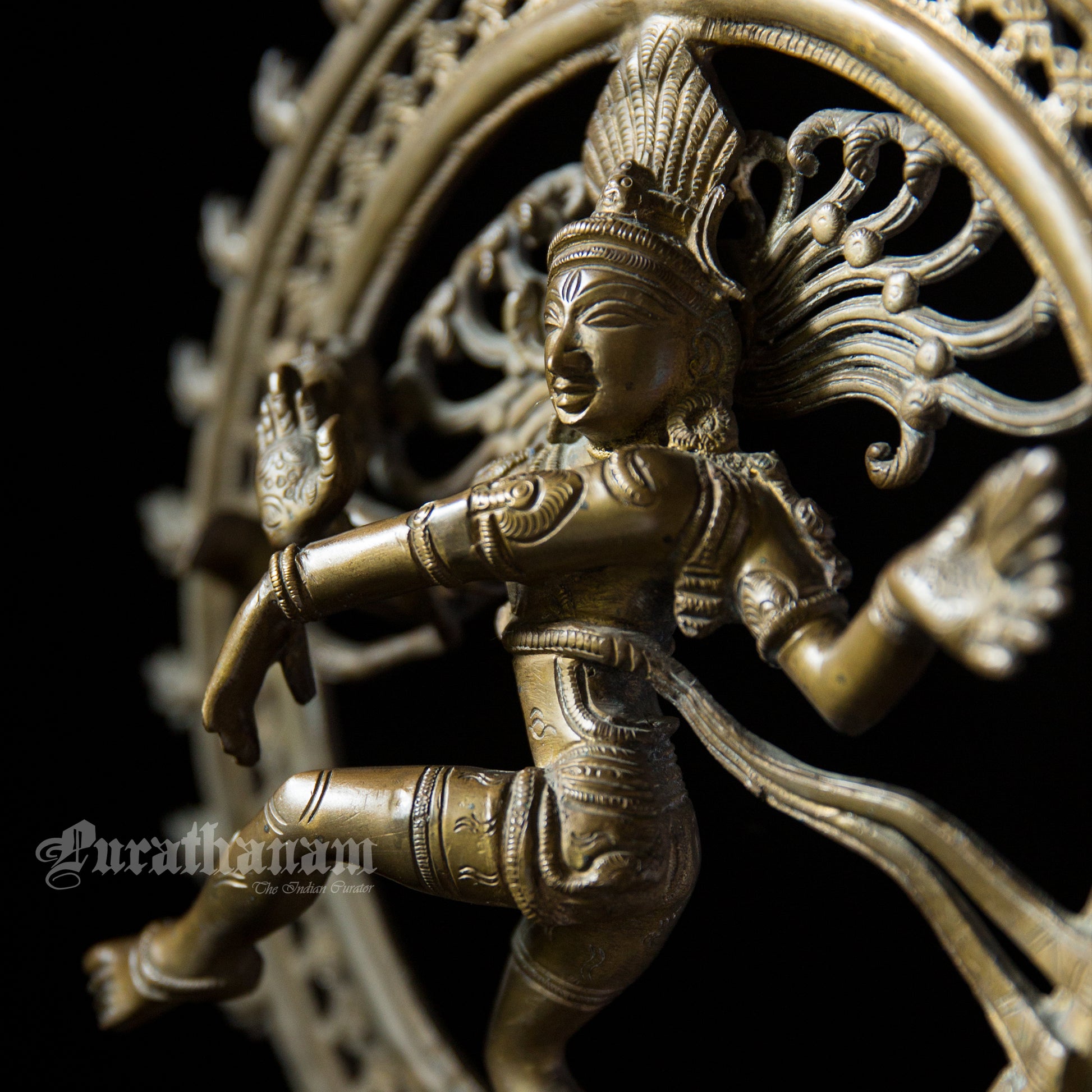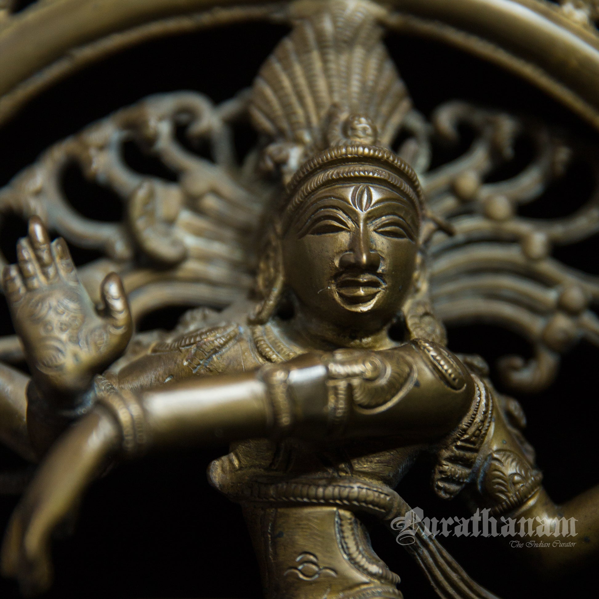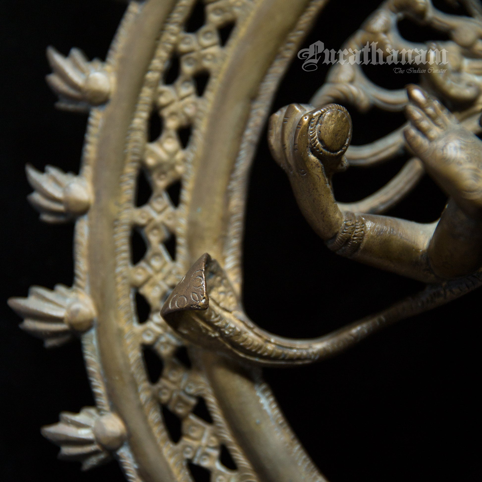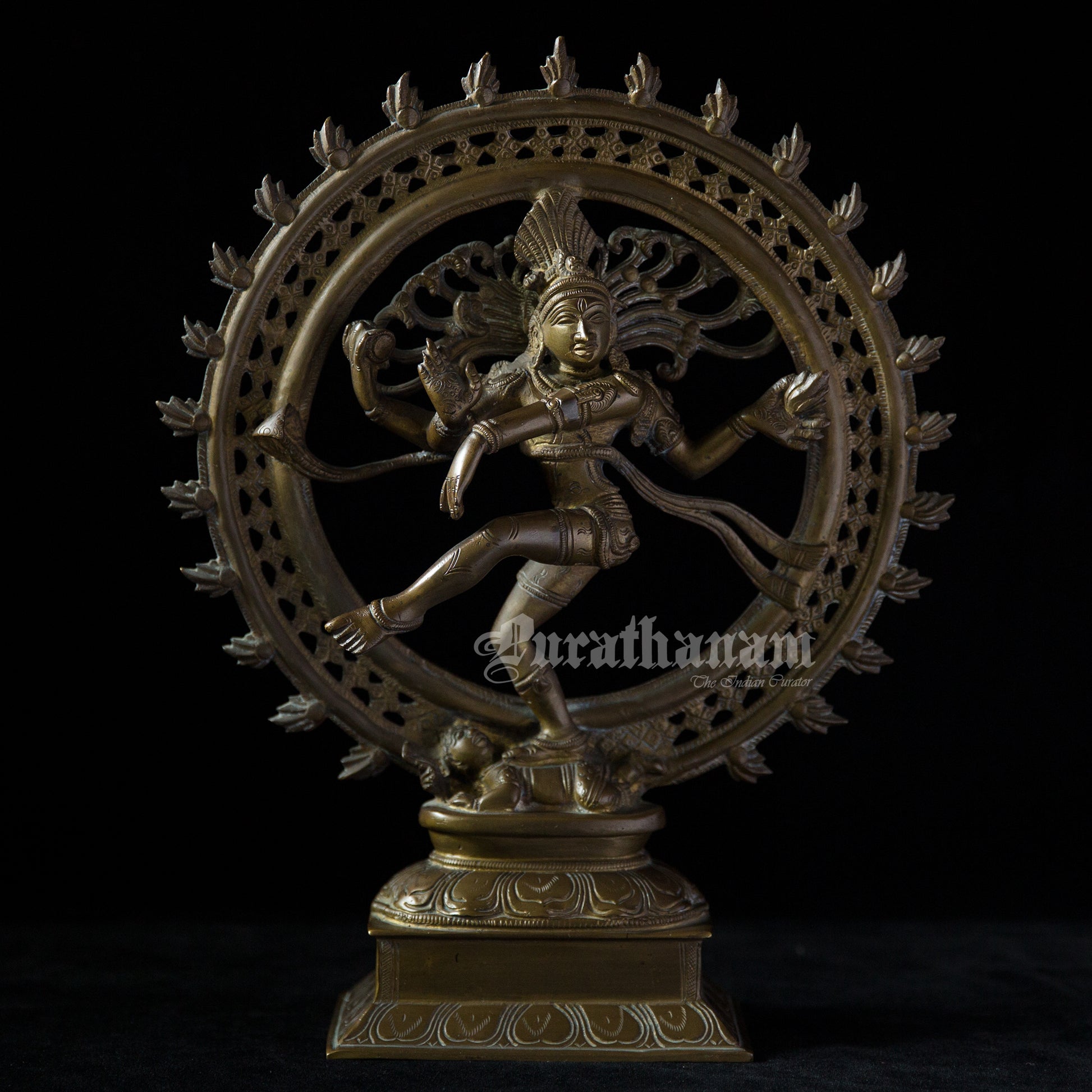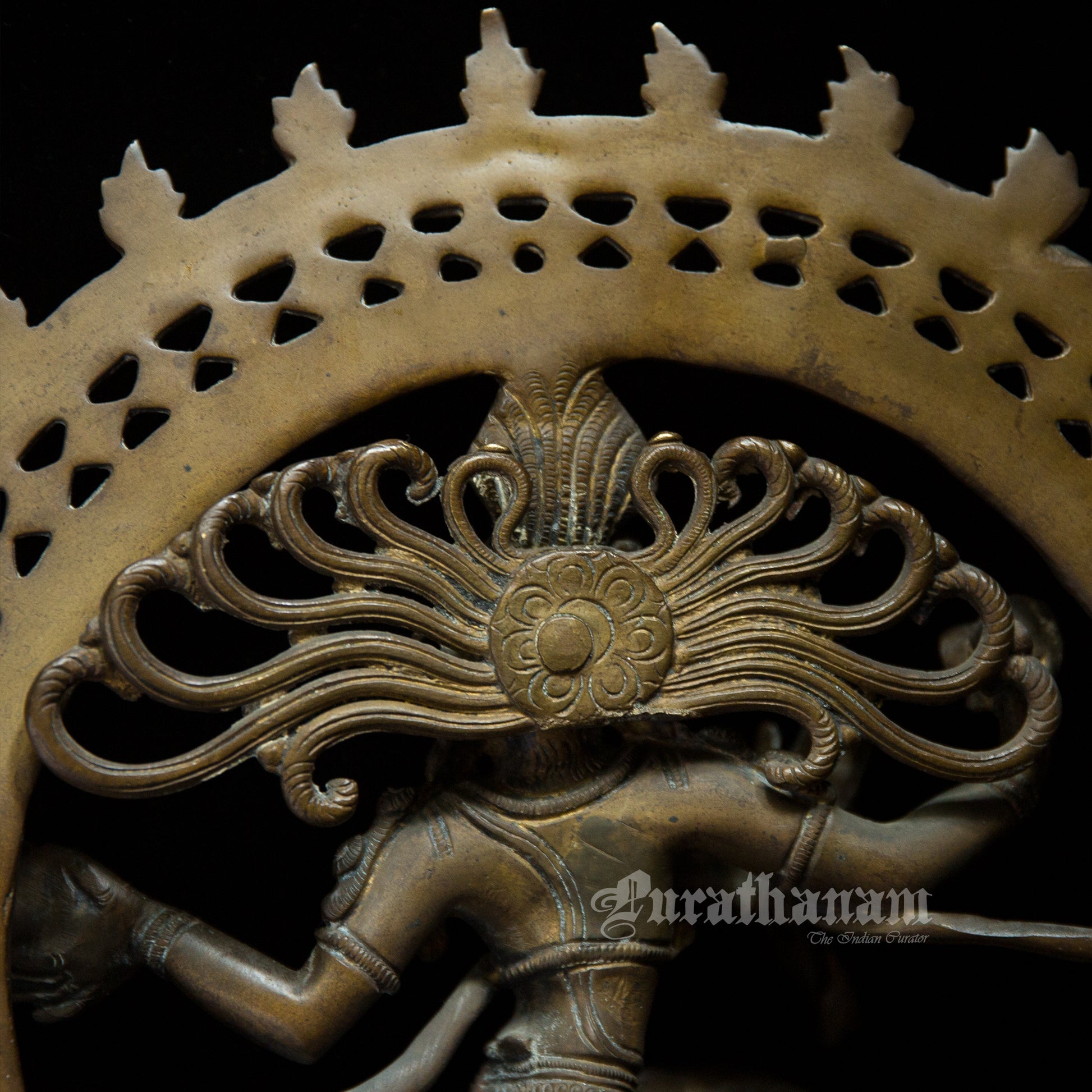 This beautiful Natarajar is made of solid brass using a cast. This method was first used in the 70's but very prevalent in the 80's. It is 30 years old and all the way from Tamil Nadu