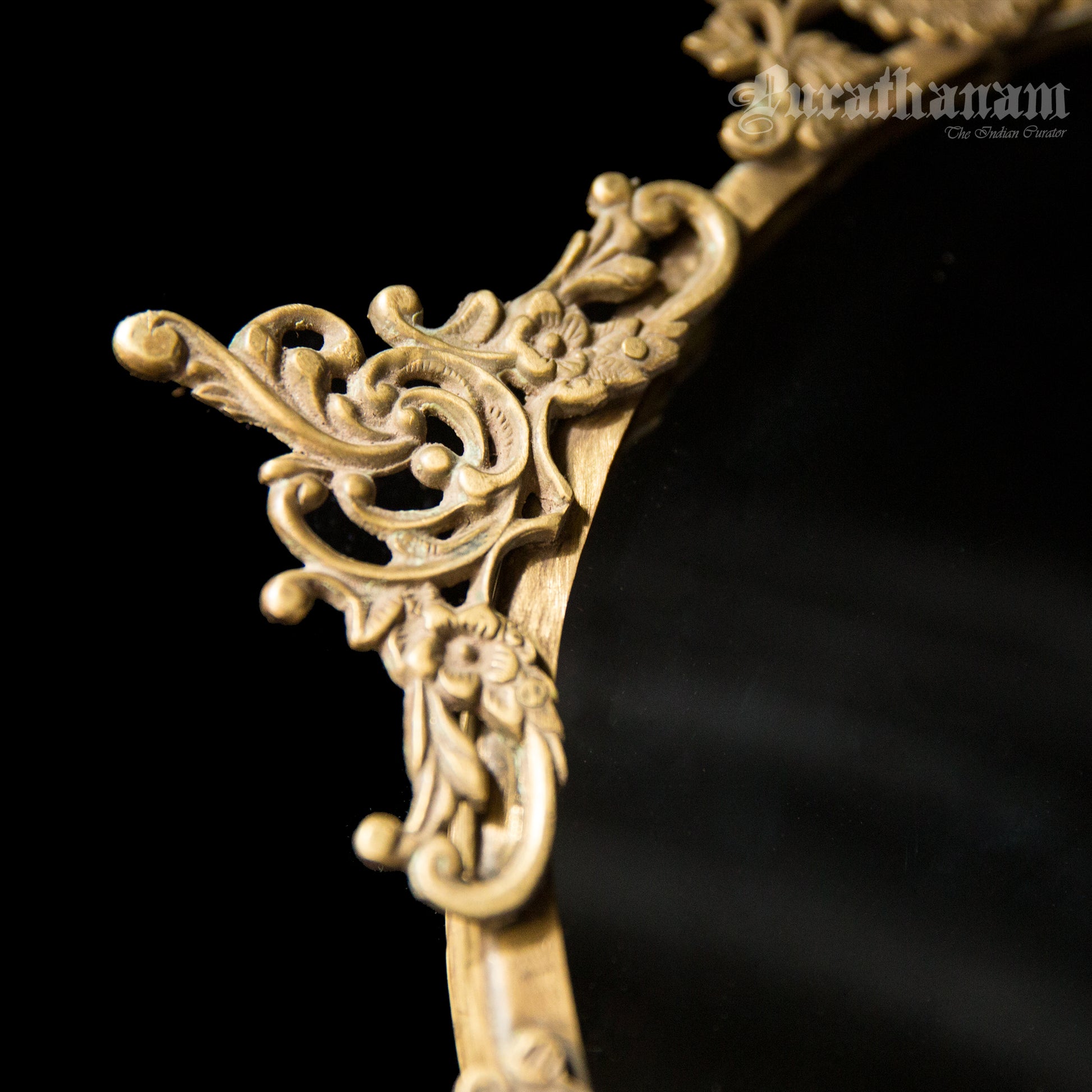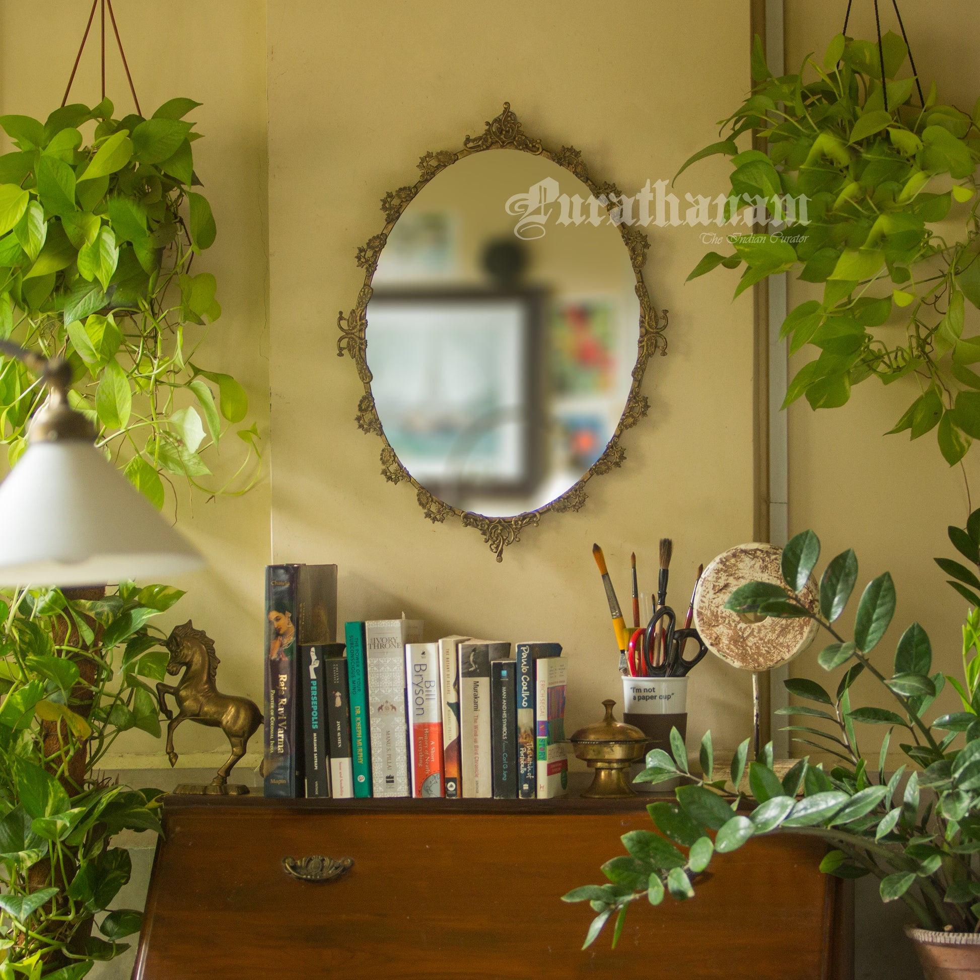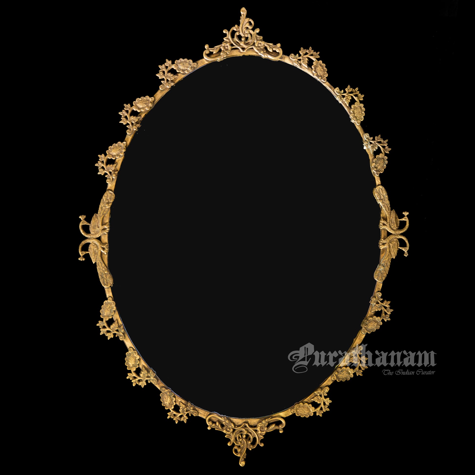 Here is a vintage oval shaped Mirror with a brass frame. It is about 30-40 years old from North India.