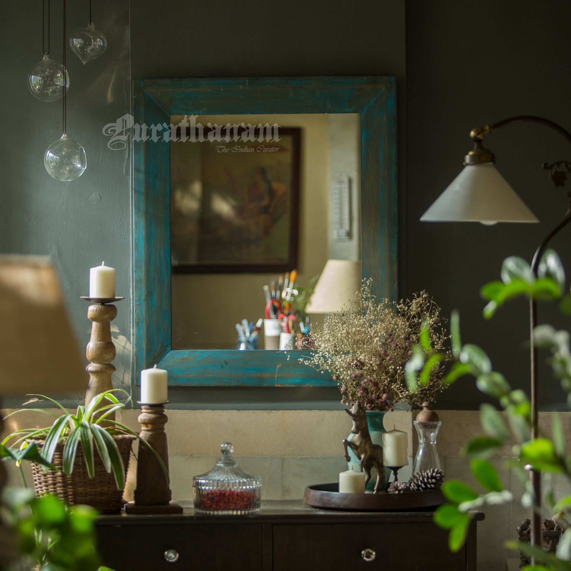 Here is a beautiful Mirror wall hanging all the way from Shekhawati, Rajasthan. It’s made of country wood.