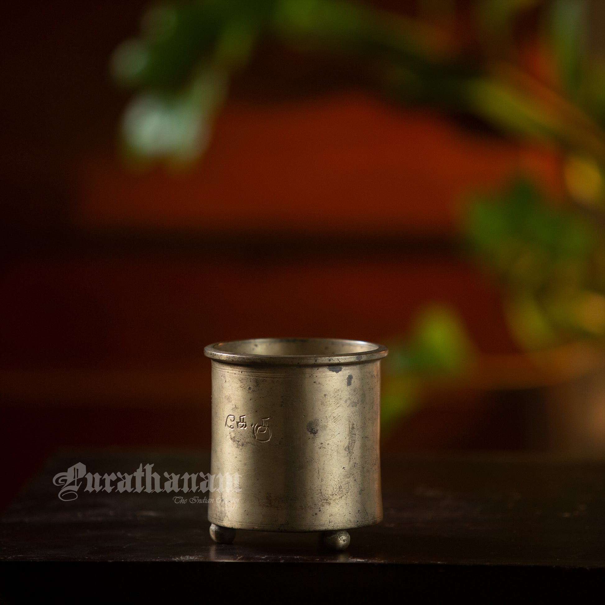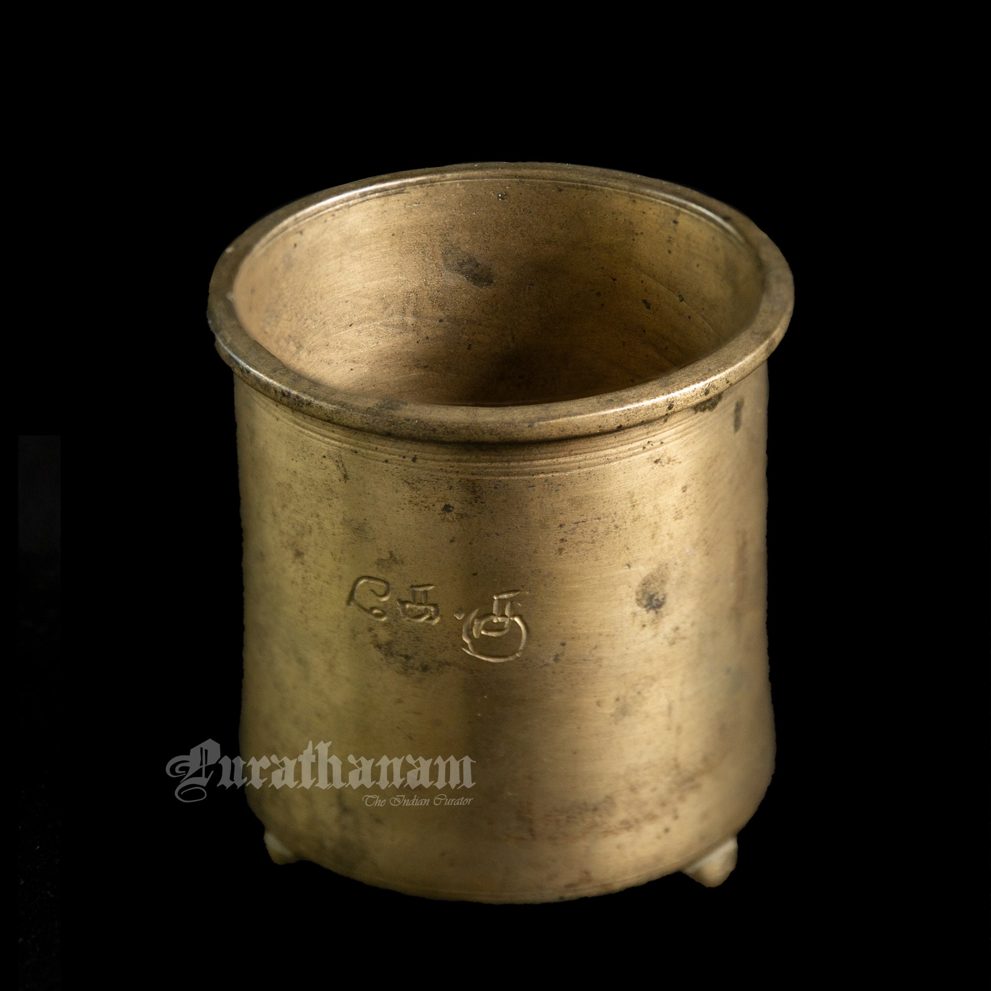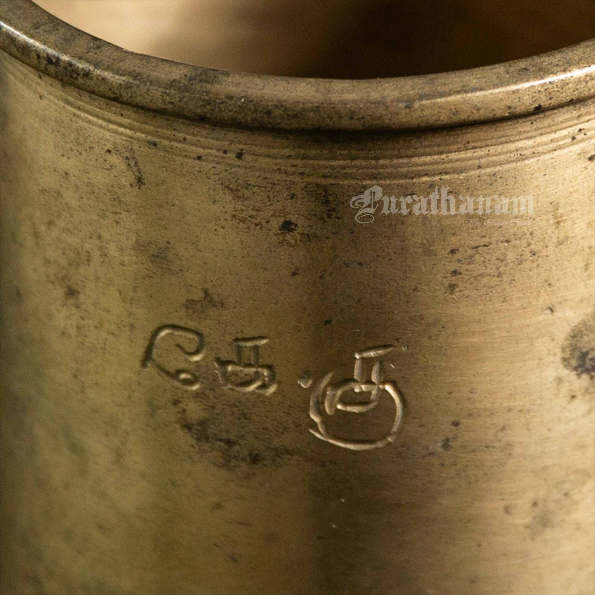Here we have a panchloga vessel from Tamizh Nadu, South of India. People buy panchaloham with the belief that it will bring balance to their body and mind. This vessel has inscription of its owner’s initials in Tamizh as Ke. Ku.