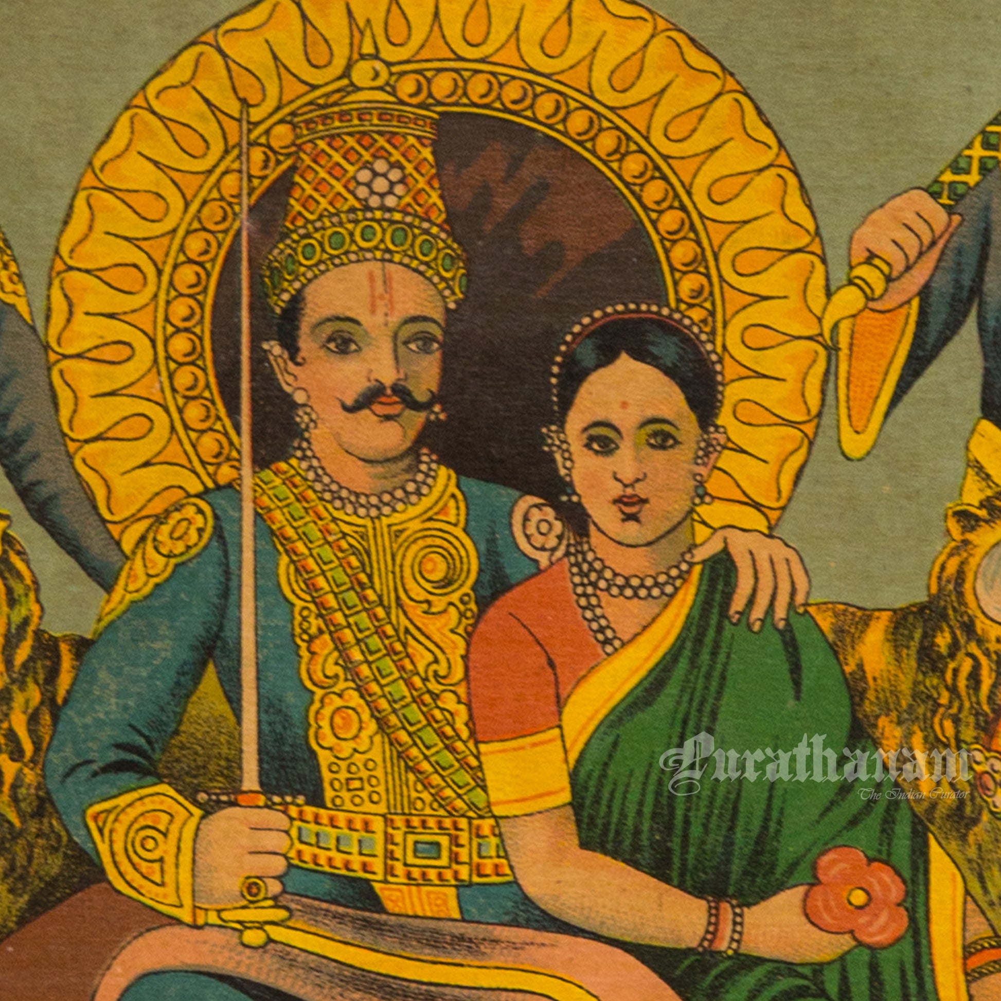 Raja Ravi Varma (29 April 1848–2 October 1906) was a celebrated Indian artist, famous for his realistic portrayal of Indian gods, goddesses and mythological characters. Raja Ravi Varma was the first to make prints (or lithographs) of his artworks affordable and easily available, bringing fine art to the masses.