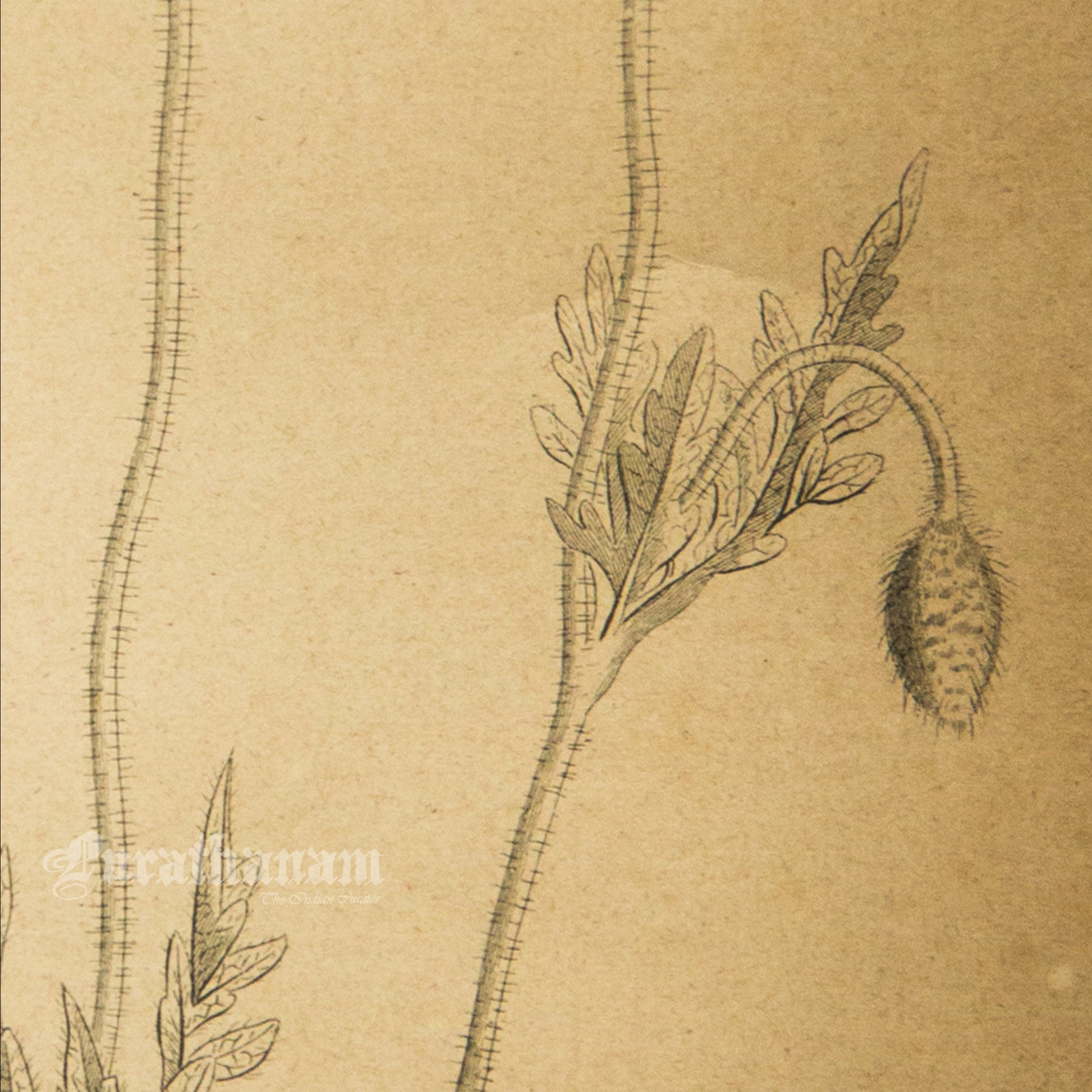 Here is an antique steel engraved black and white botanical print of Papaver Rhoeas (Common Red Poppy) by G. Aikman, Edinr for Encyclopedia Britannica 9th Edition. George Aikman (1830–1905) was a Scottish painter and engraver.