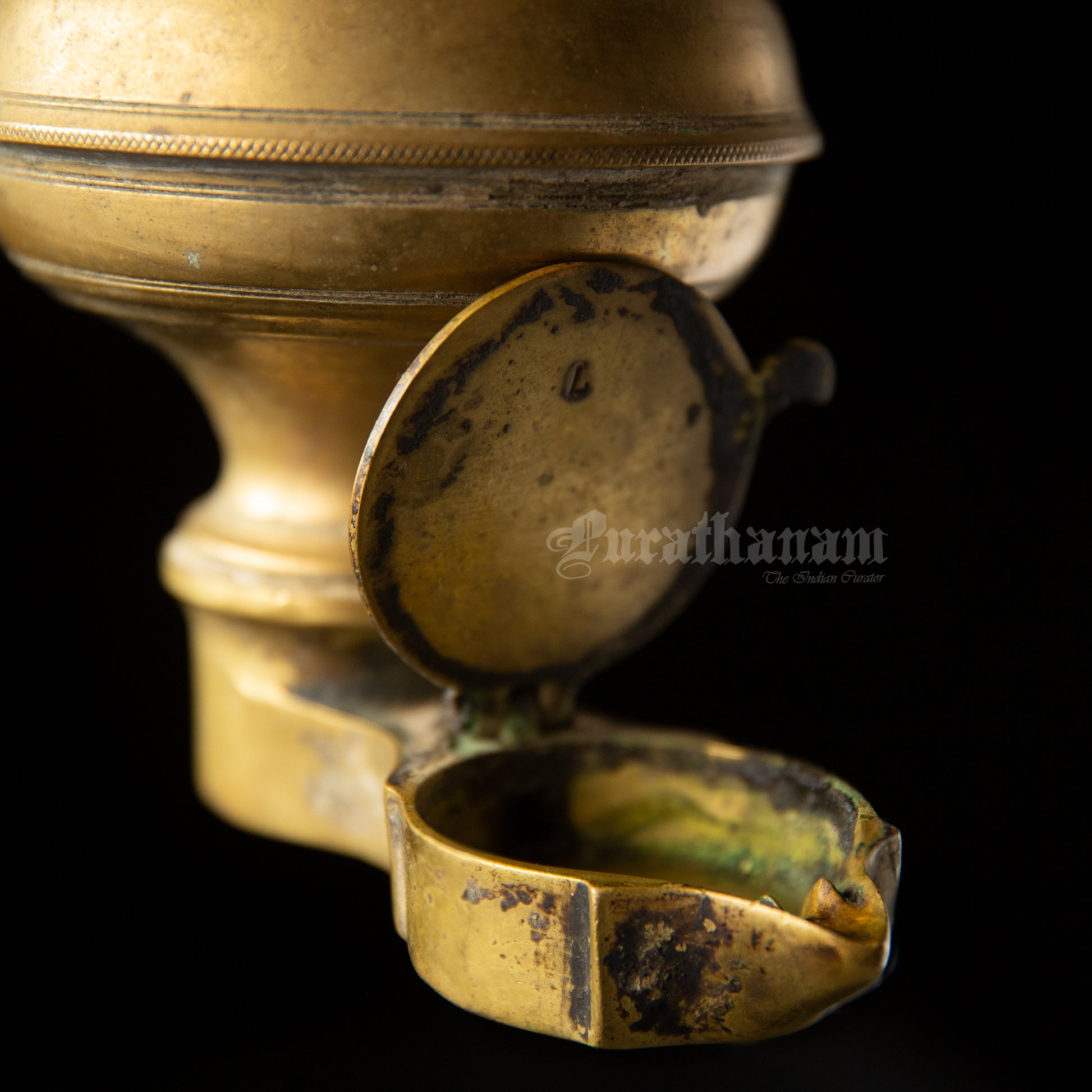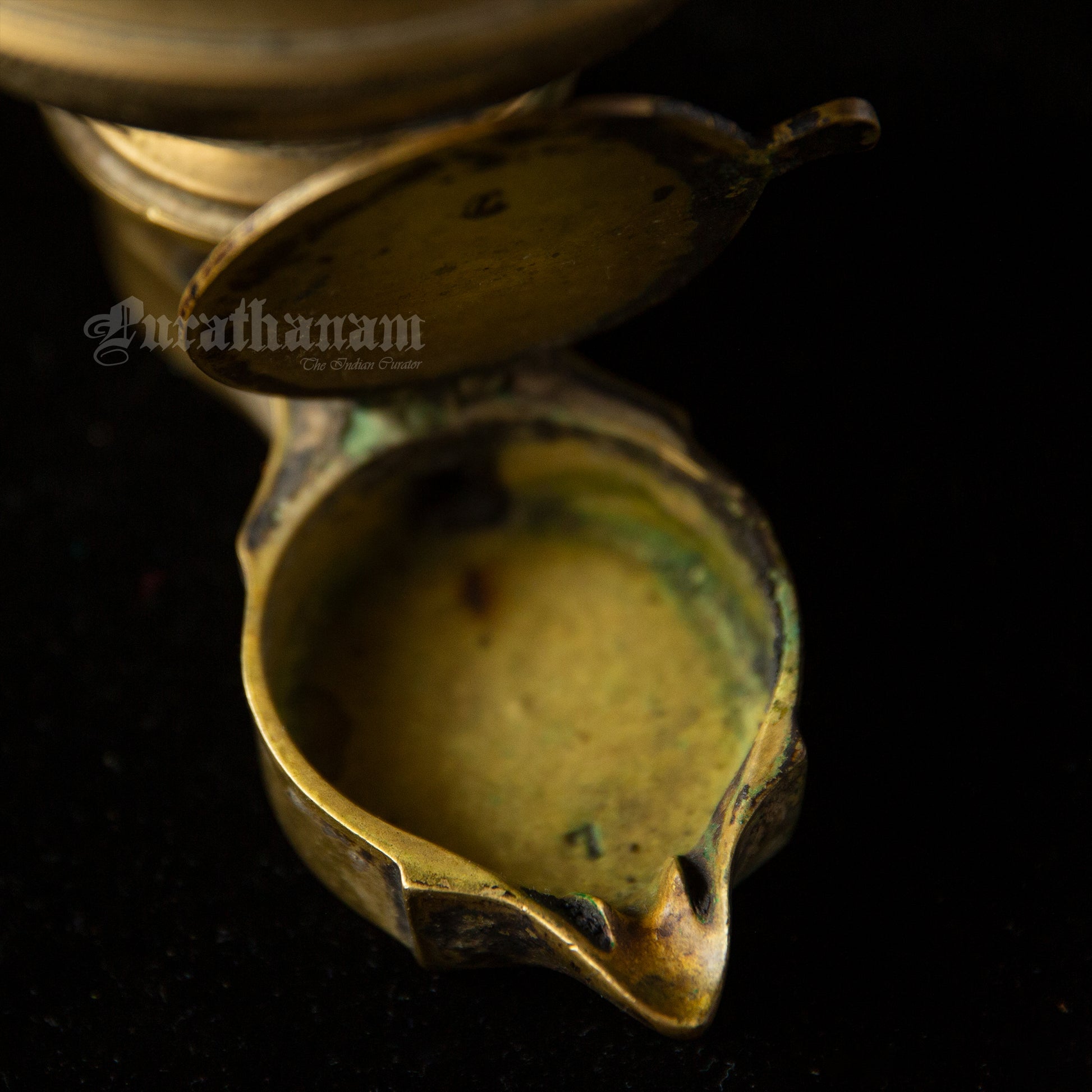 Thoondudhal (தூண்டுதல்) in Tamil meaning, touching something. So to not to touch something is called Thoonda (தூண்டா ). Since this lamp works by the Capillary action and auto feds oil or ghee from the reservoir in to the lamp to burn continuously without the necessity of adjusting the wick it has got it’s name “Thoondamani Vilakku” (Tamil: தூண்டாமணி விளக்கு).