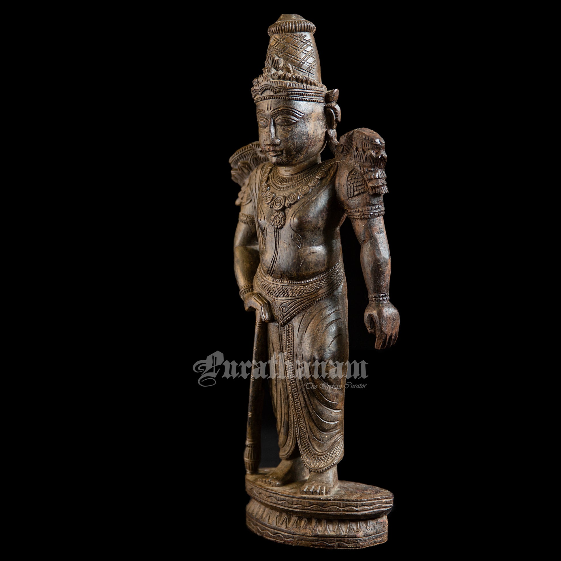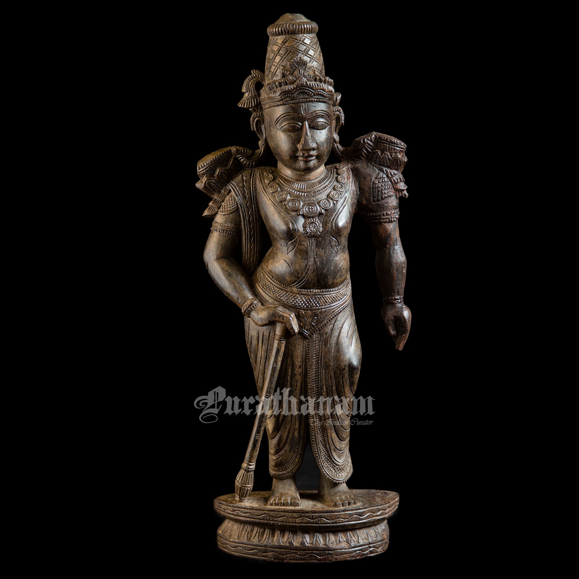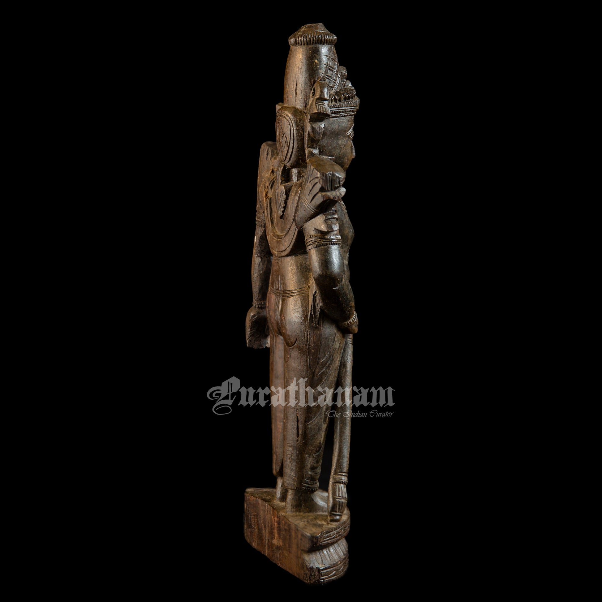 Presenting a handcrafted wooden sculpture of Ram. It is meticulously carved from a single block of red sanders wood with exquisite craftsmanship.