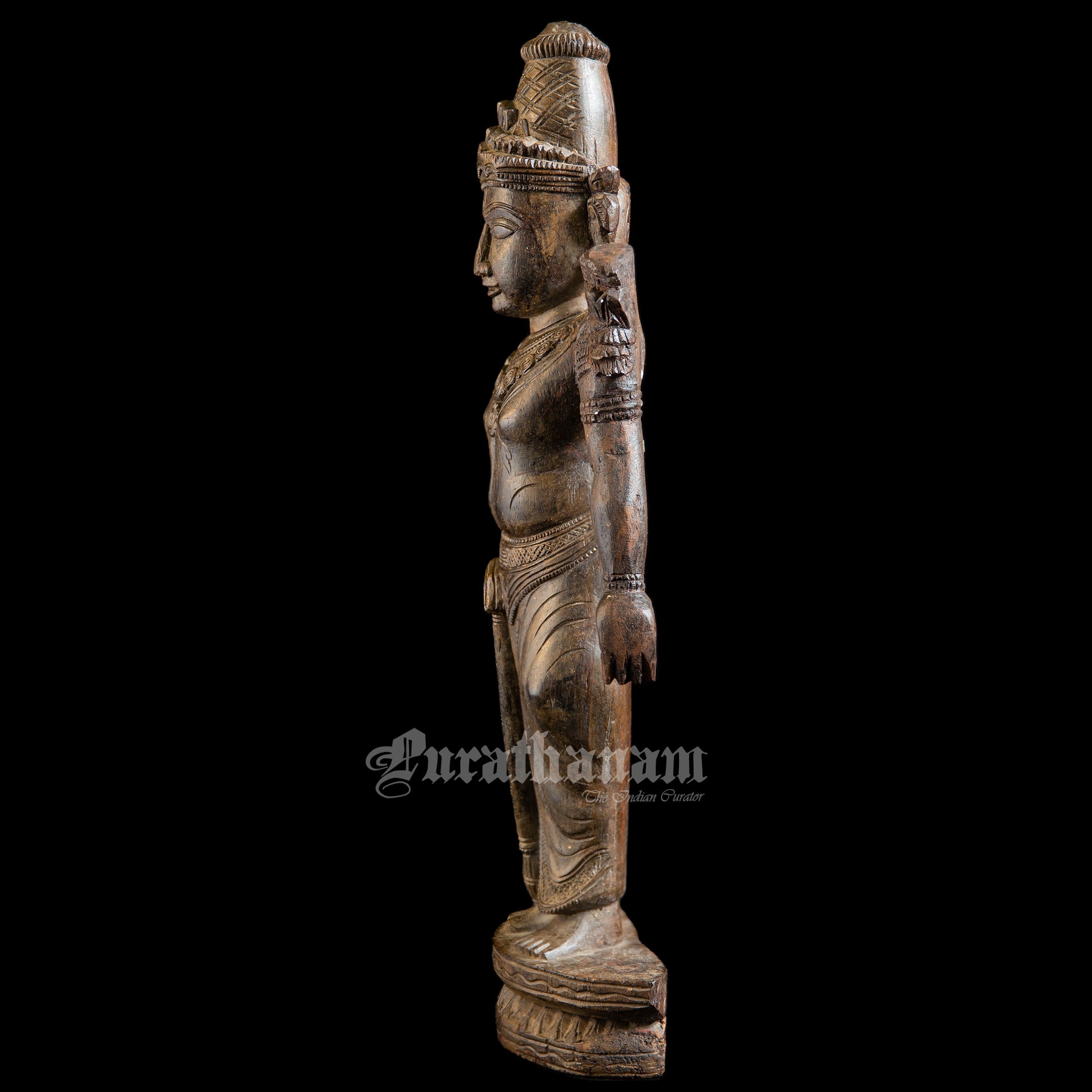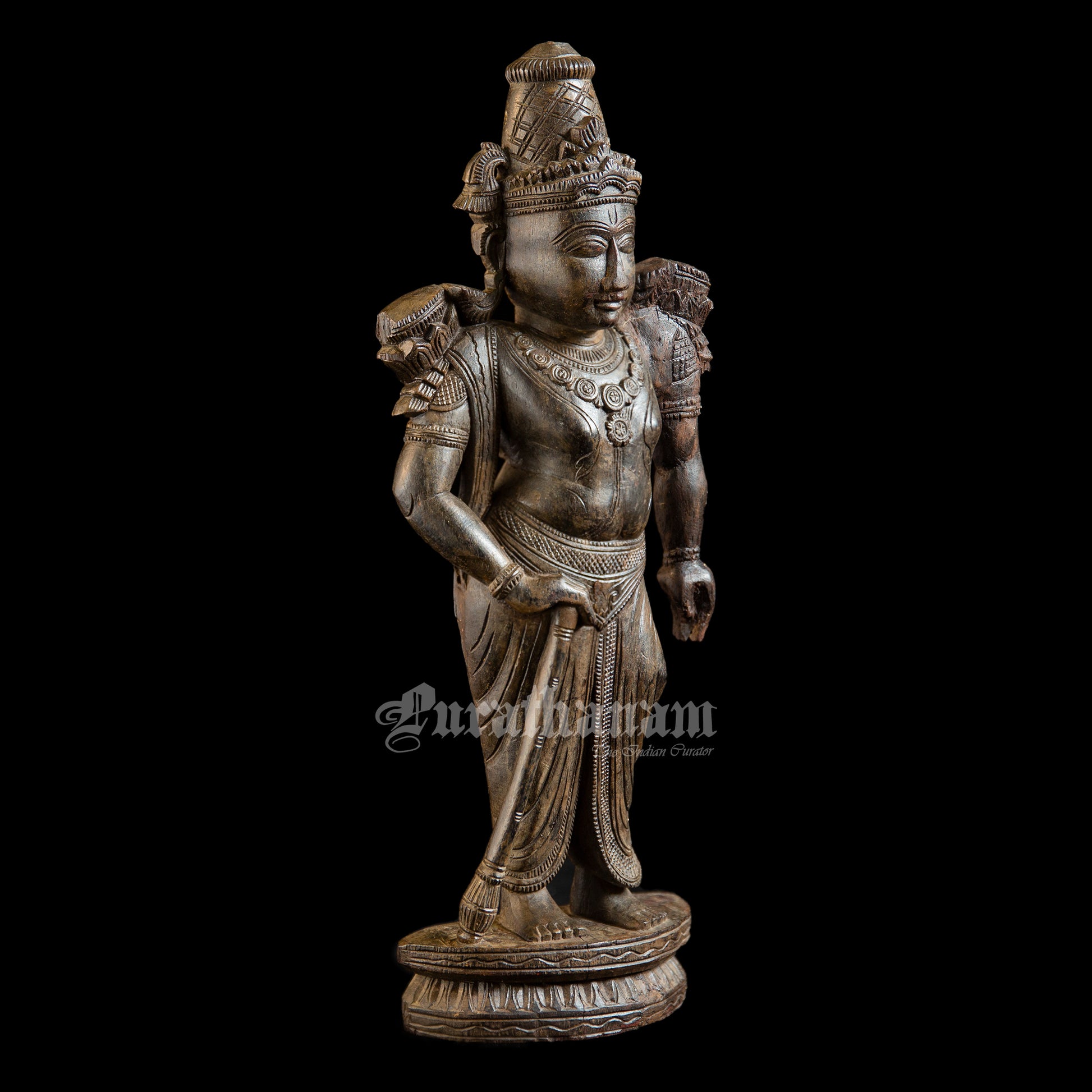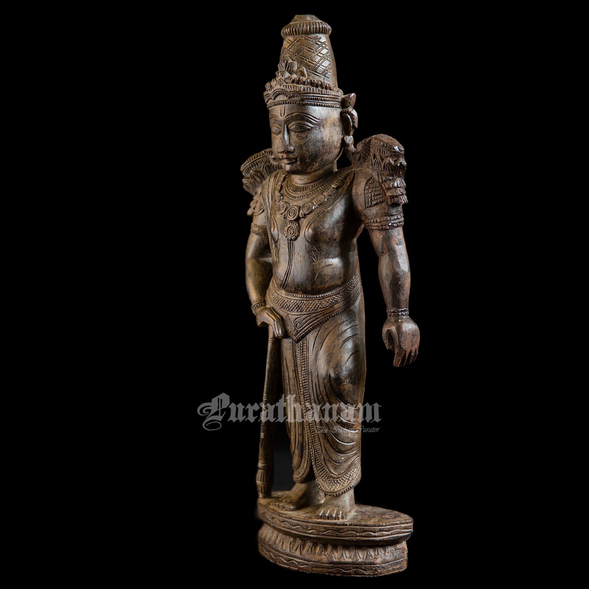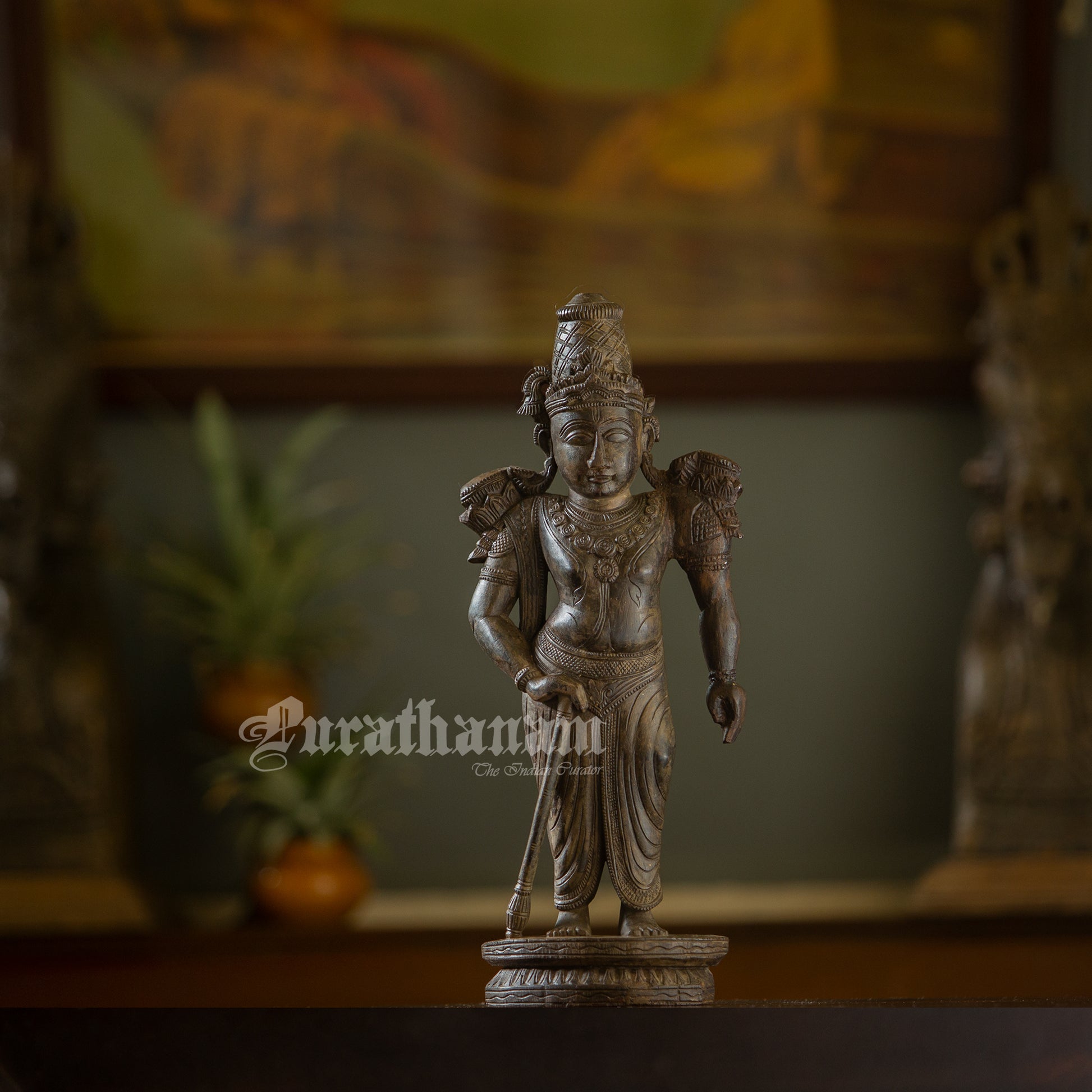 Presenting a handcrafted wooden sculpture of Ram. It is meticulously carved from a single block of red sanders wood with exquisite craftsmanship.