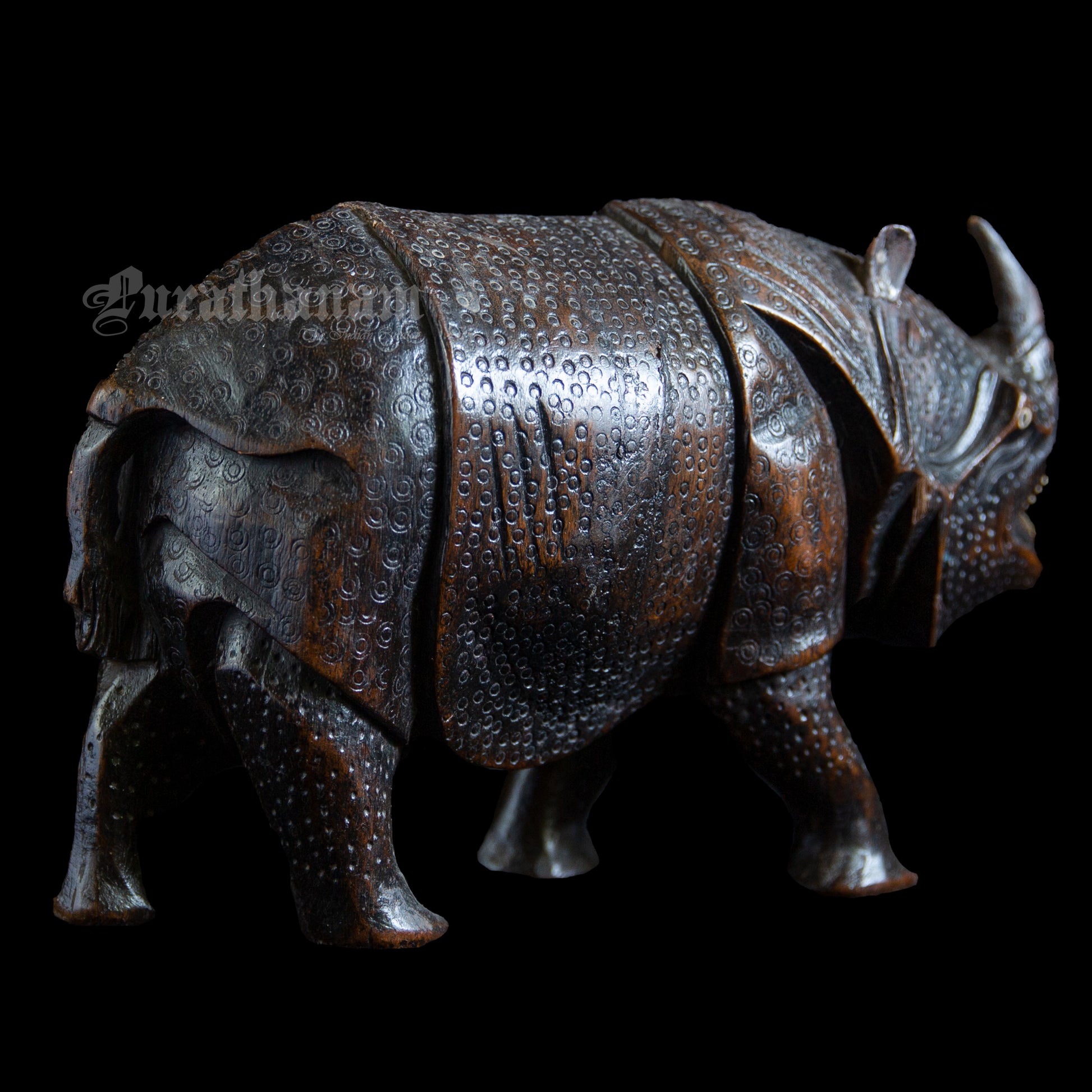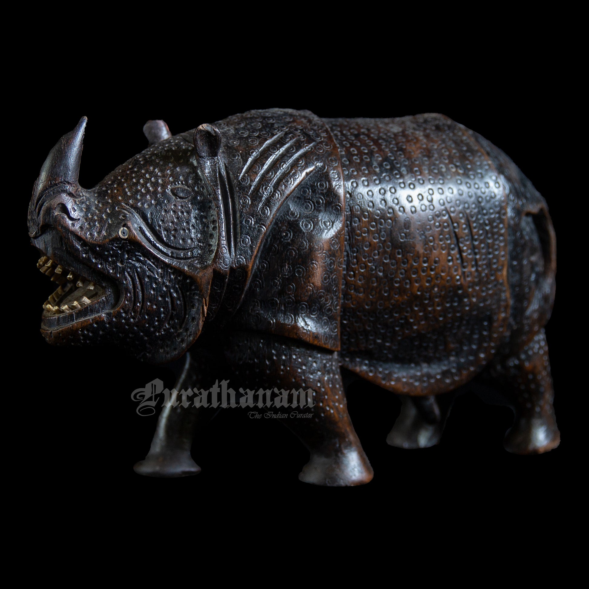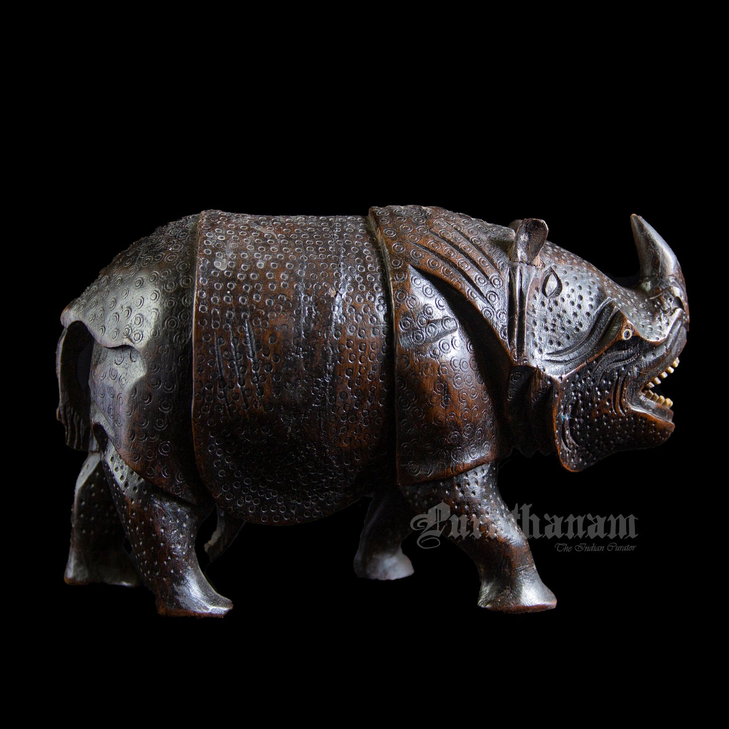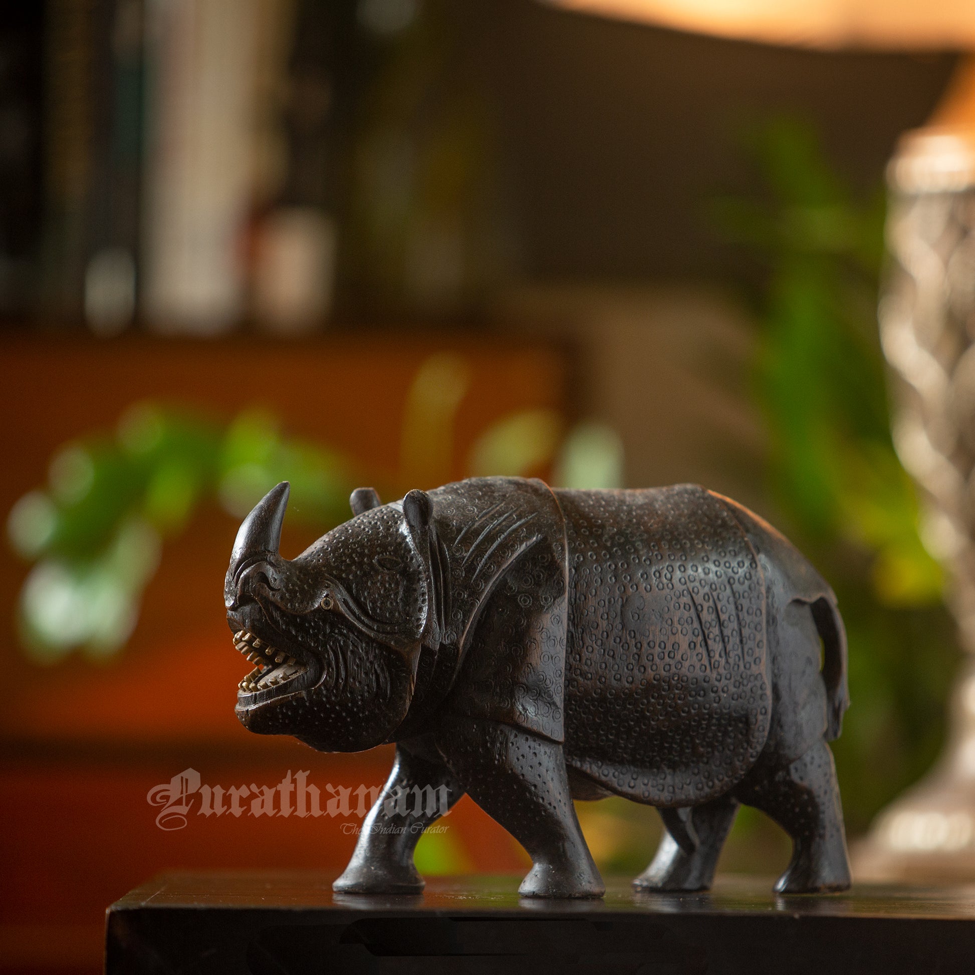 Here we have a majestic looking Rhinoceros handmade from a single block of Teakwood by an artisan from Assam.