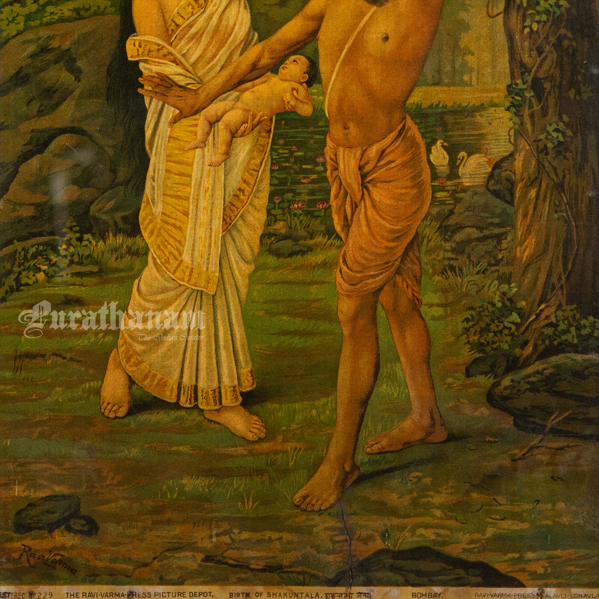 This is an oleograph print of “Shakuntala Janam” printed in Ravi Varma press, Malavli in 1898. This particular painting “Shakuntala Janam” holds a special place in the history amongst all the other Ravi Varma paintings.