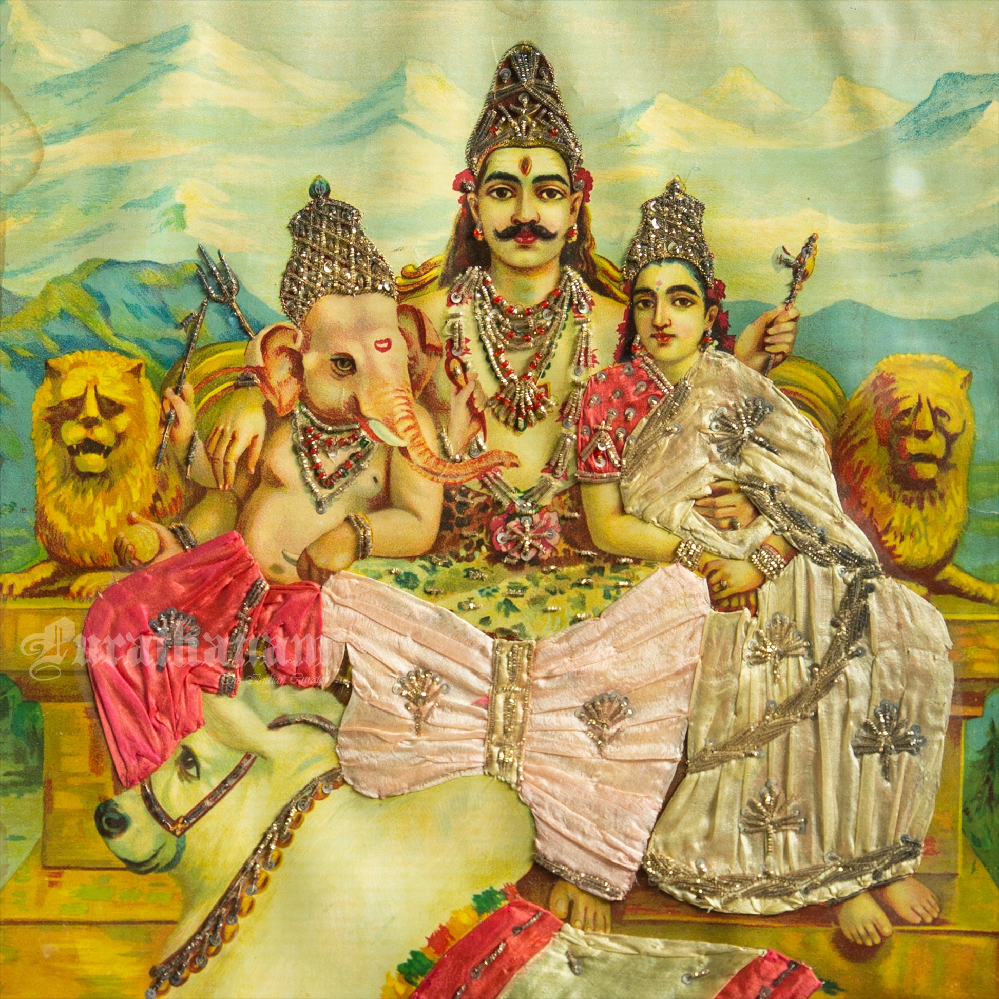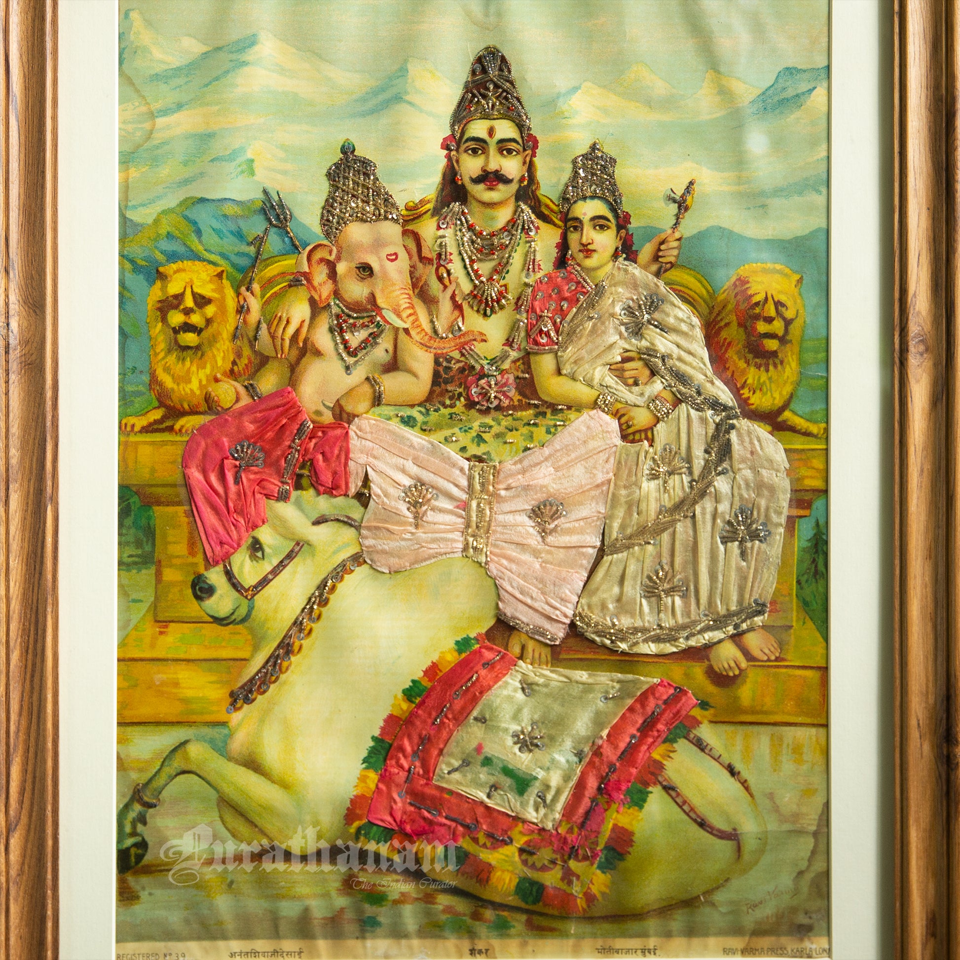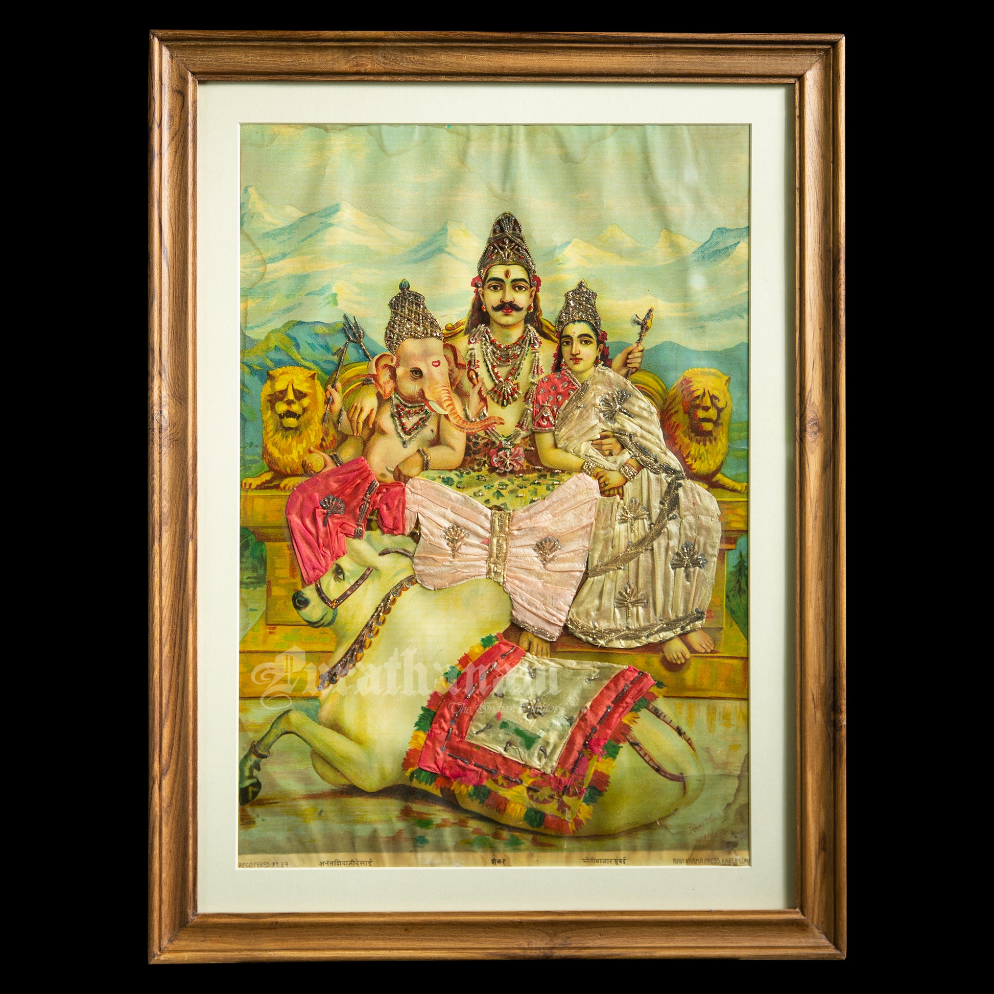 This is an oleograph print from 1920s of Shankar by Ravi Varma an Indian who achieved recognition for his depiction of scenes from the epics of the Mahabharata and Ramayana.