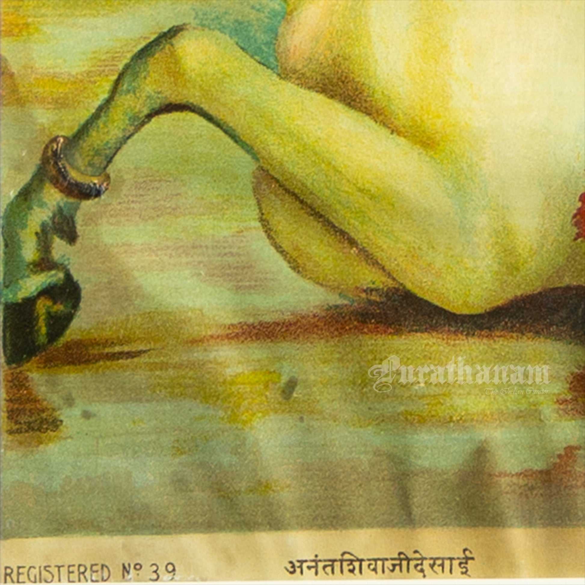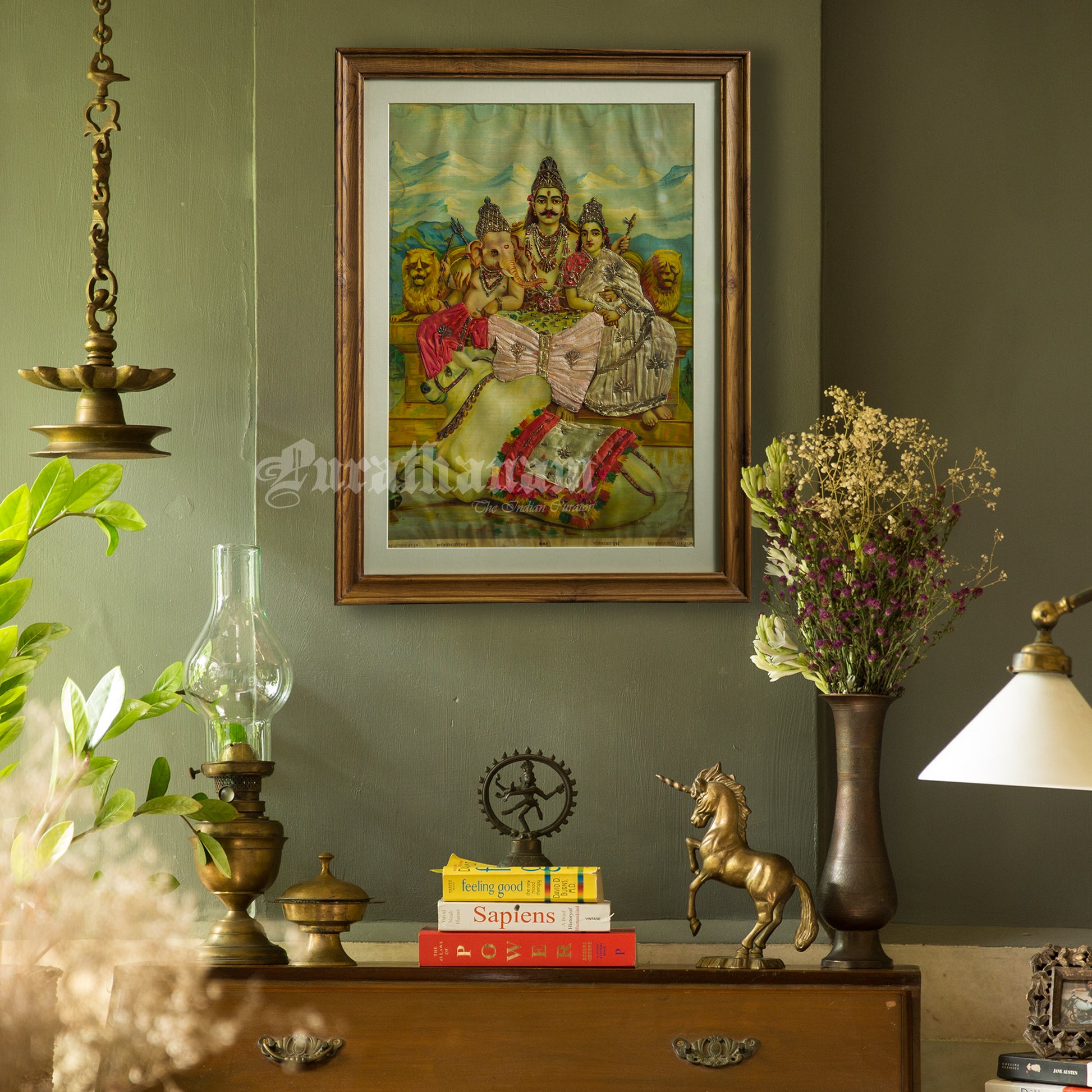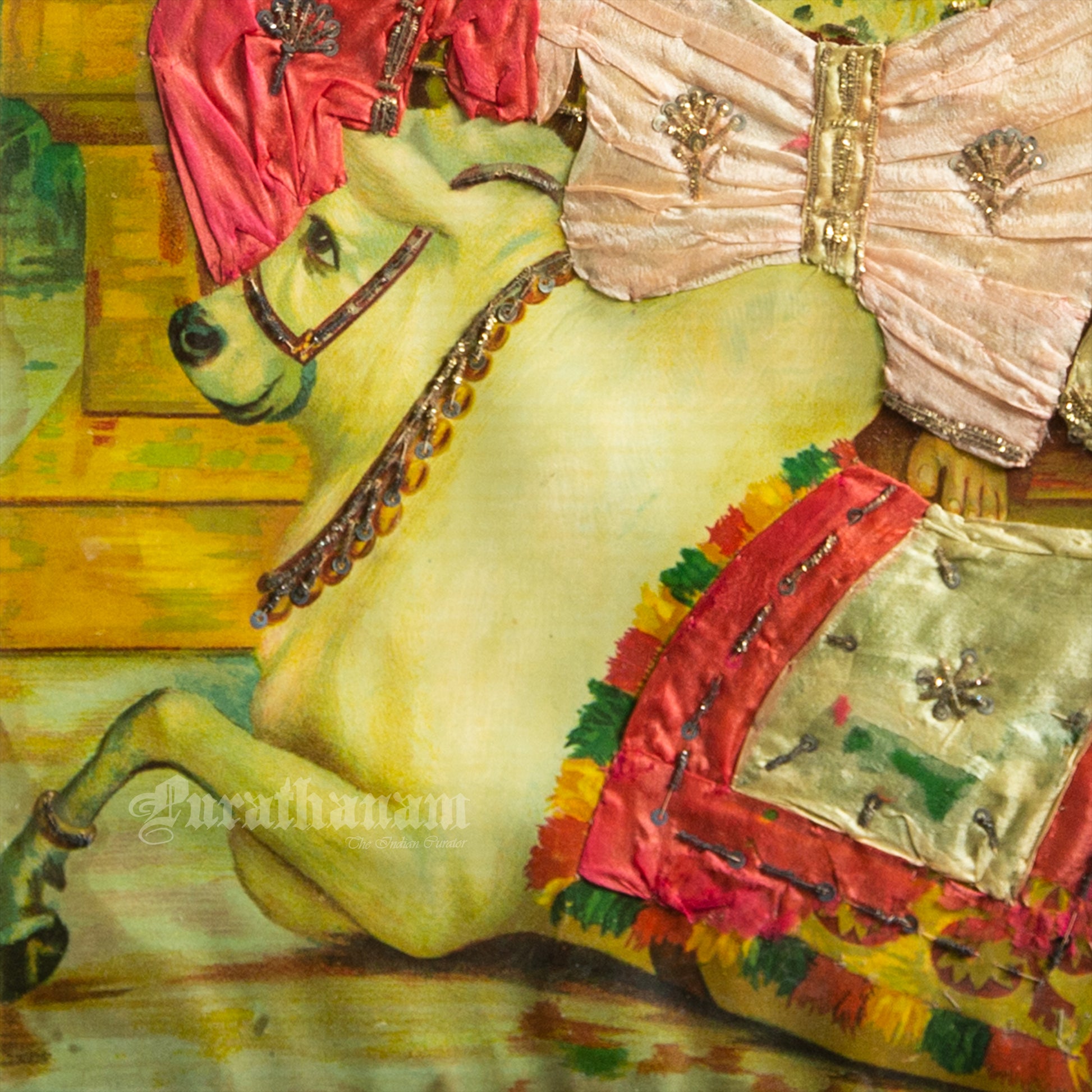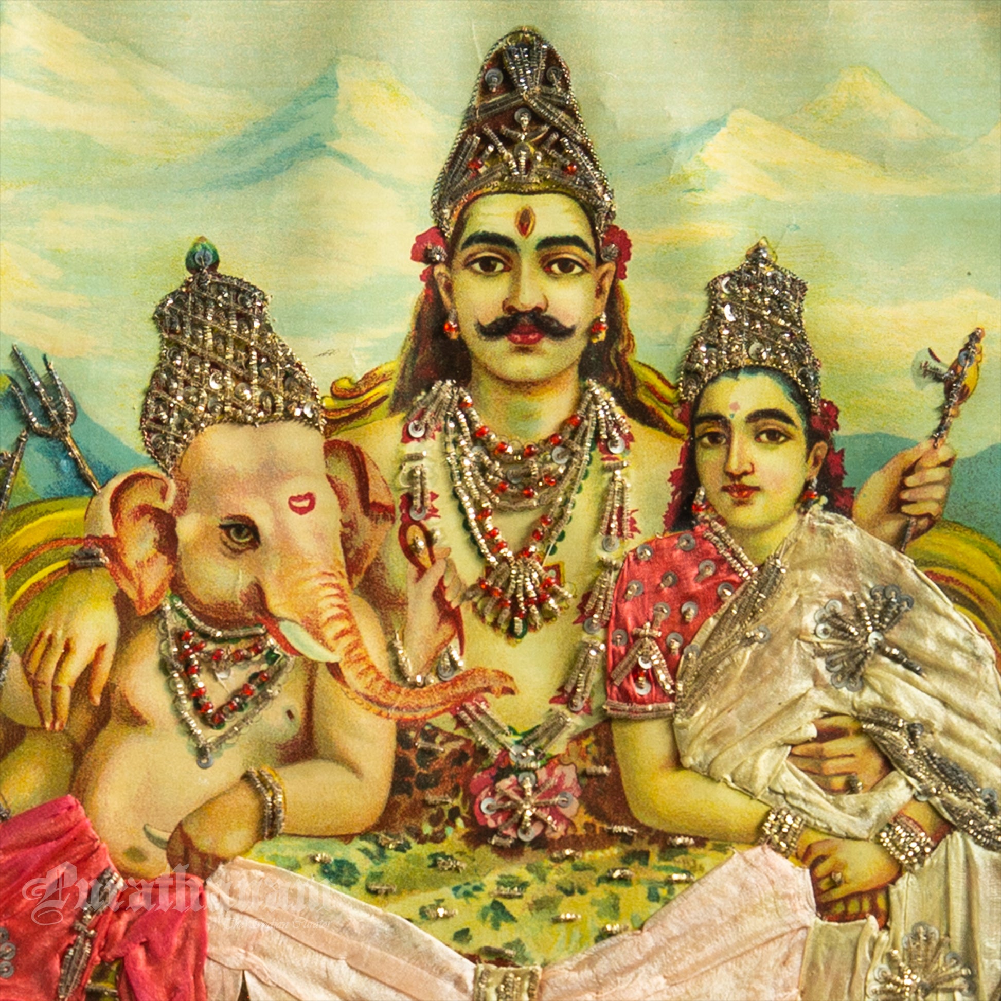 This is an oleograph print from 1920s of Shankar by Ravi Varma an Indian who achieved recognition for his depiction of scenes from the epics of the Mahabharata and Ramayana.