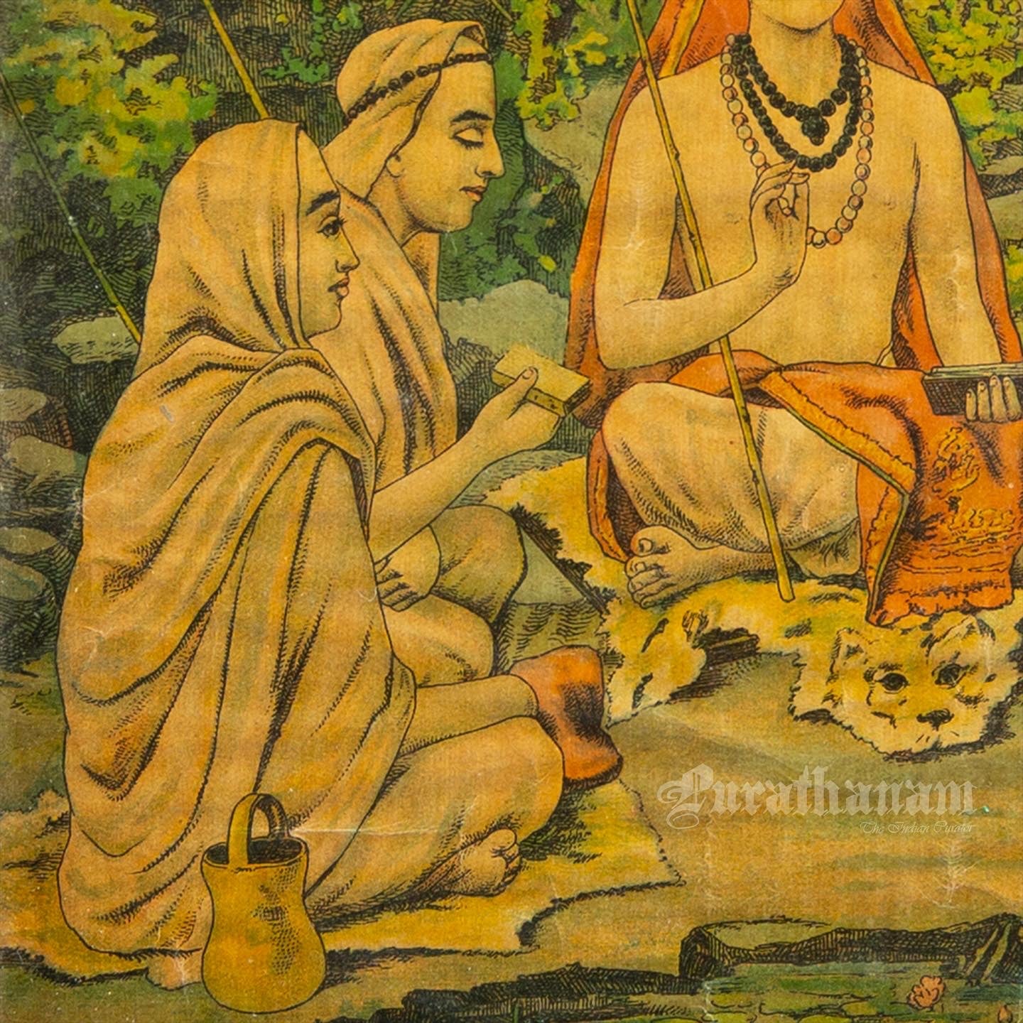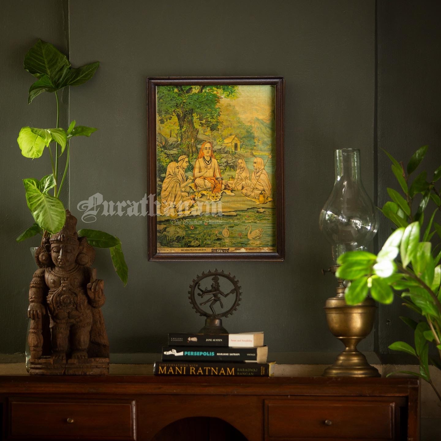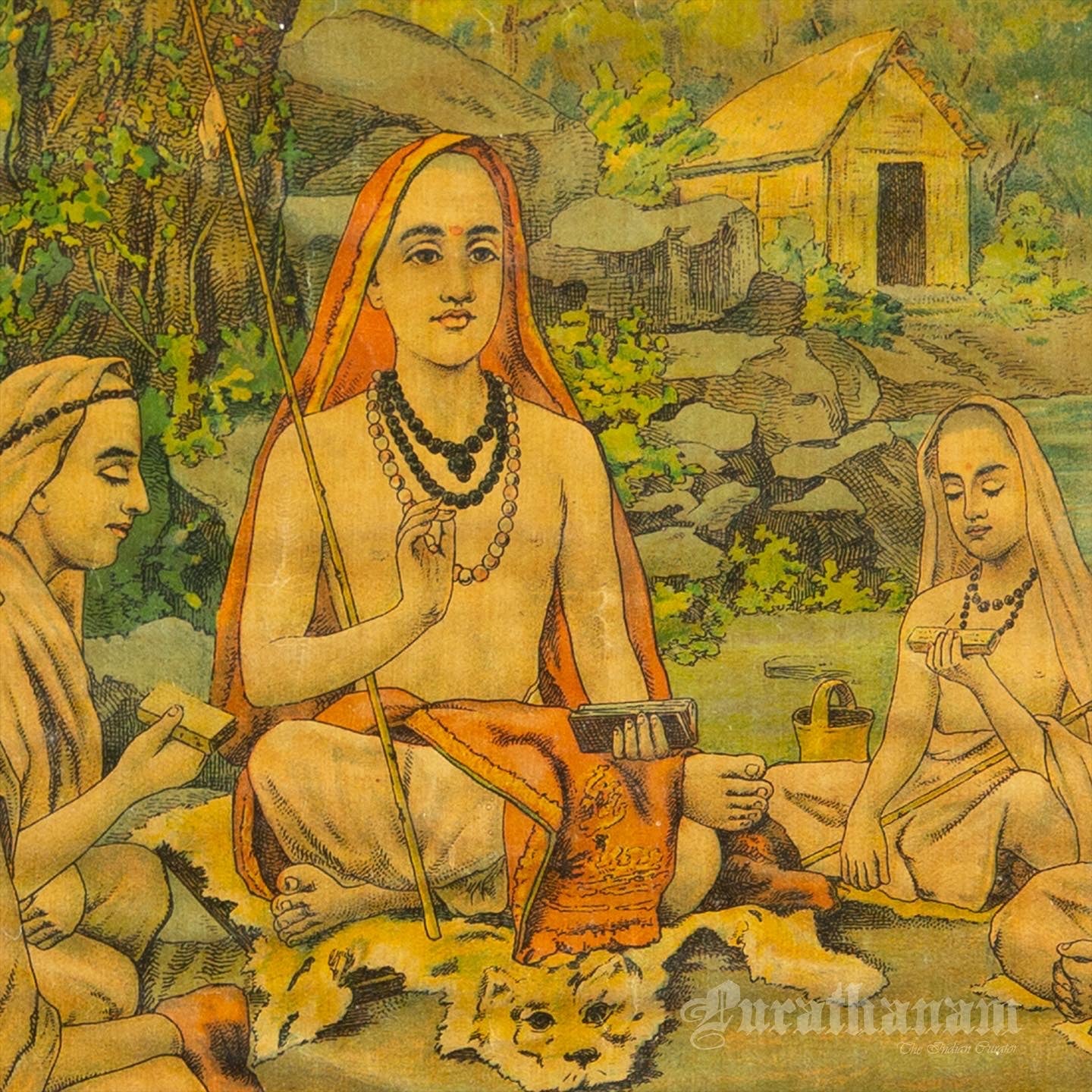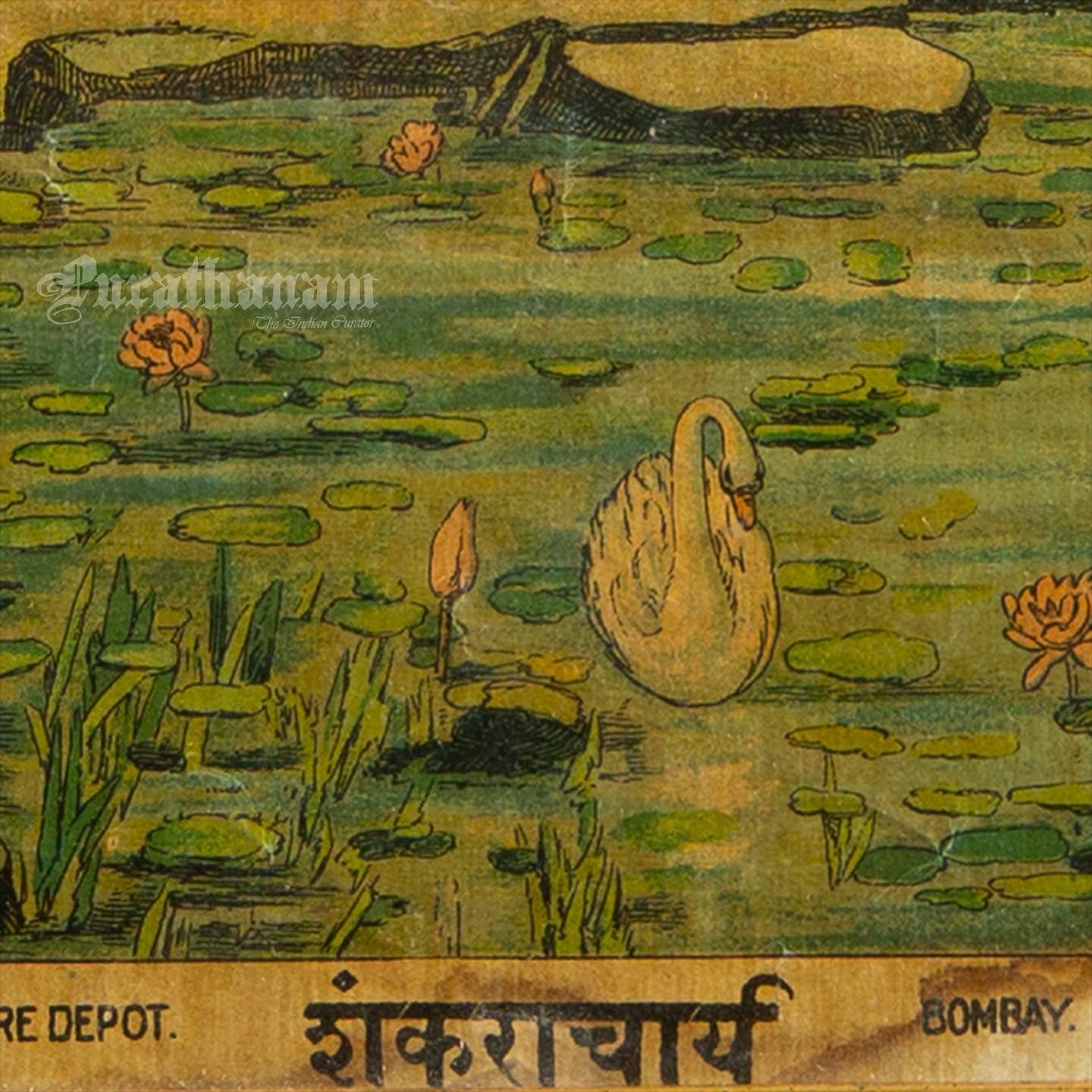 This is an oleograph print from 1920s of Shankarachari by Ravi Varma an Indian who achieved recognition for his depiction of scenes from the epics of the Mahabharata and Ramayana.