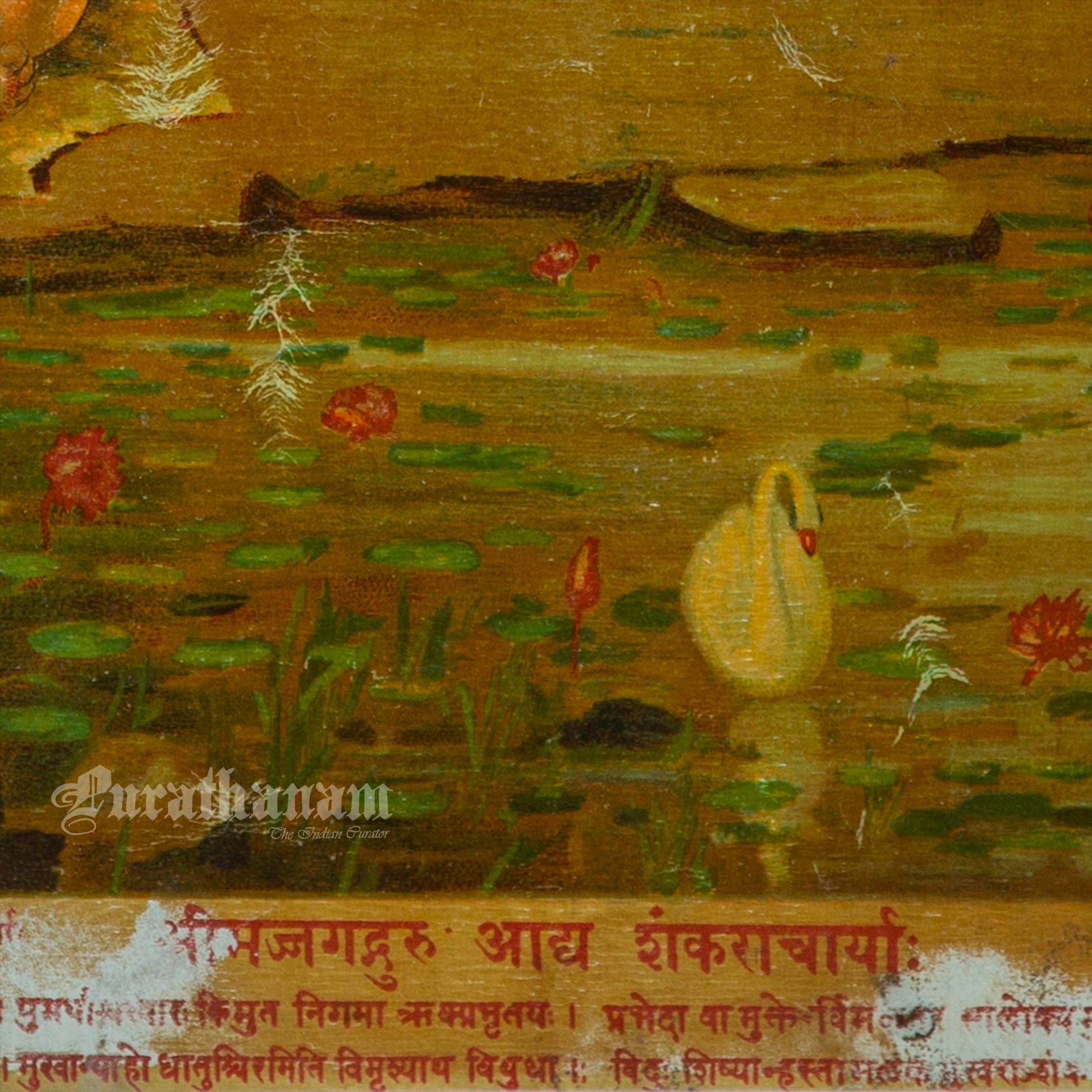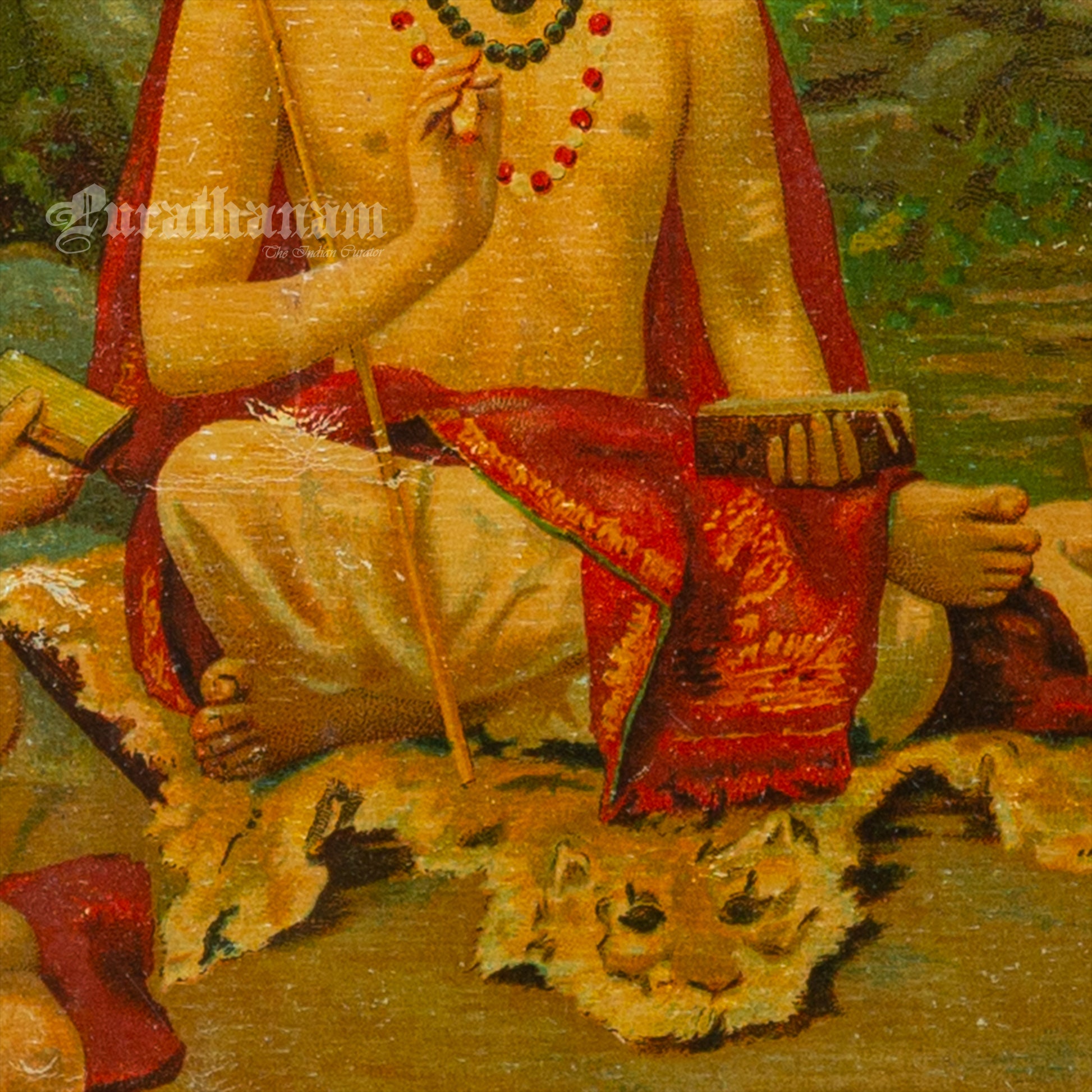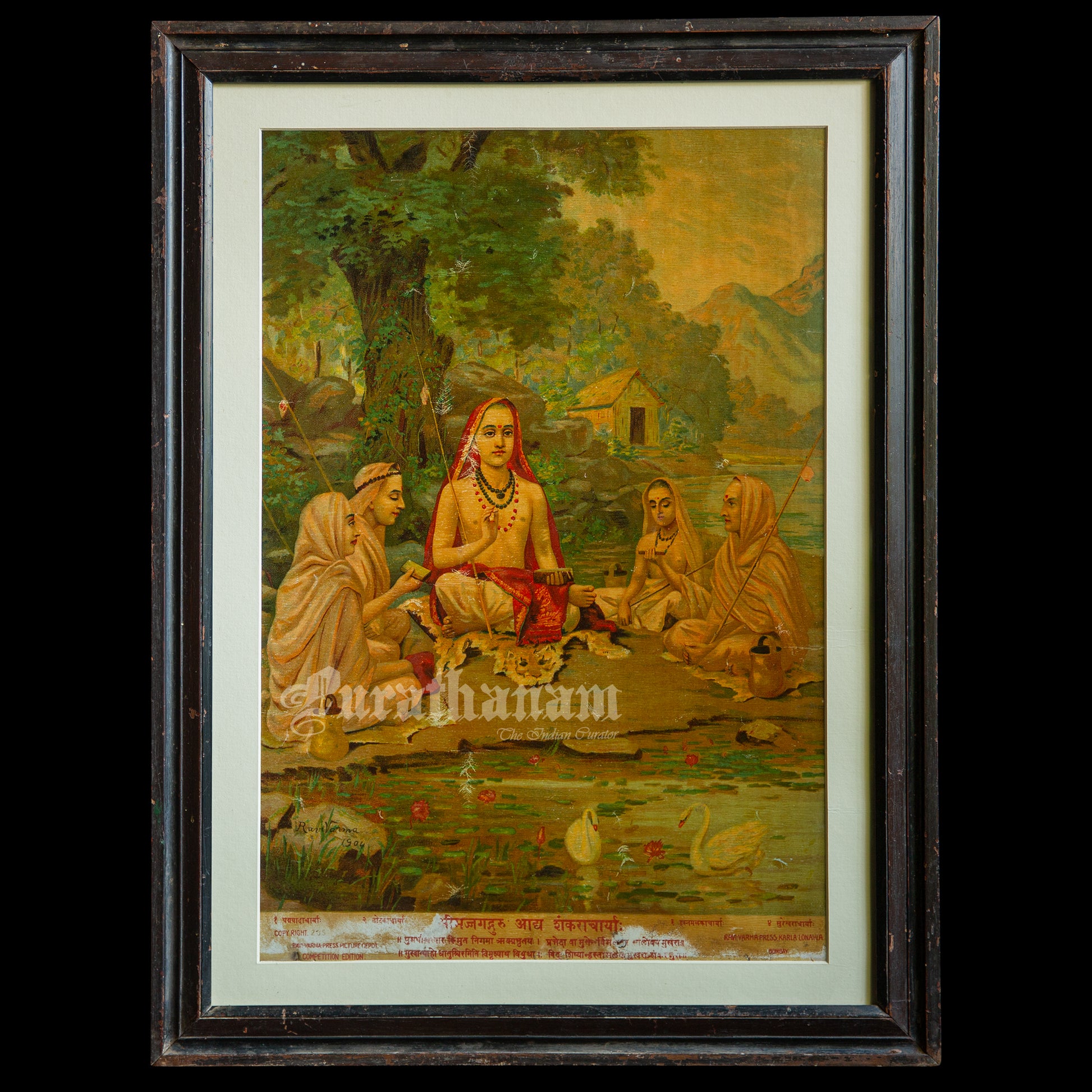 This is an oleograph print from 1920s of Shankarachariyar by Ravi Varma an Indian who achieved recognition for his depiction of scenes from the epics of the Mahabharata and Ramayana.