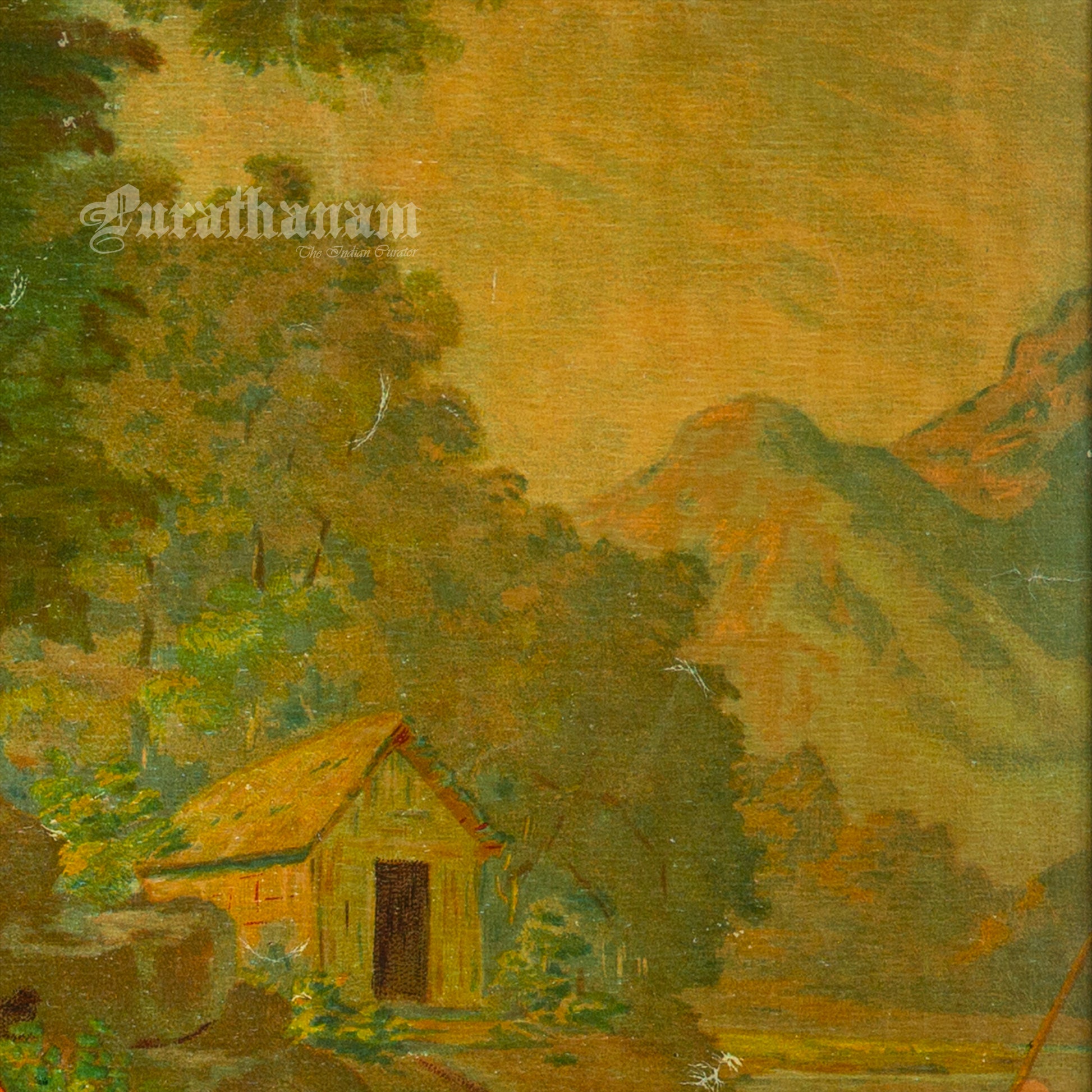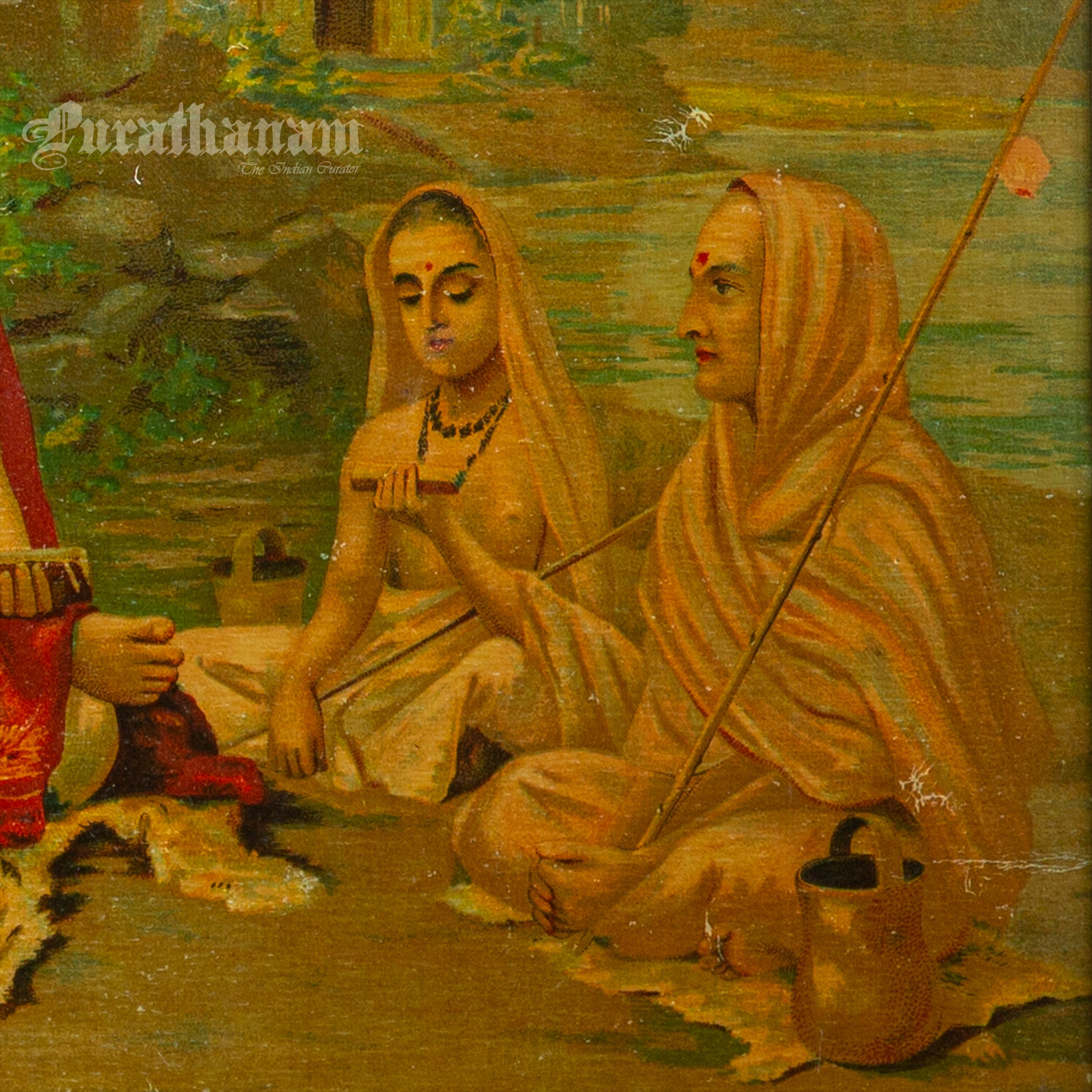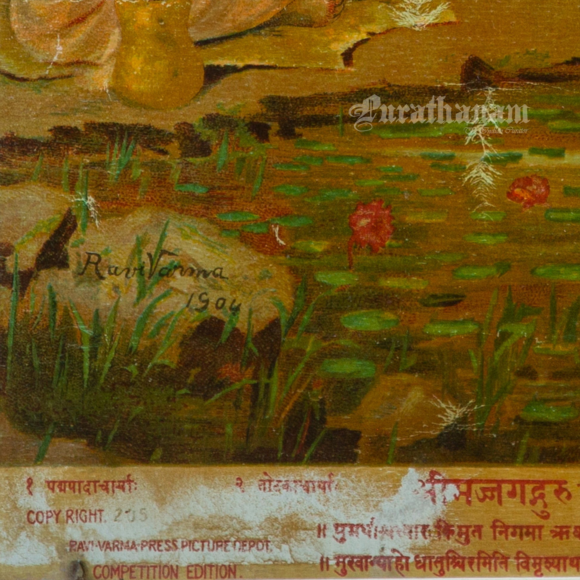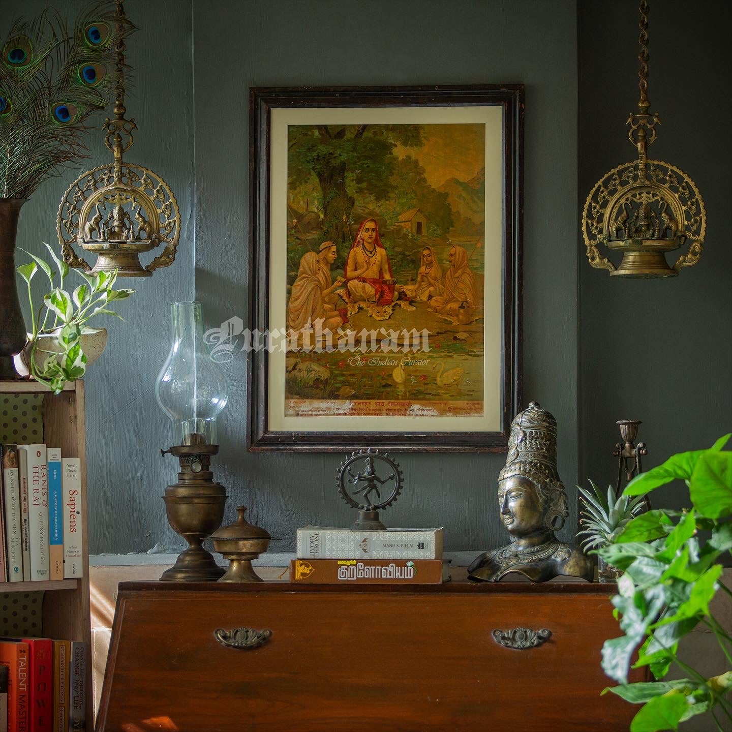 This is an oleograph print from 1920s of Shankarachariyar by Ravi Varma an Indian who achieved recognition for his depiction of scenes from the epics of the Mahabharata and Ramayana.