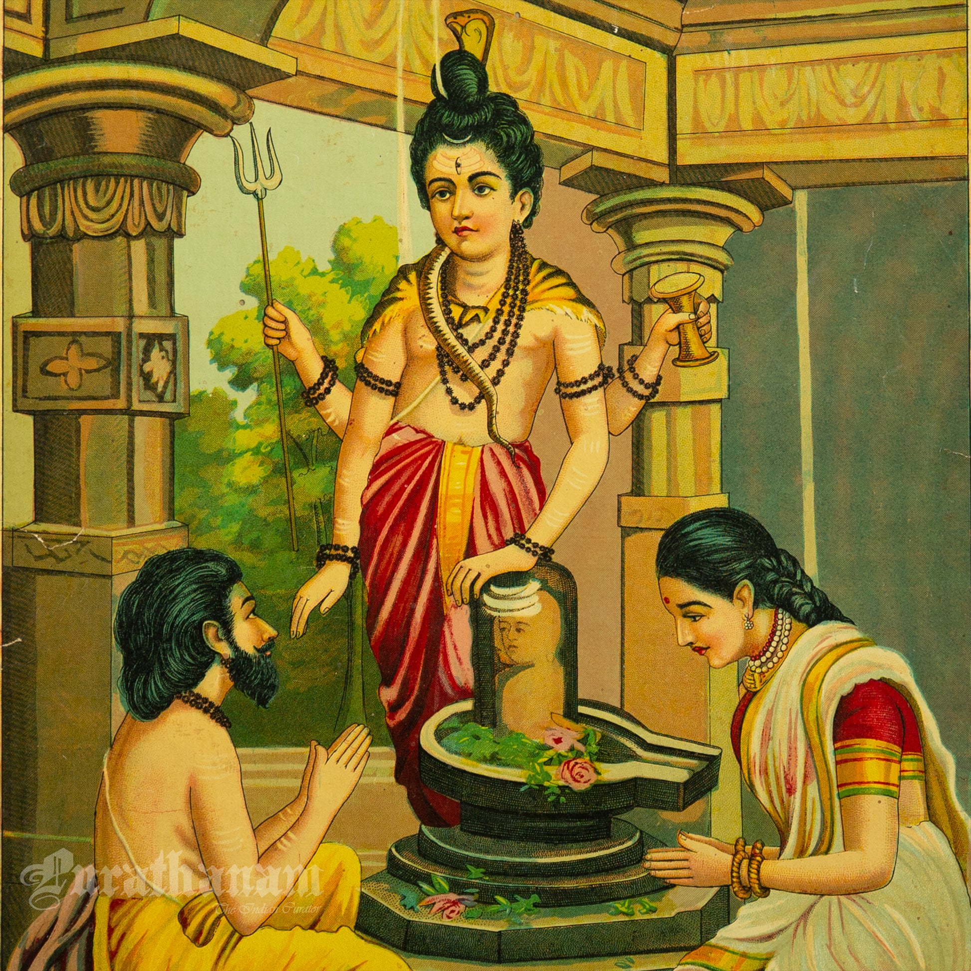 Shiva Upasana by Ravi Varma - Lithograph Print
