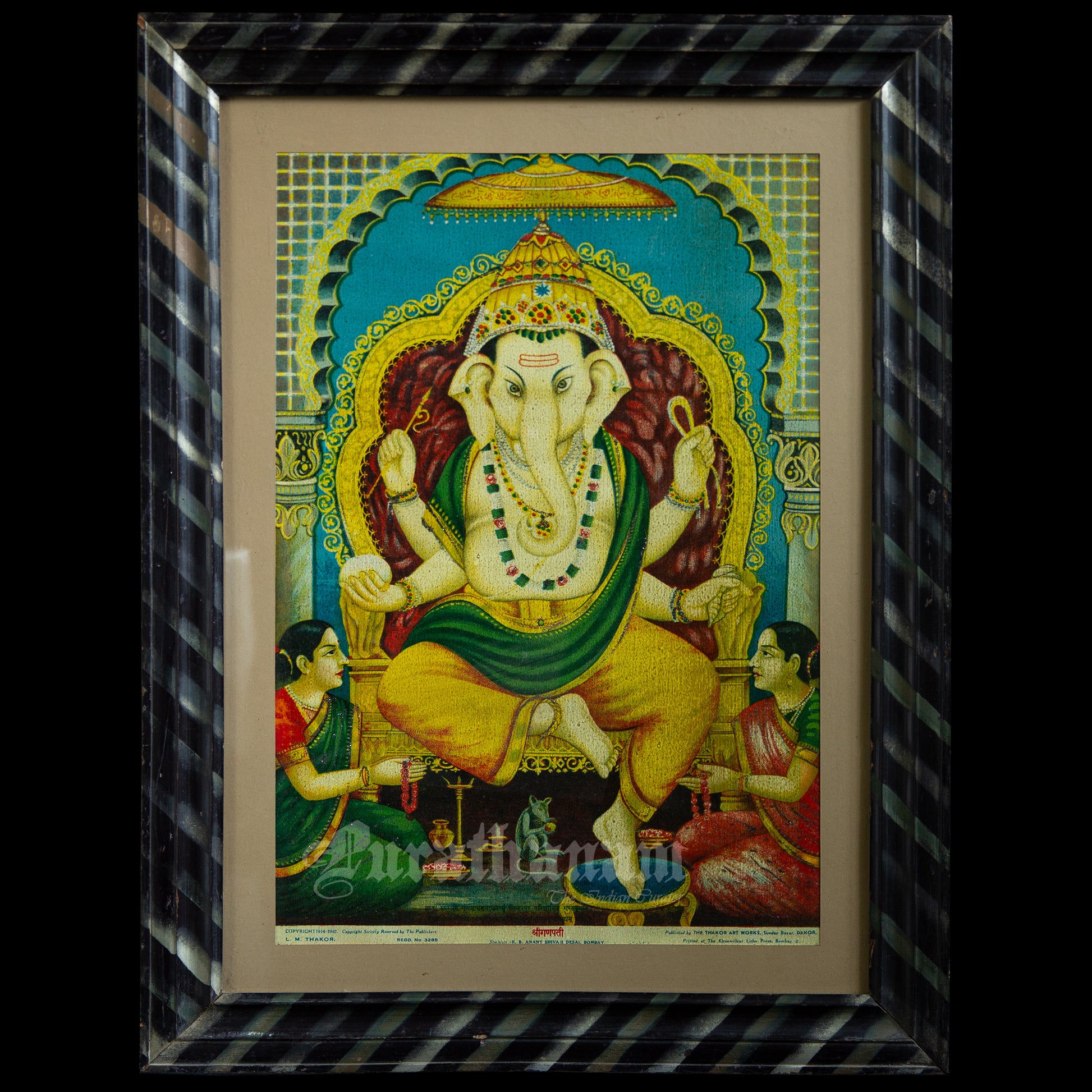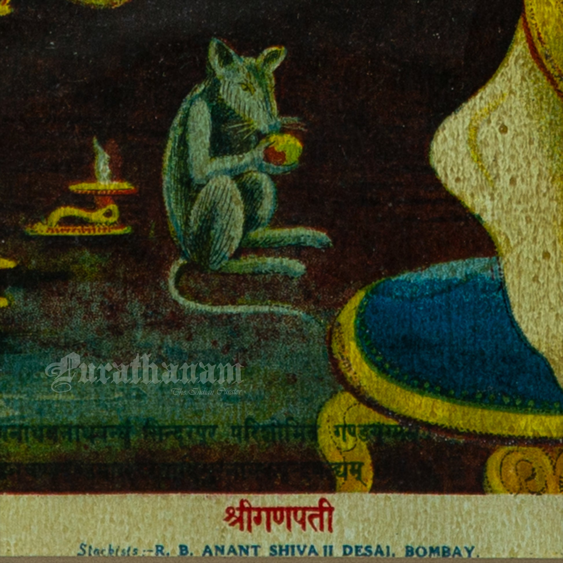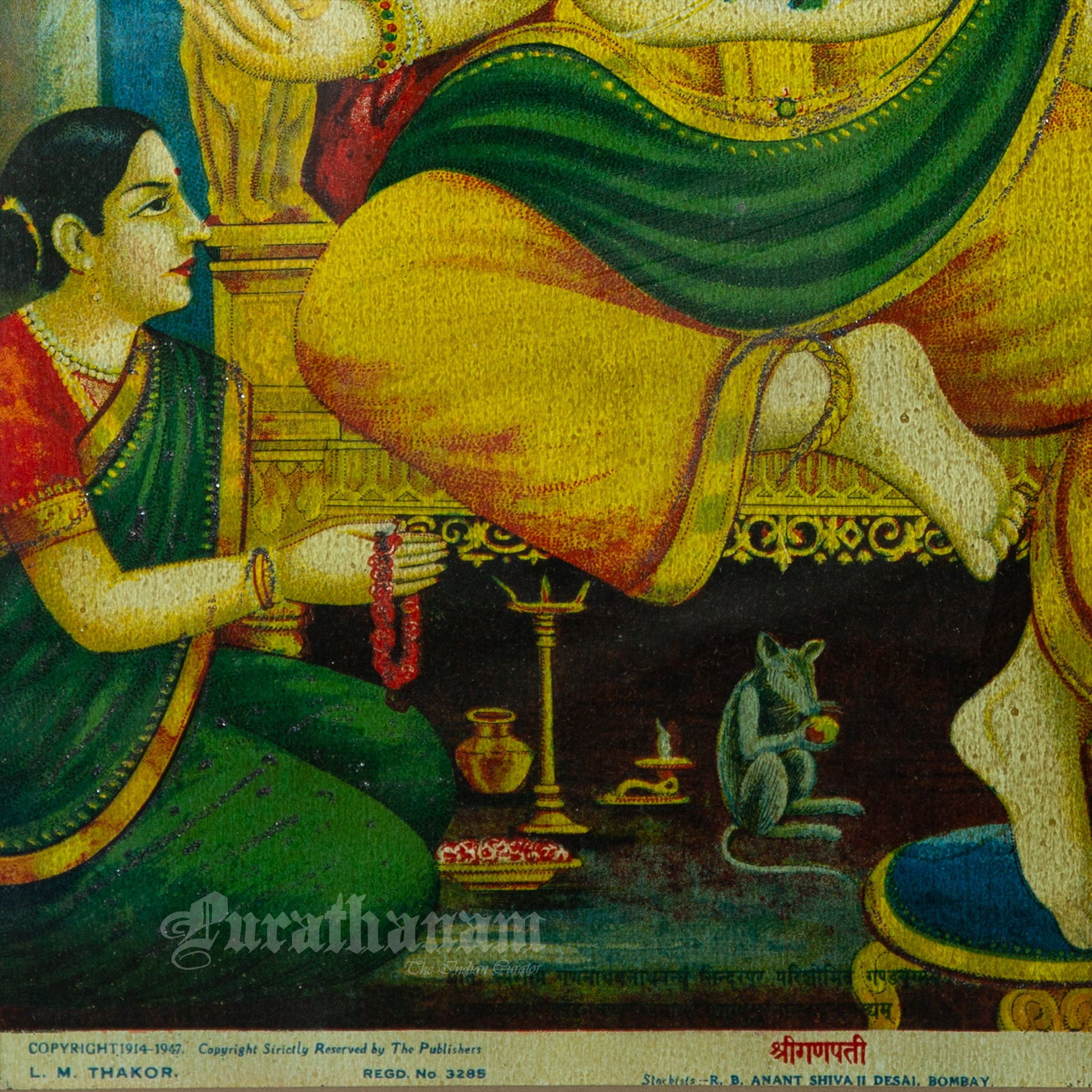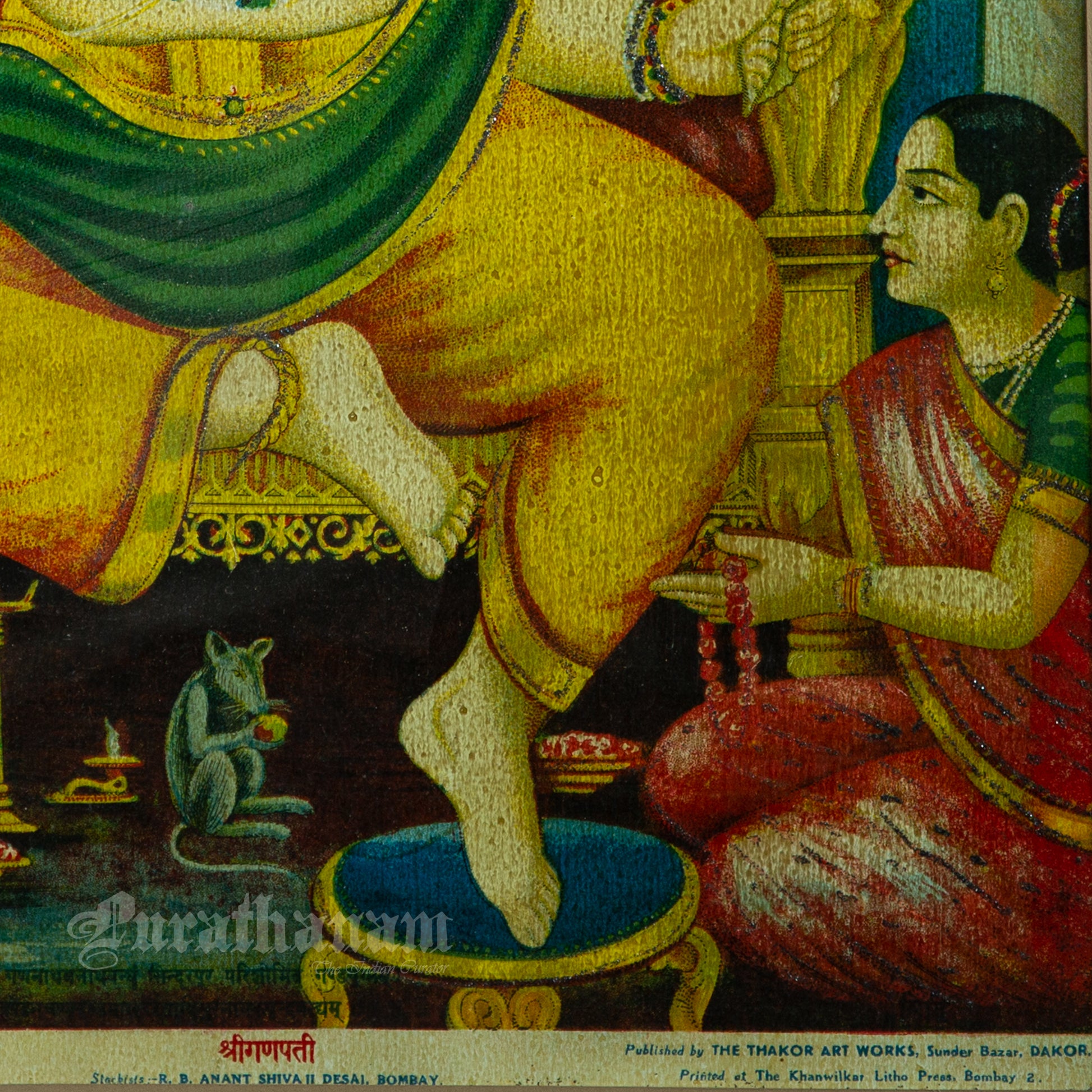 This is an offset print of Shree Ganapati by L. M. Takor, printed in the Kanwilker Litho press, Bombay 2.