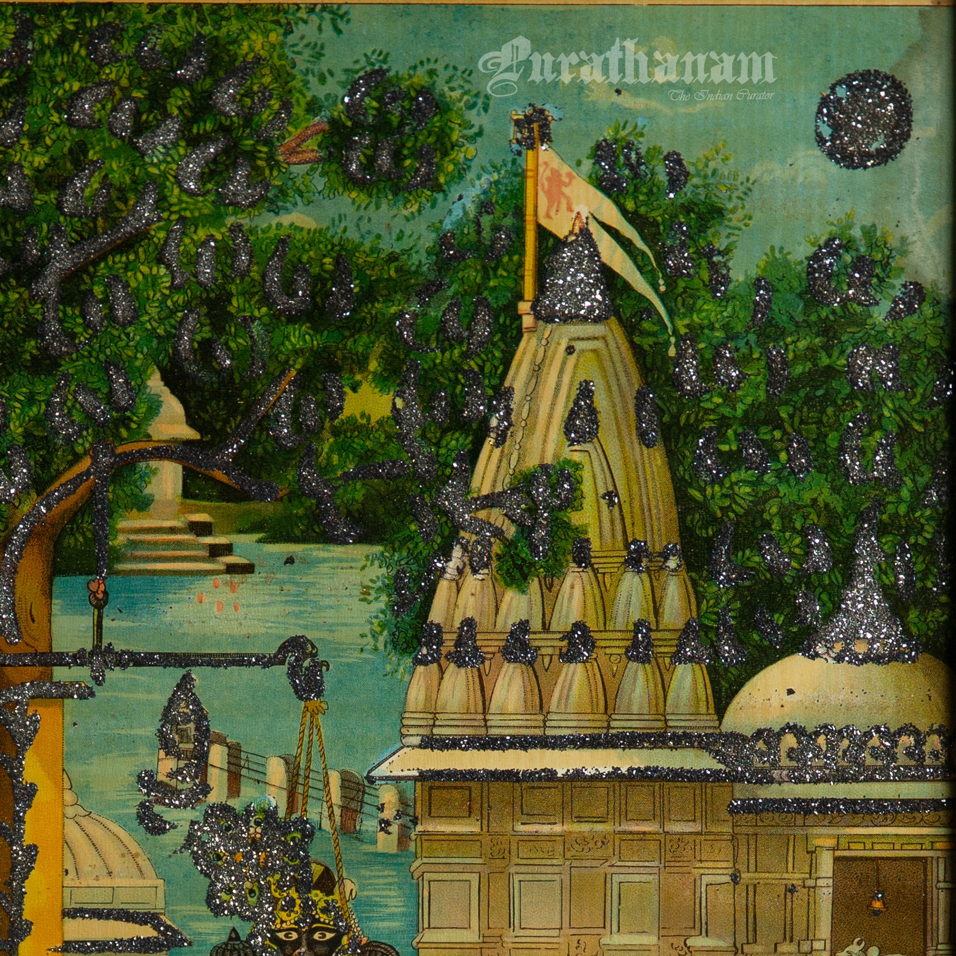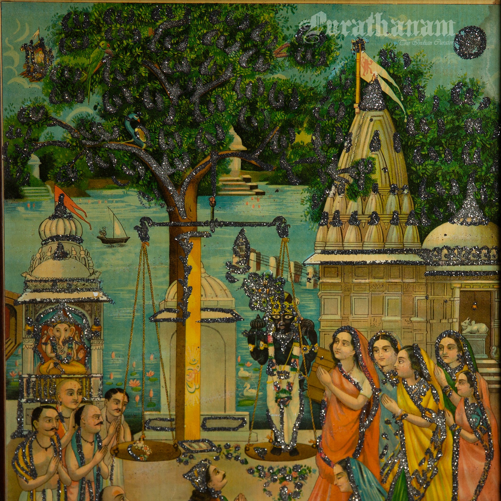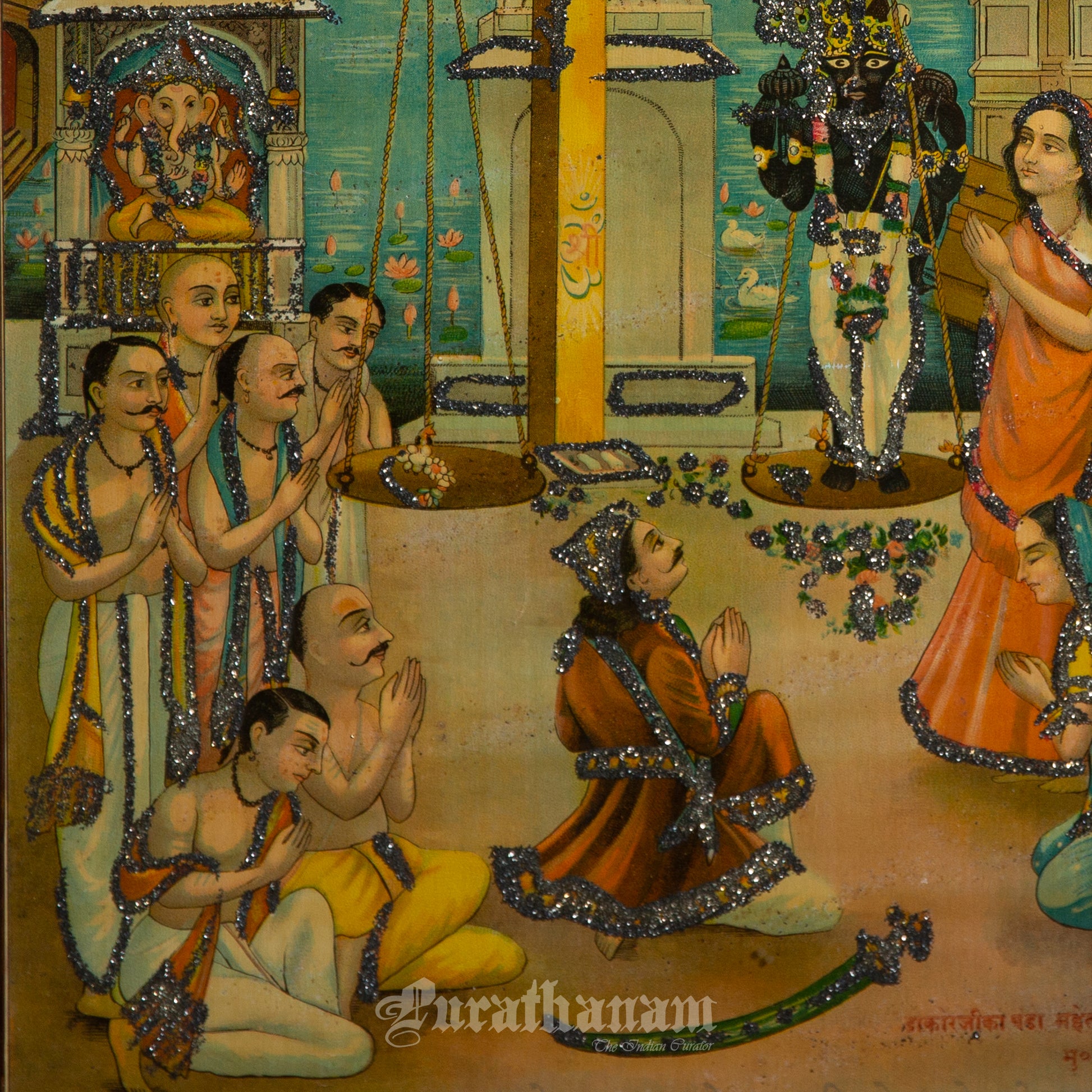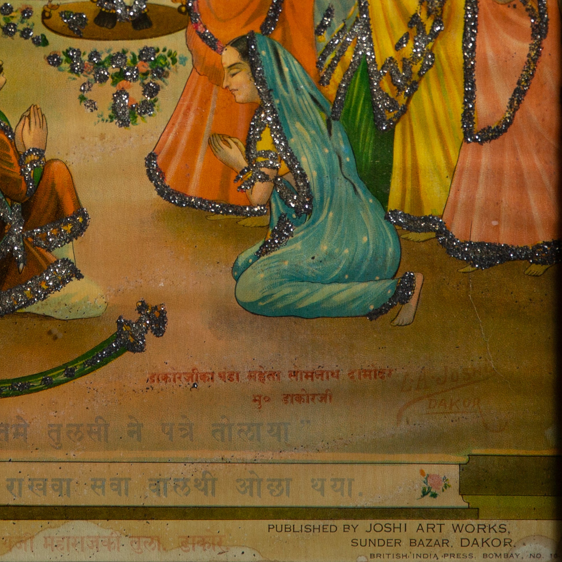 This is an embellished oleograph print from mid 1900s of Shree ranchod ji Maharaj, Dakor by an Indian painter L. A. Joshi.