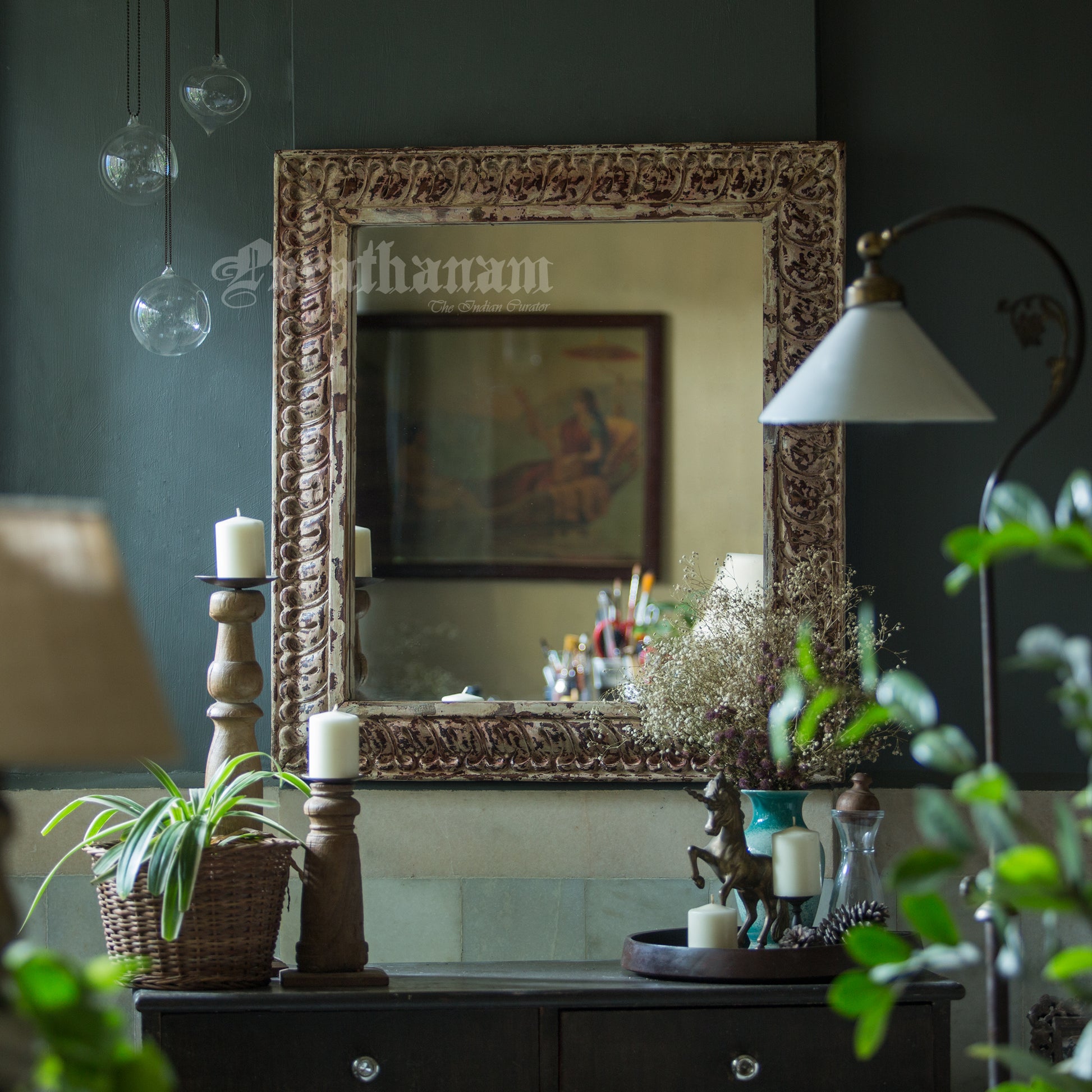 Here is a beautiful Snap Dragon - White Mirror wall hanging made of Walnut Wood.