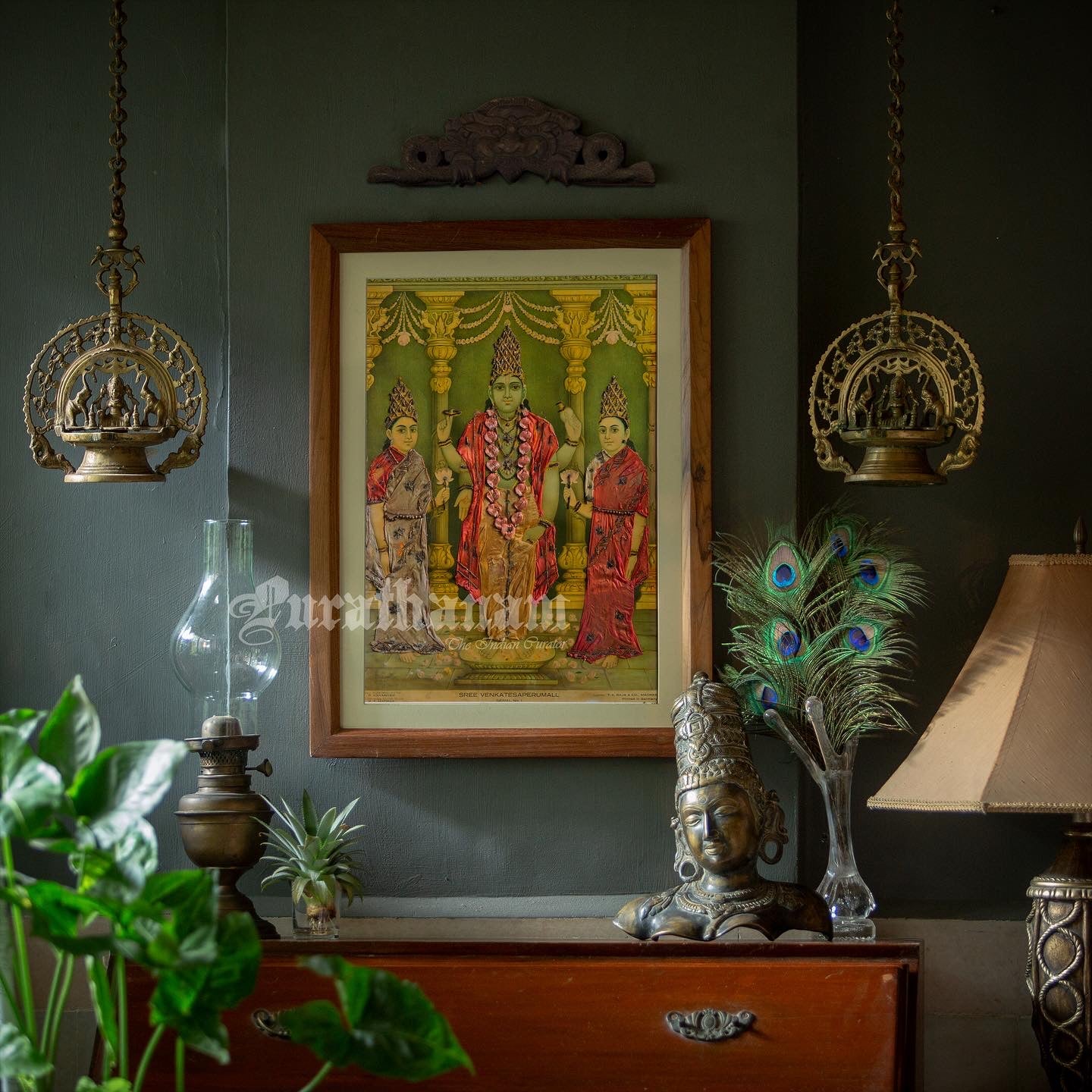 Here we have an Oleograph print of Sree Venkatesaperumall by C. G. Ramanujam printed in Ravi Varma Press.