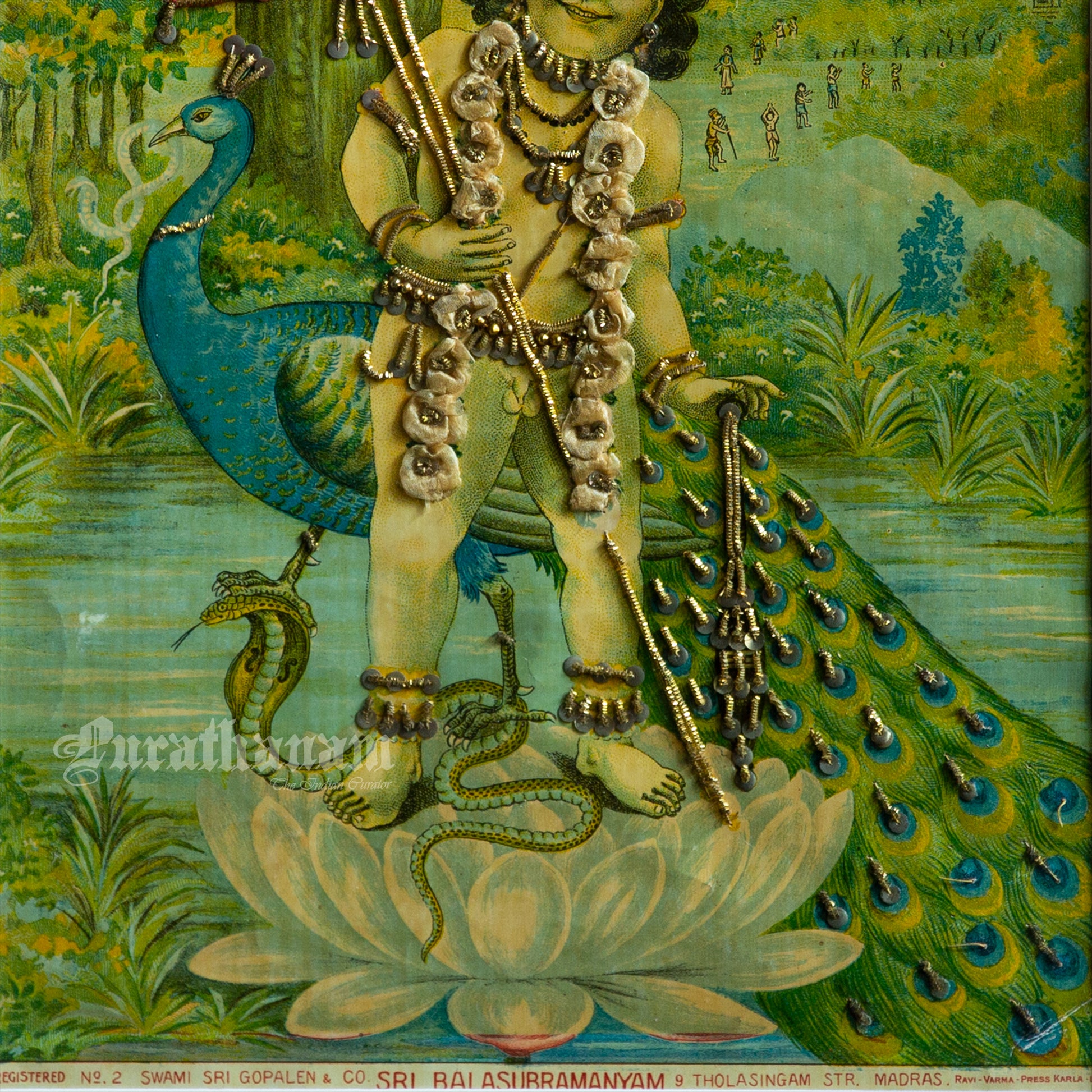 This is an oleograph print from 1940s of Sri Balasubramaniyam from Ravi Varma Press.