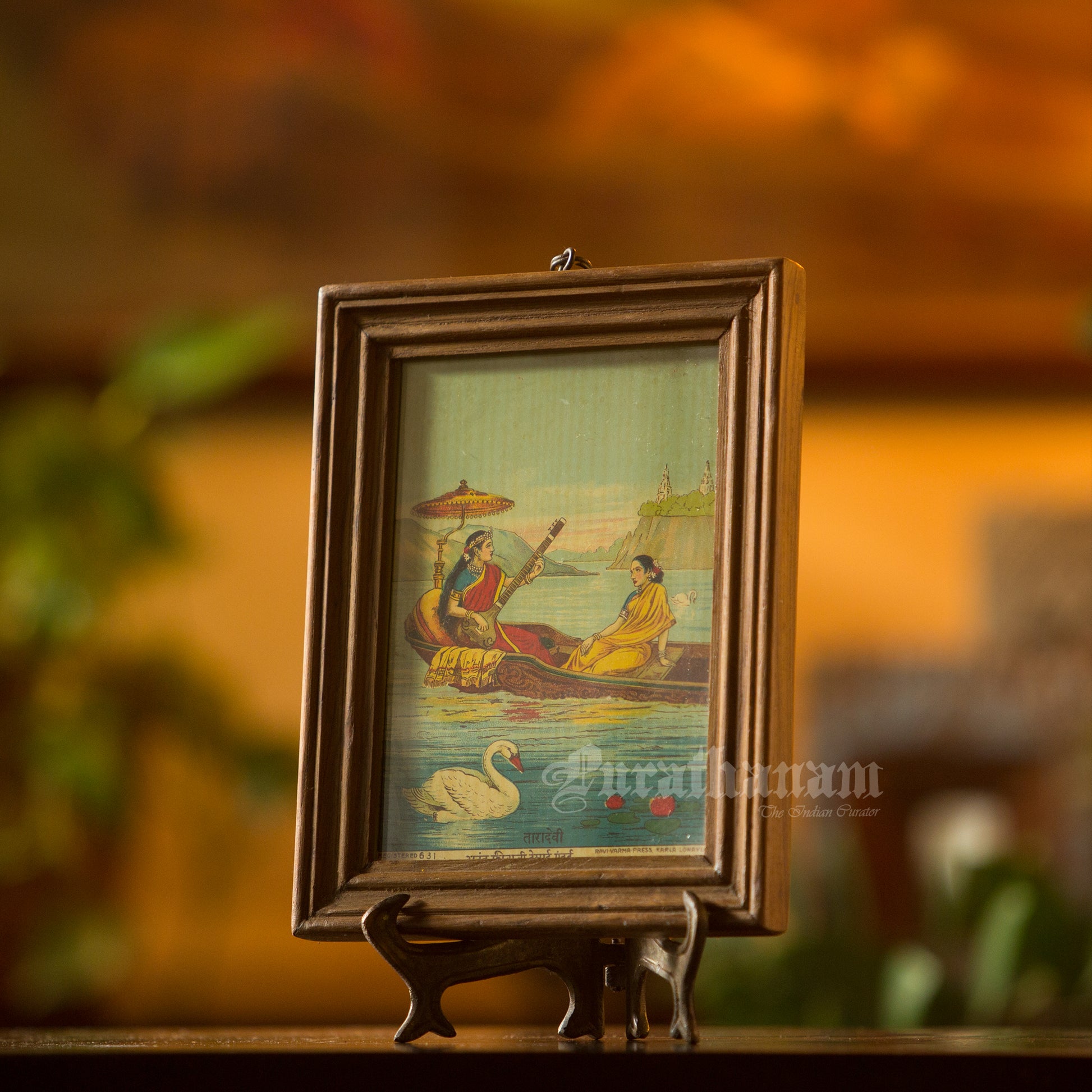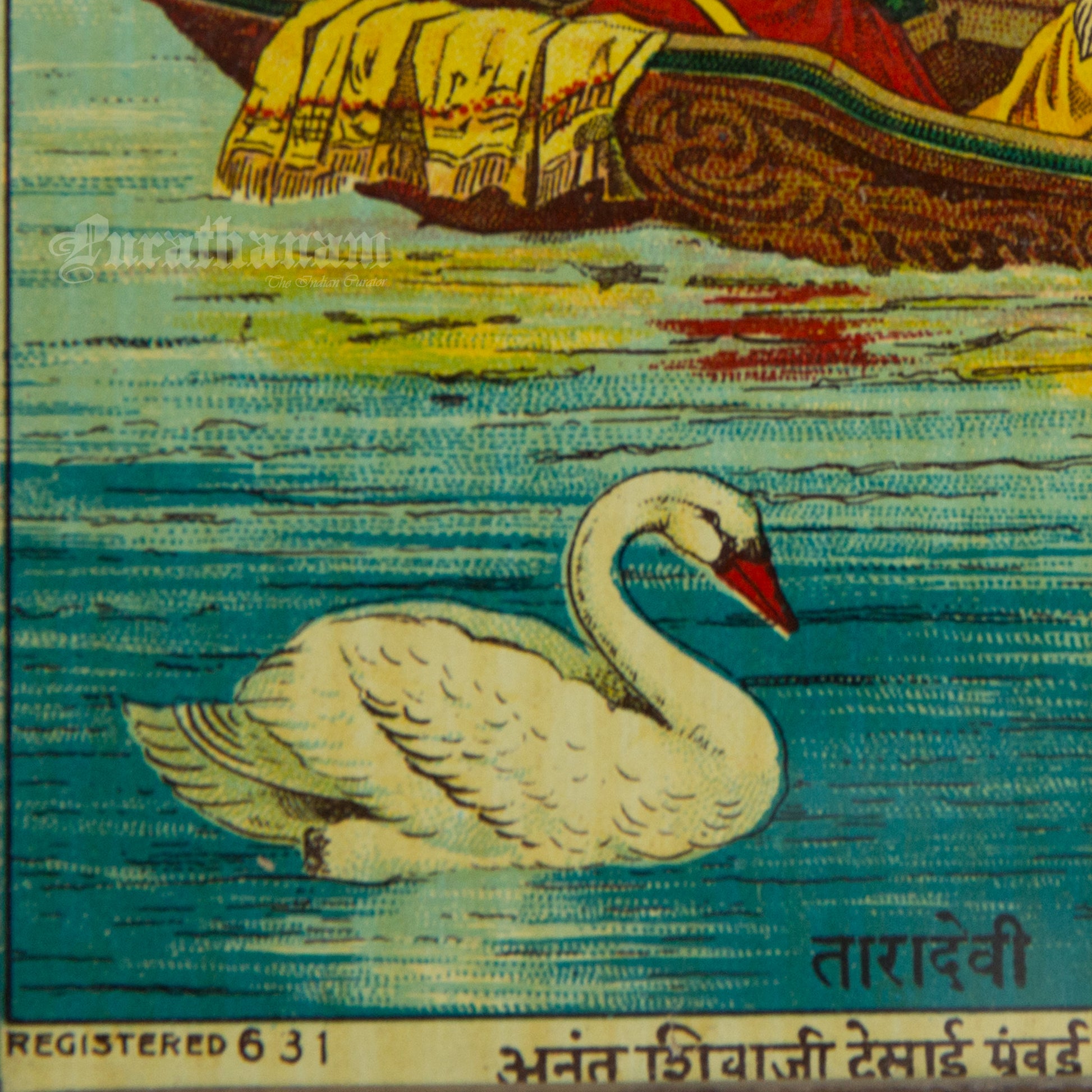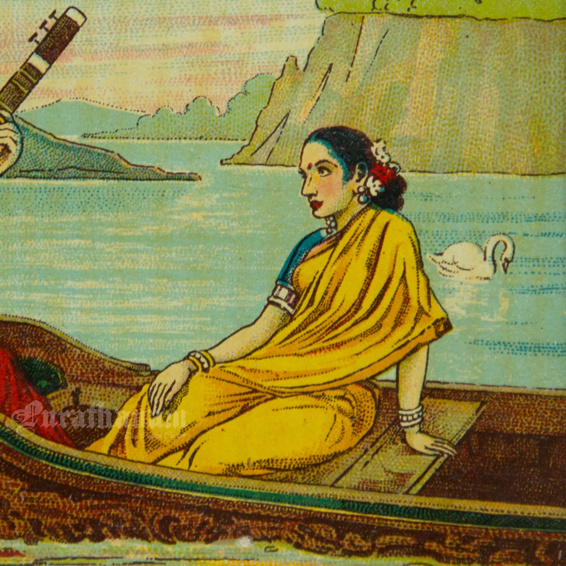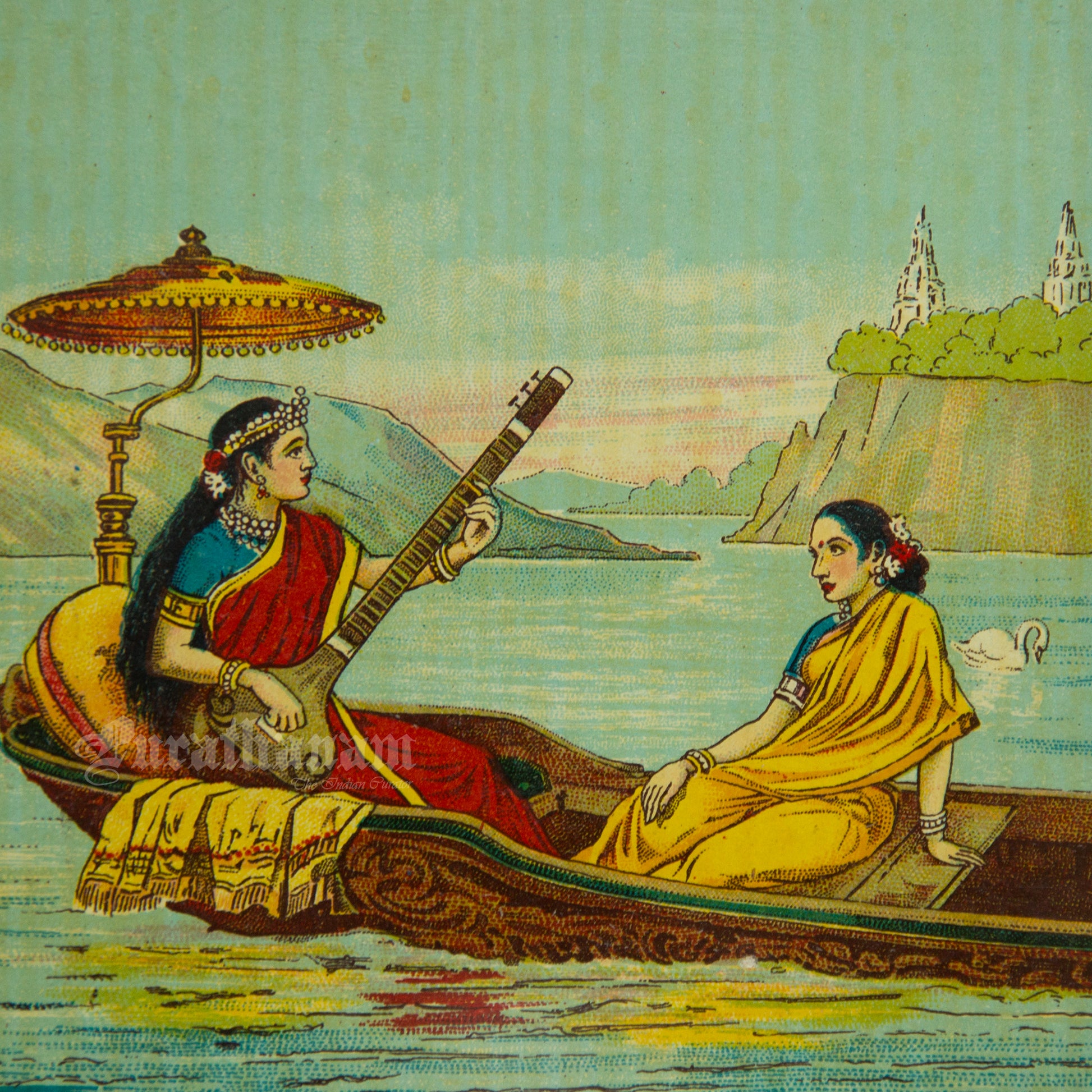 This is an oleograph print from 1890s of Tara Devi by Ravi Varma by Ravi Varma an Indian painter who achieved recognition for his depiction of scenes from the epics of the Mahabharata and Ramayana.
