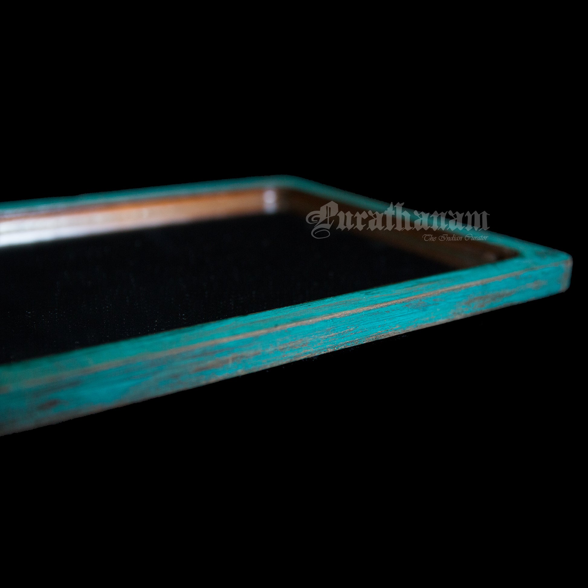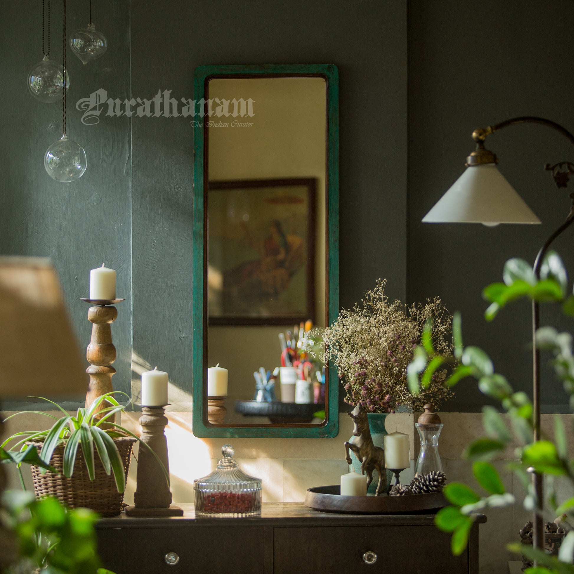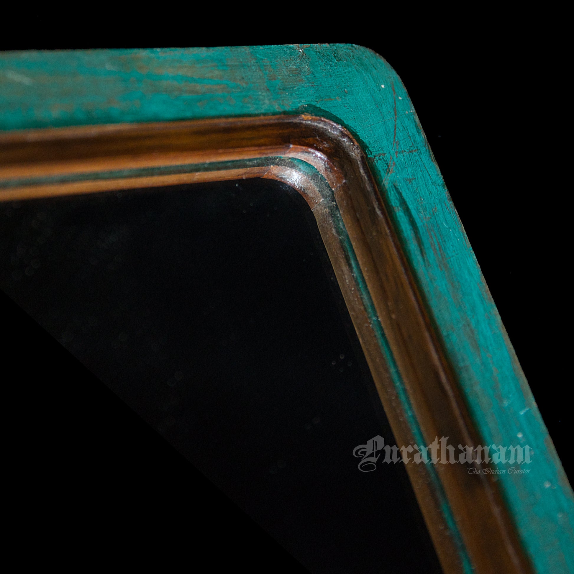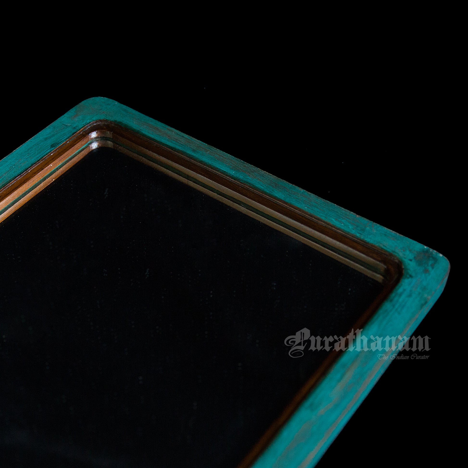 Here is a beautiful Teal Green Mirror wall hanging made of Walnut Wood.