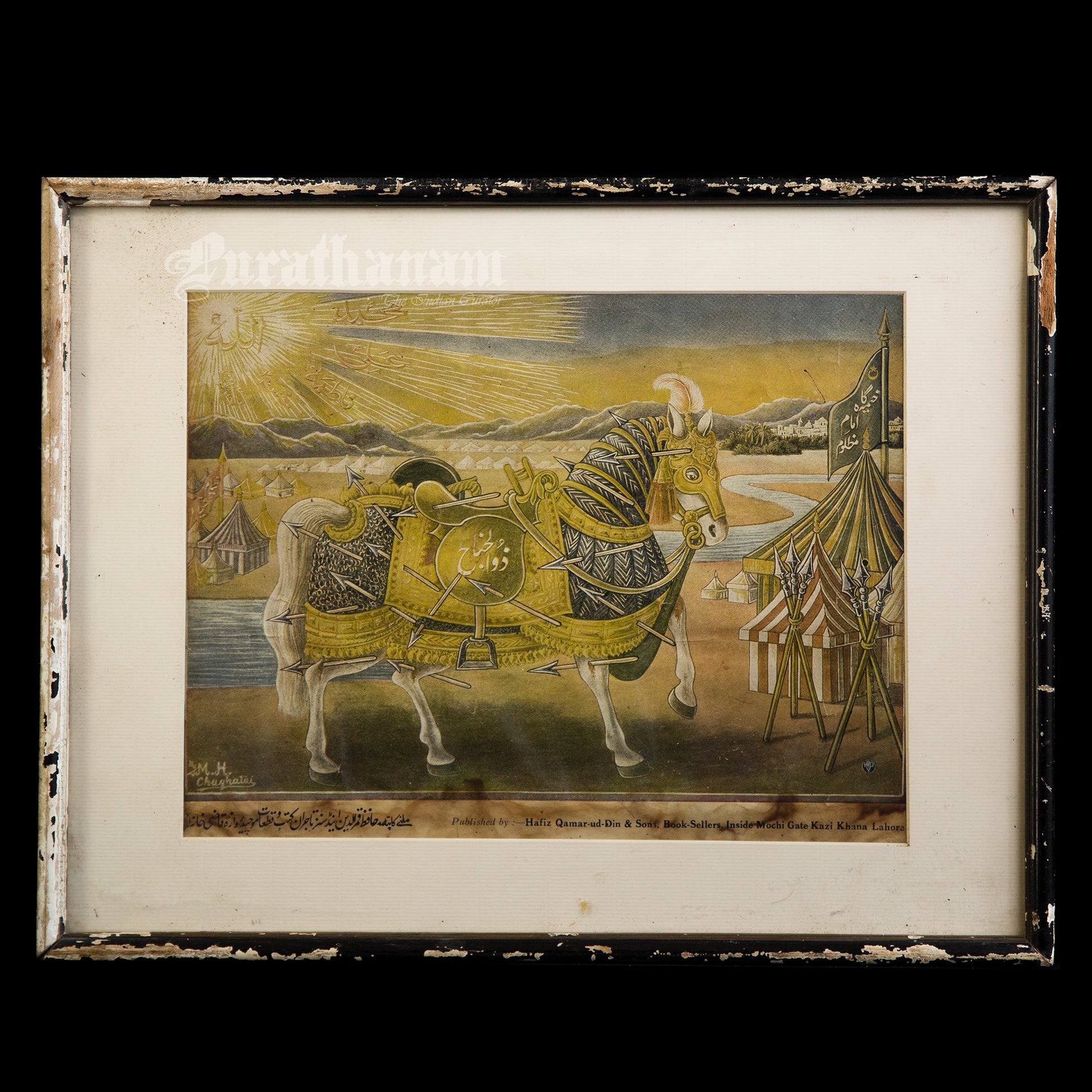 This is a unique offset print of the Holy Horse, originally painted by artist M. H. Chughtai in the early 1900s. The horse in this painting, Zuljanah, holds a special place in Islamic history, especially in Shia traditions.