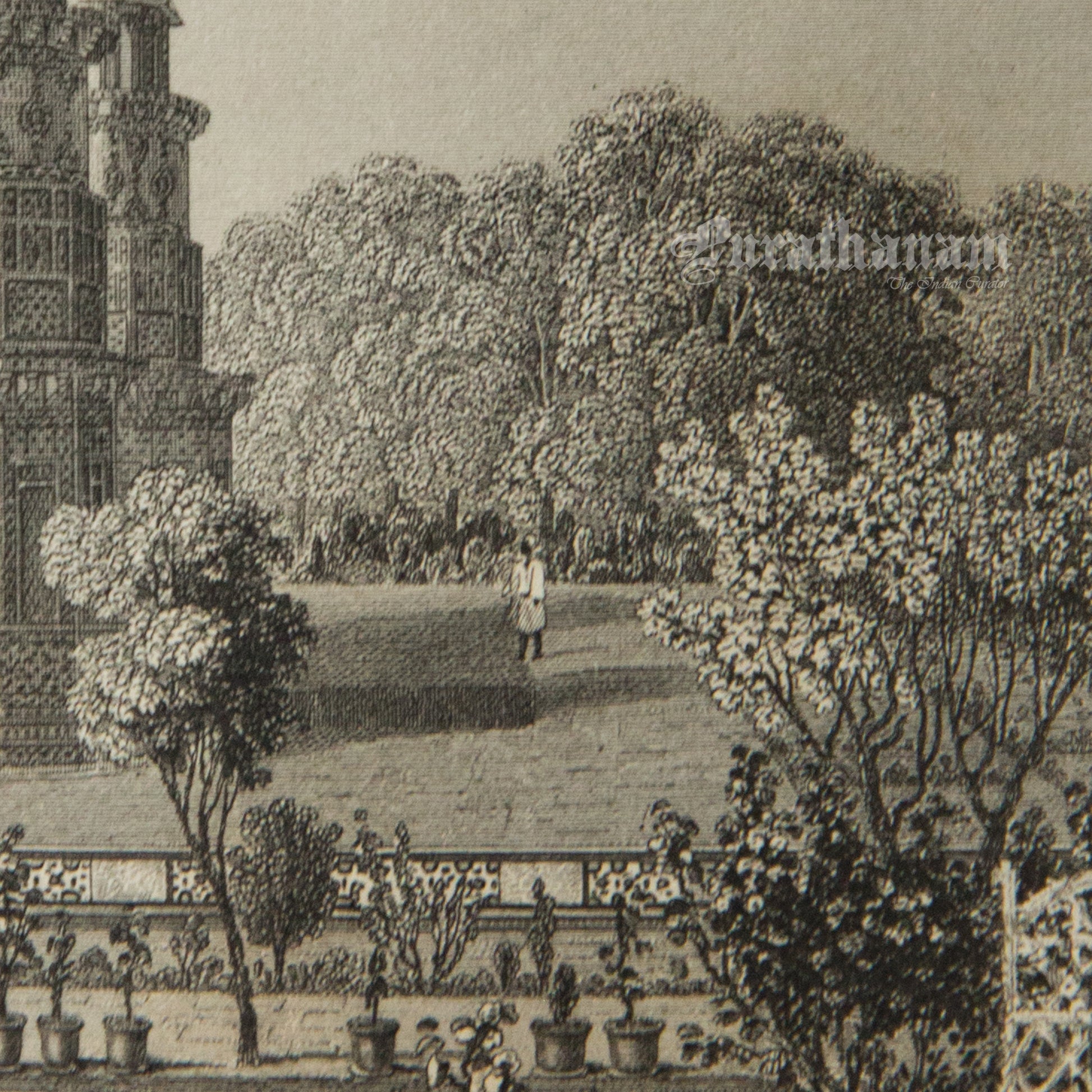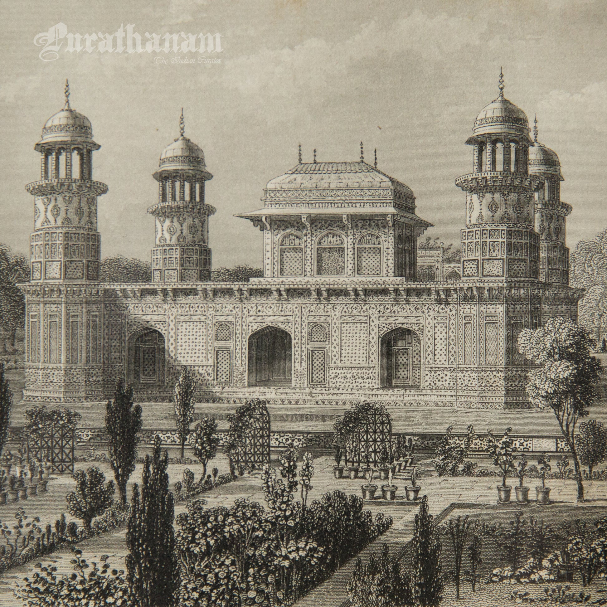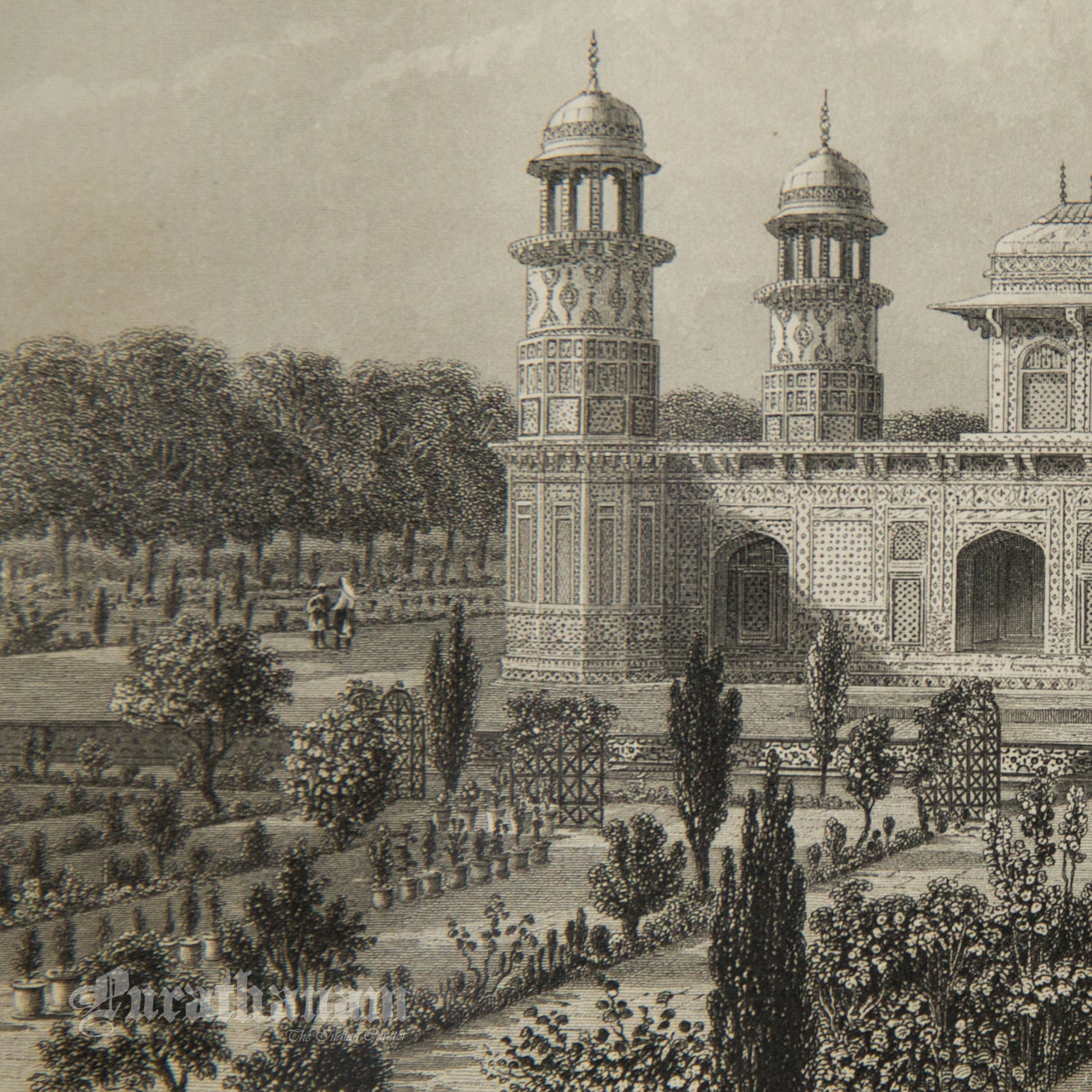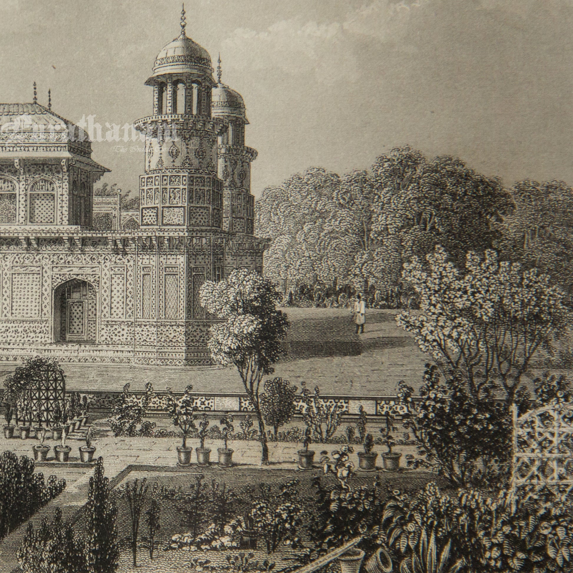 Here is an Antique black & white engraving of “ The Tomb of Elmad-Ood Doulah, Agra” by Robert Montgomery Martin (1801-1868). It is an original antiques from 1857. To know more history about engraving please checkout the description of the previous collage post of engravings.