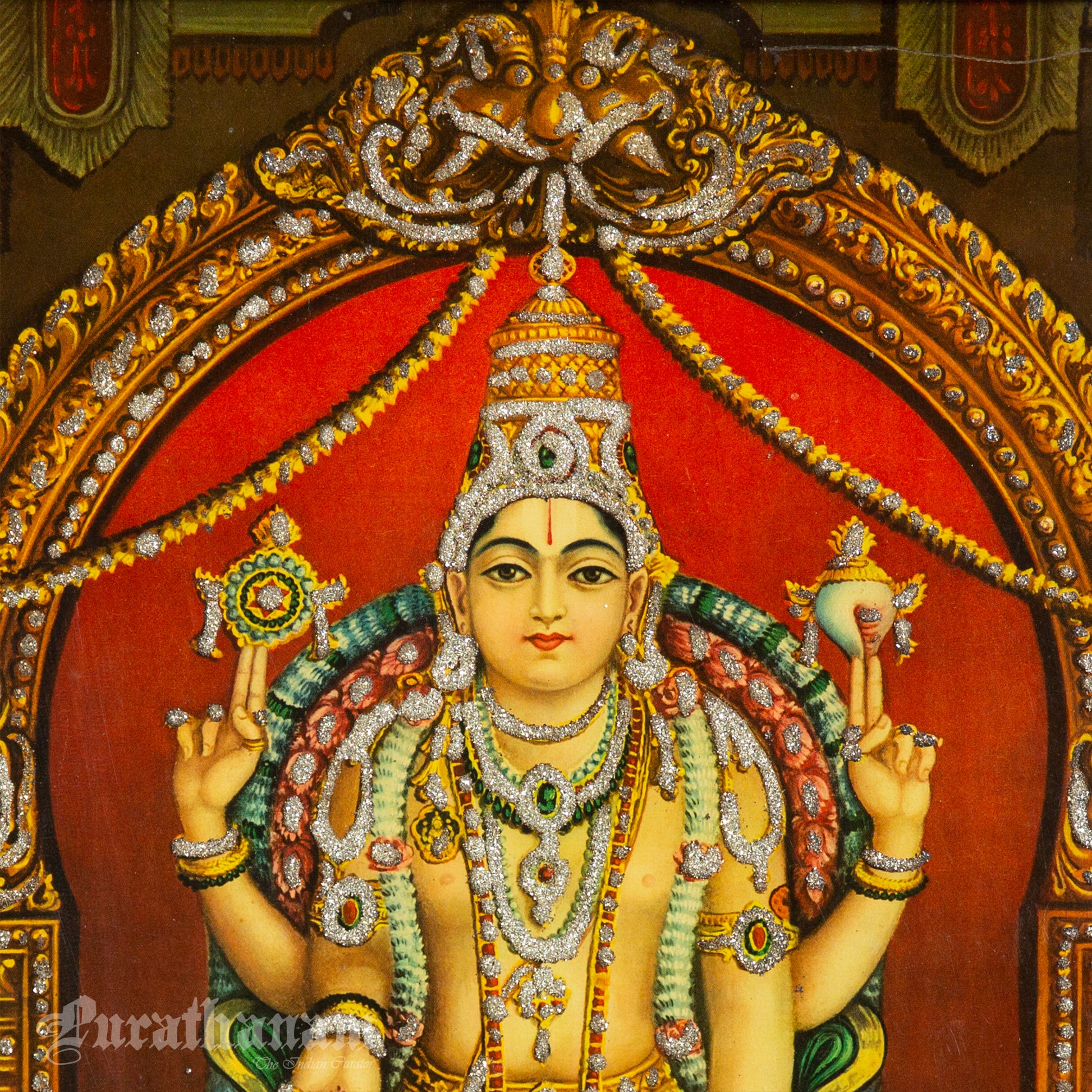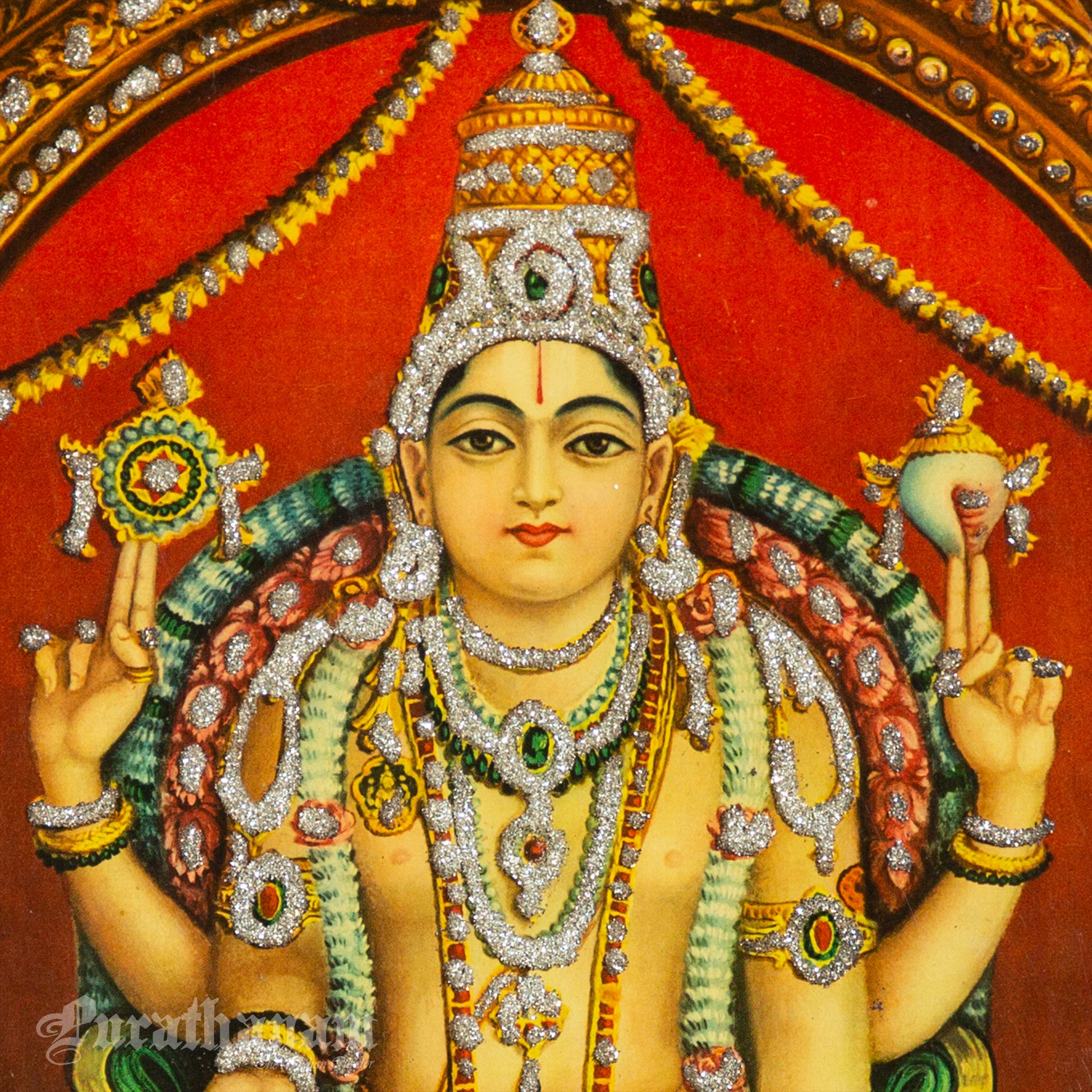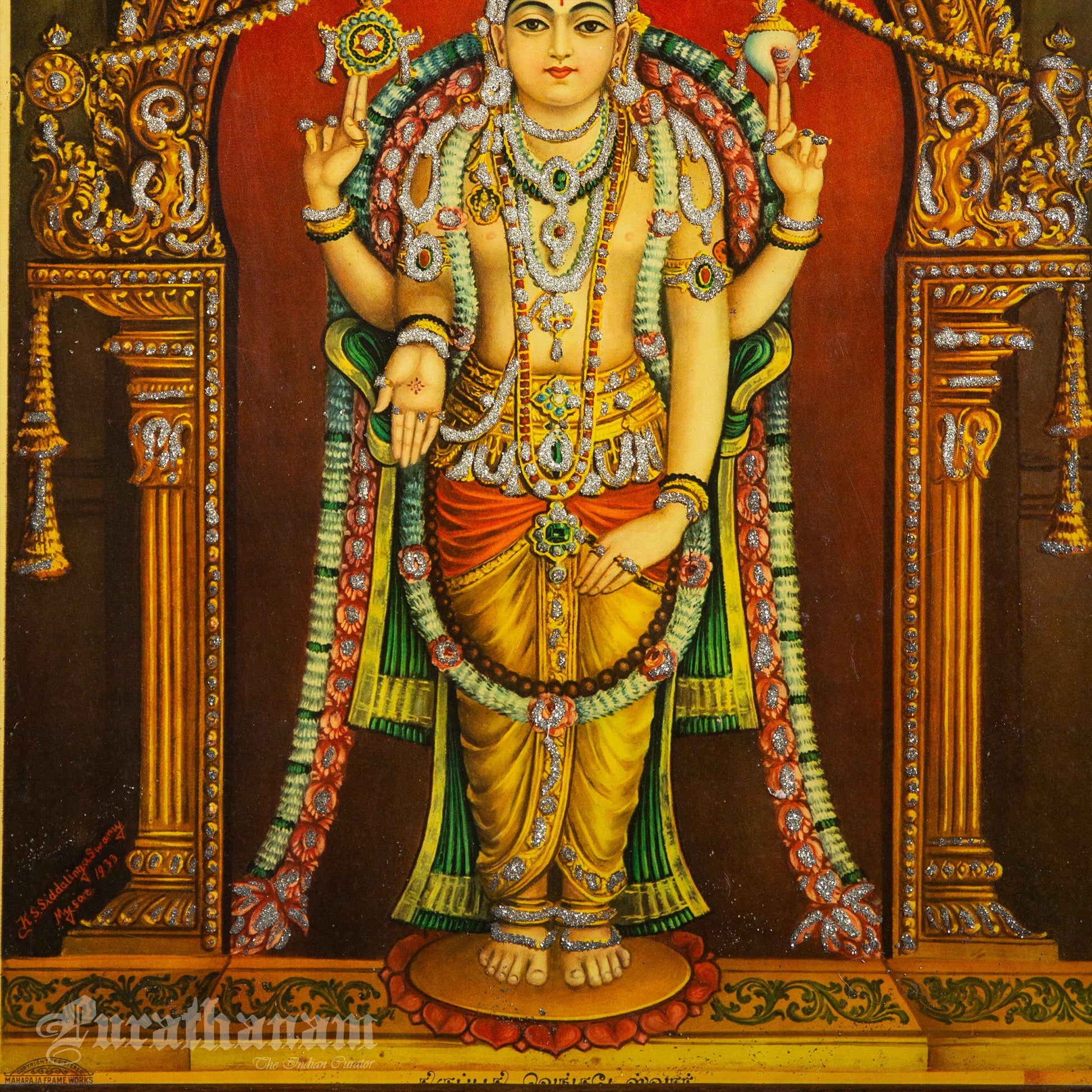 This is an beautiful oleograph print of Thirupati Venkateswarar from the early 1900s painted by an Indian artist K.S. Siddalingaswamy (1885–1952) from Mysore.