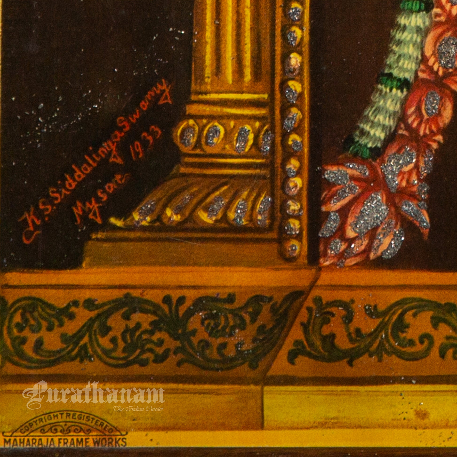 His paintings, known for following traditional Hindu temple styles, are still seen in the Durbar Hall of Mysore Palace. Siddalingaswamy also worked with the famous Ravi Varma Press, where his painting Sri Prasanna Shankara (1932) was printed. While Ravi Varma’s art had a modern touch, Siddalingaswamy’s works stayed true to ancient scriptures and temple traditions.