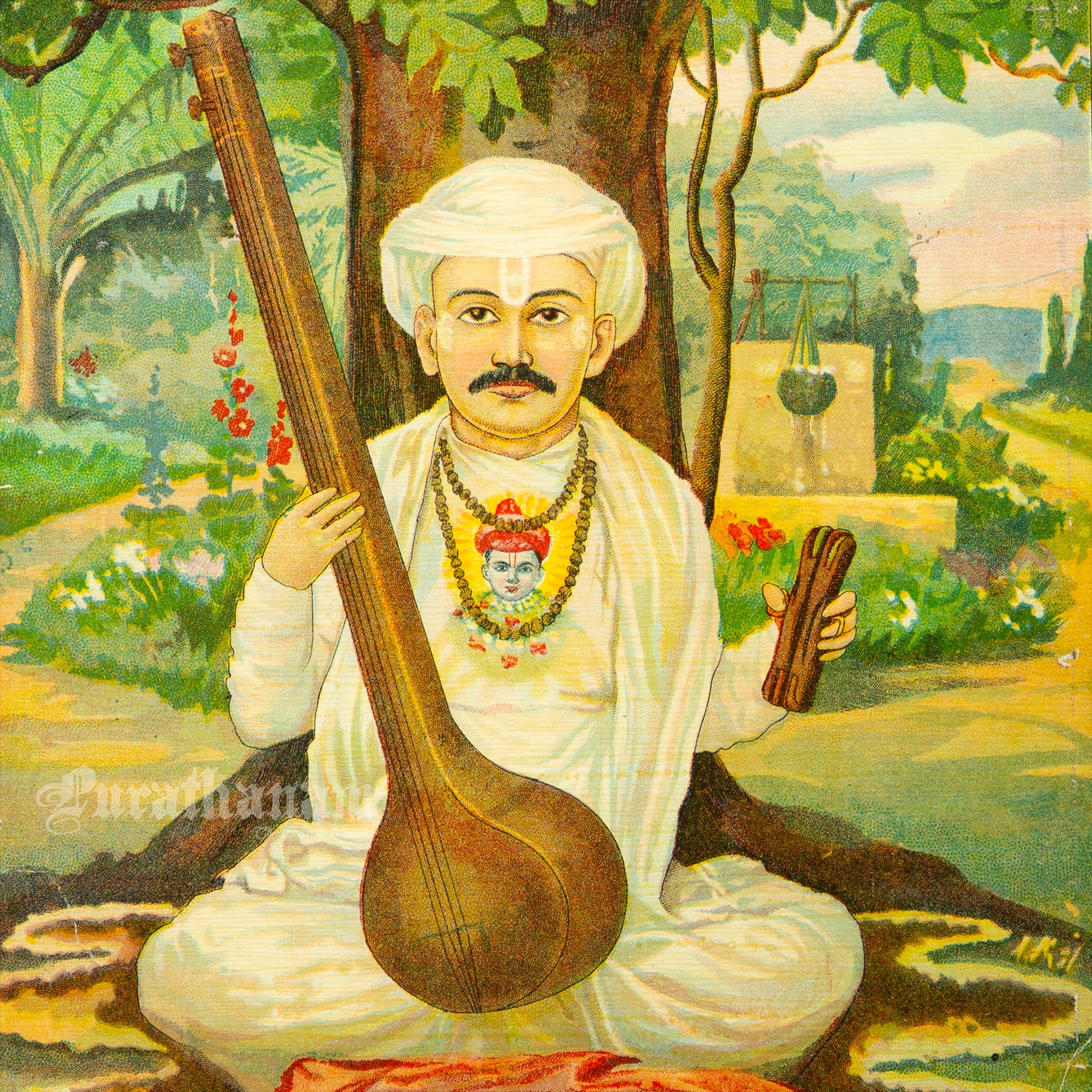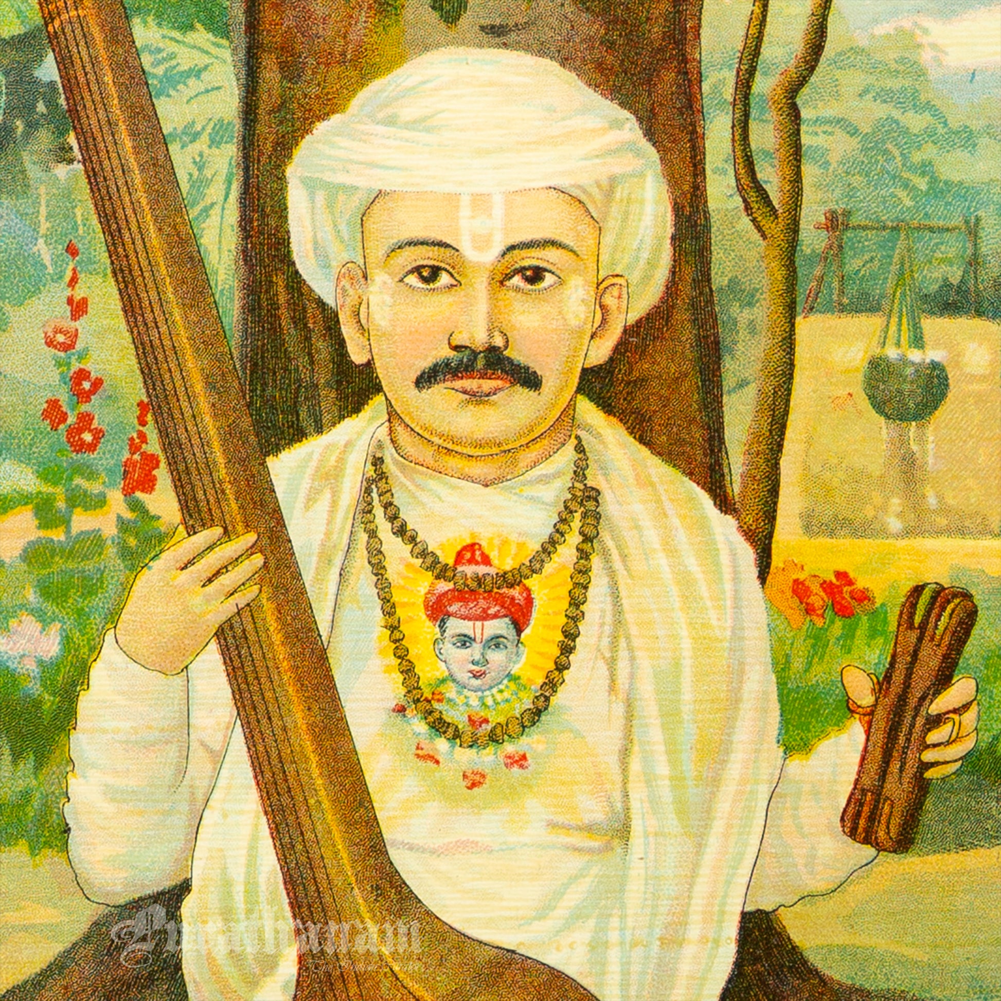 Description: This is an oleograph print from 1920s of Thukkaram Maharaj