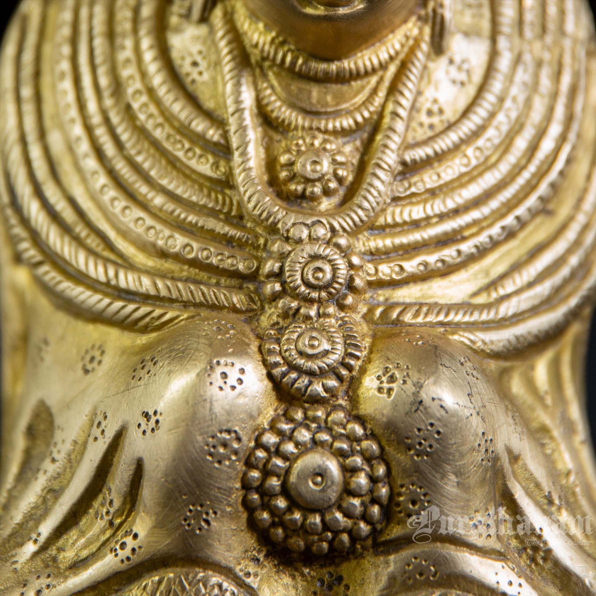 Here is a Tulja Bhavani made of solid brass using a cast. This method was first used in the 70's but very prevalent in the 80's.