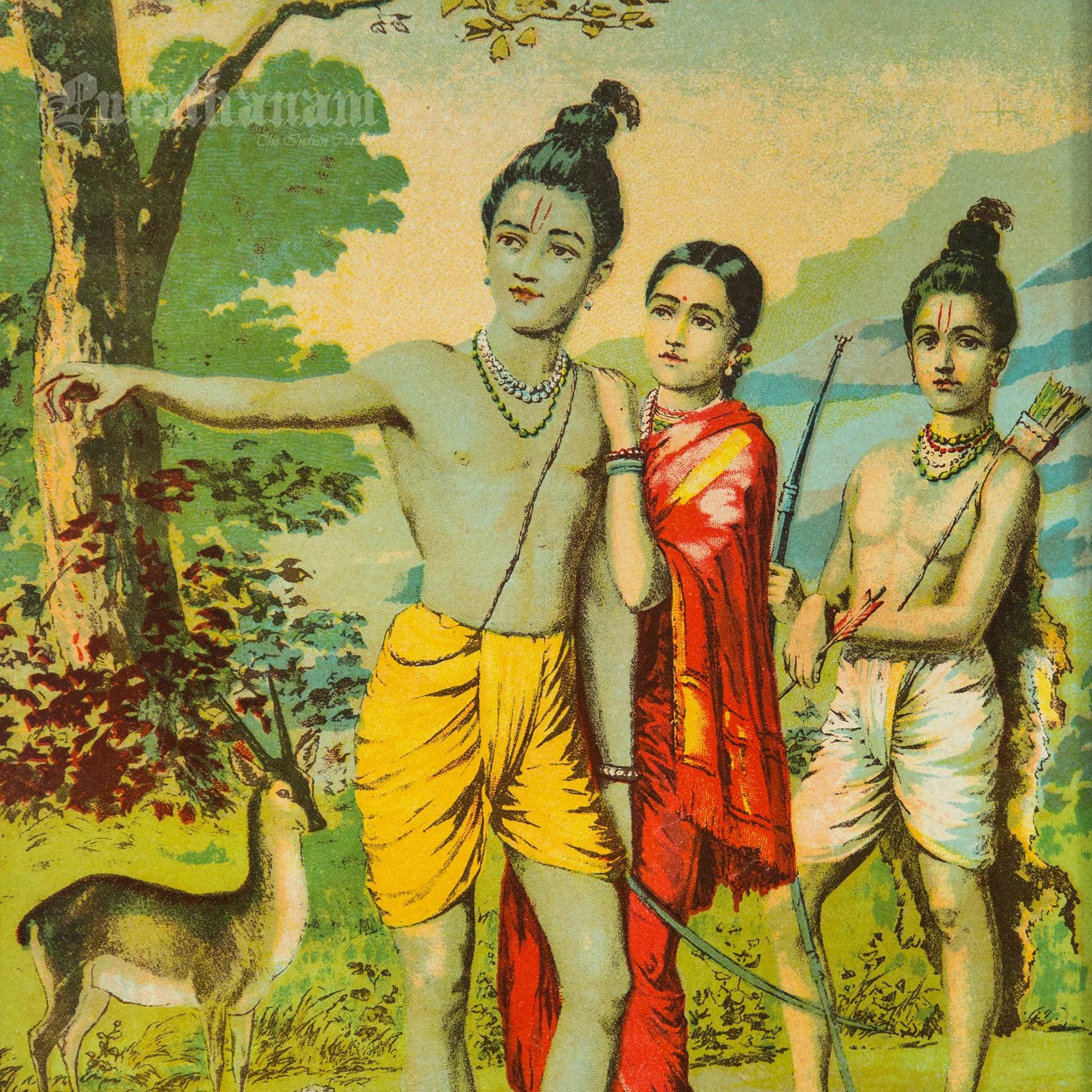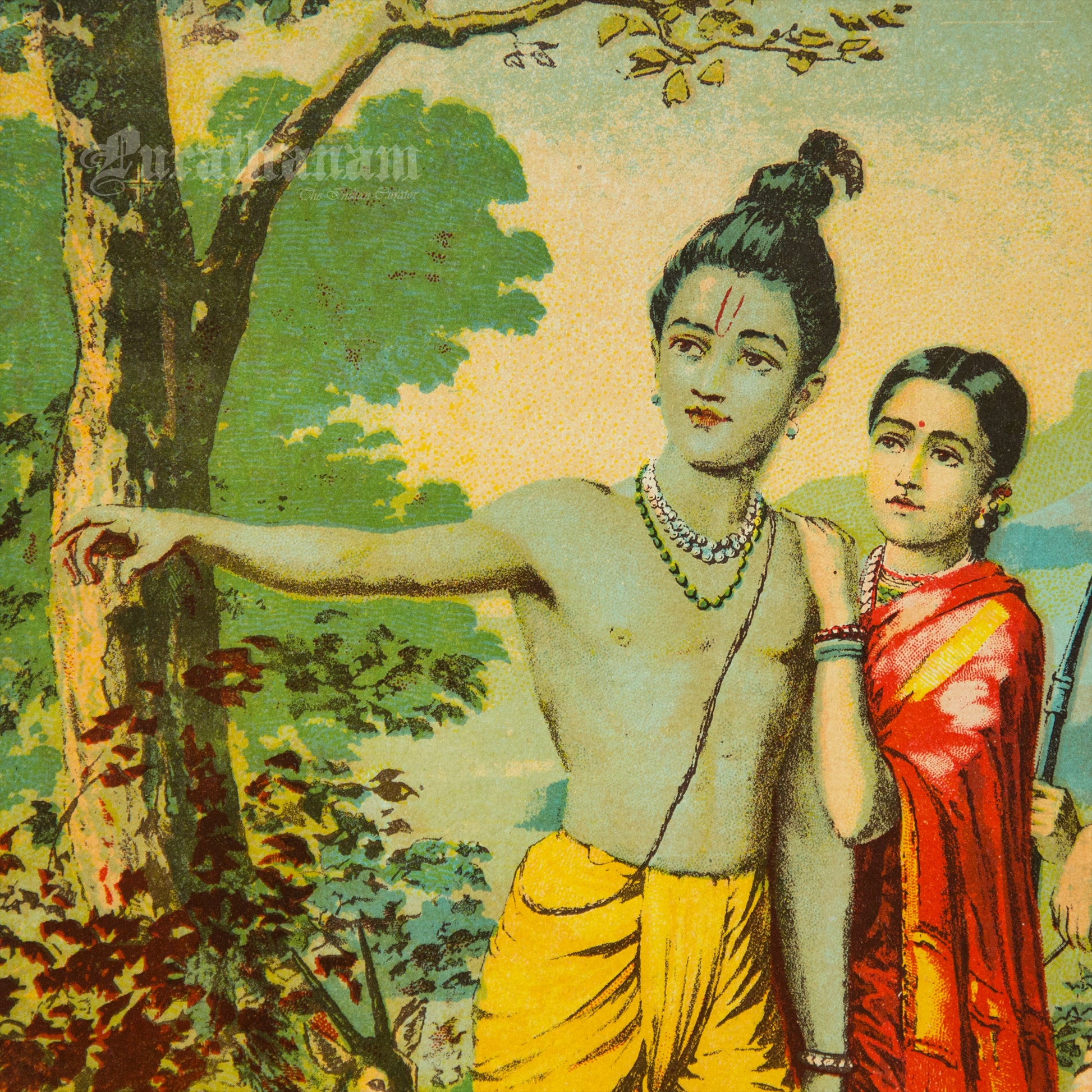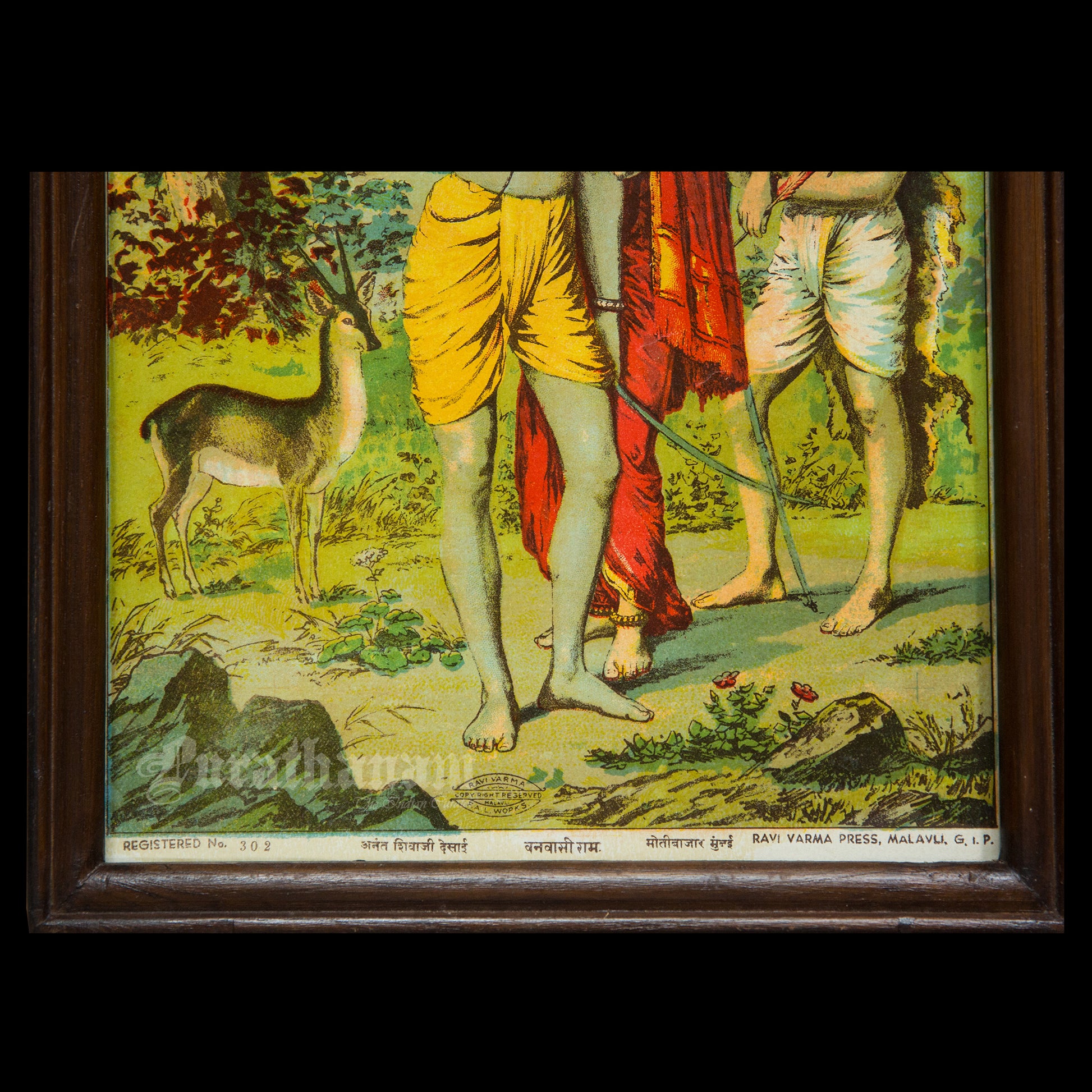 This is an oleograph print from 1920s- 1930s of Vanvasi Ram by Ravi Varma an Indian who achieved recognition for his depiction of scenes from the epics of the Mahabharata and Ramayana.