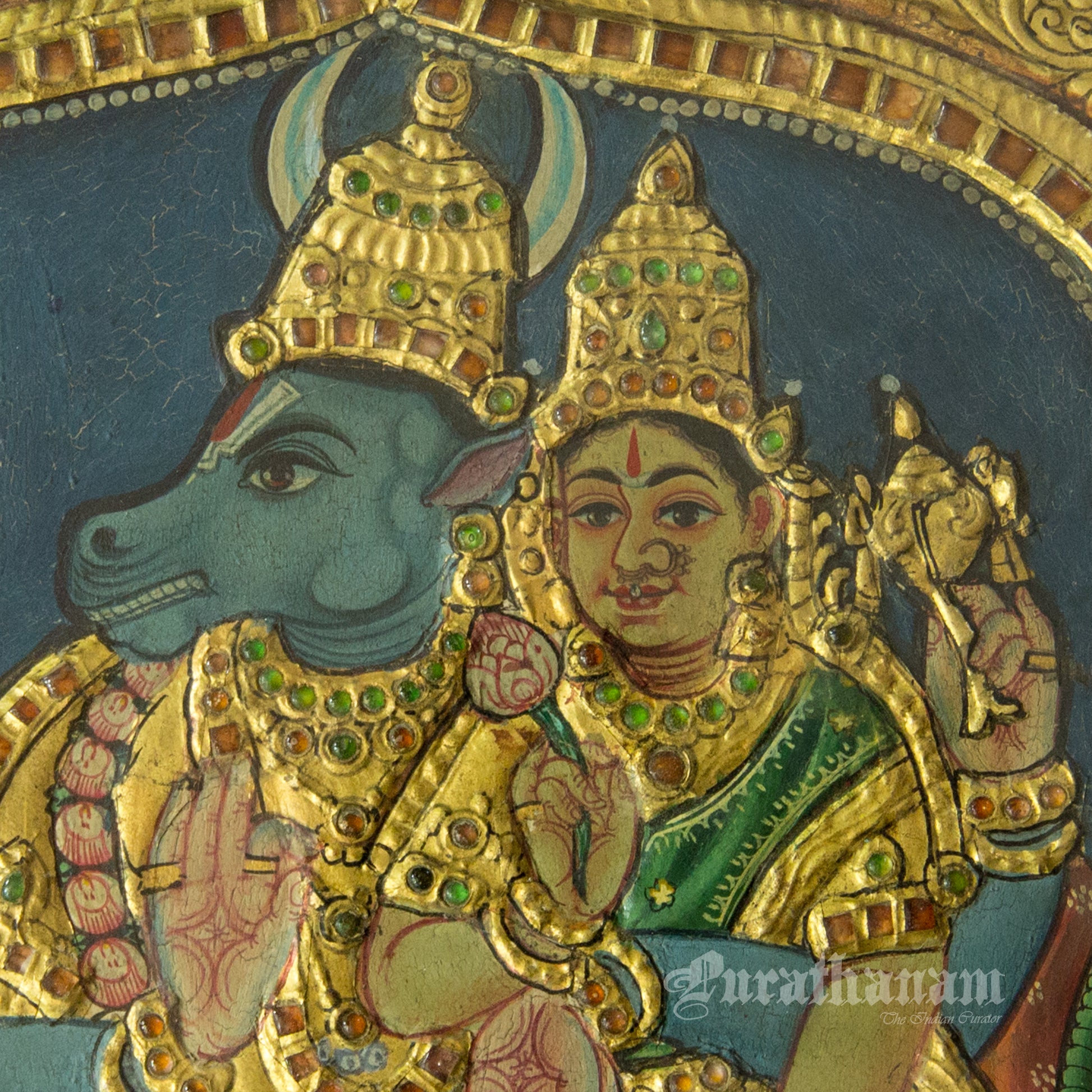 - Nose Rings Came Later: The nose rings on deities seen in Tanjore paintings are relatively new. Tanjore painting artisans say the earliest paintings had no nose rings on deities, and this is one way to judge the age of a painting. Nose rings are not seen in Chola bronzes or in early Pandya stone idols. It’s understood that there were no nose rings on Devis until the Chozha period. Later, we can see the influence of the Mughal period in Tanjore paintings.