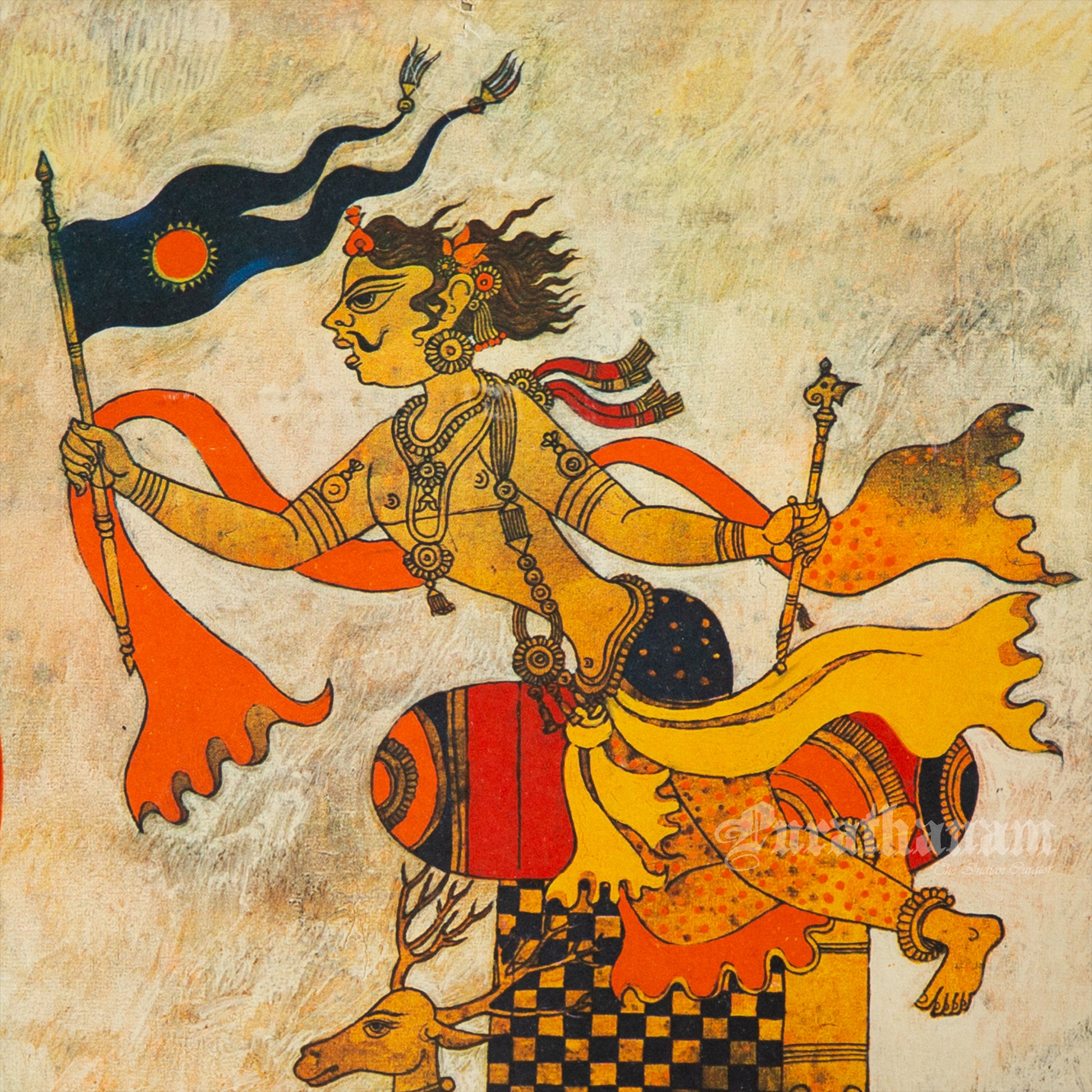 Print Description: Varuna, The vedic God of winds, with his vehicle a stag